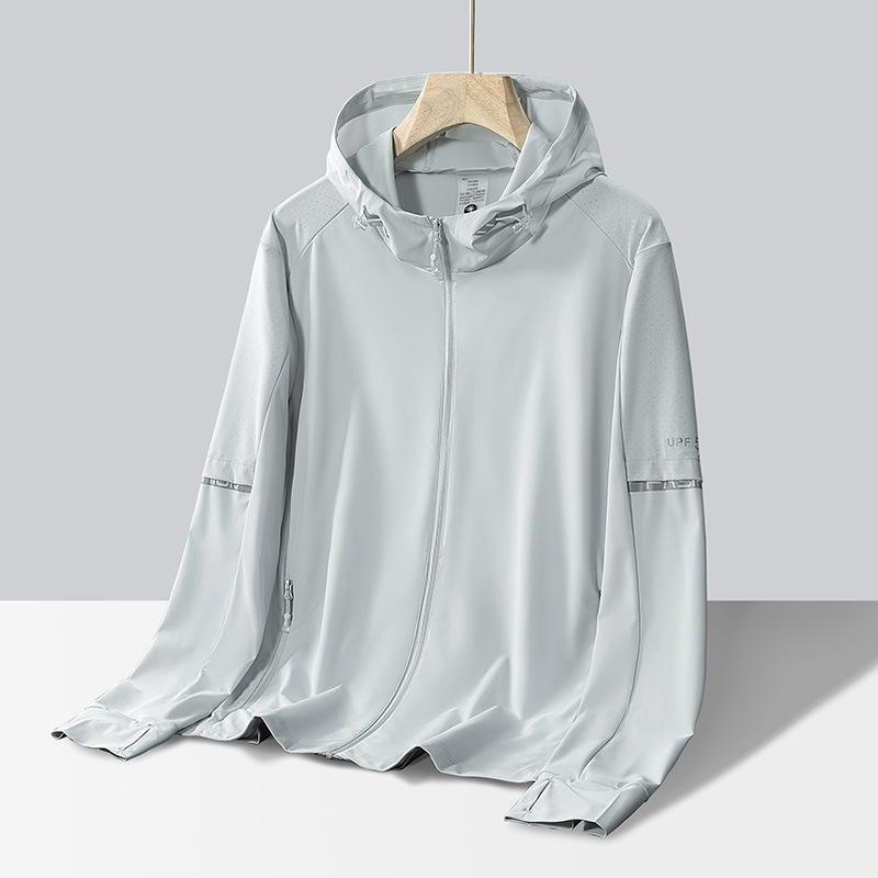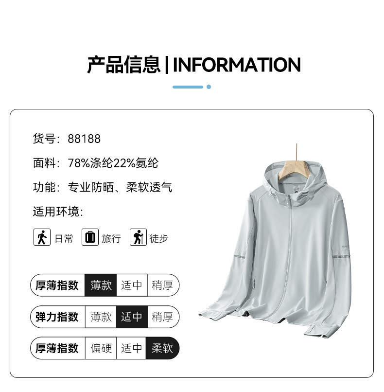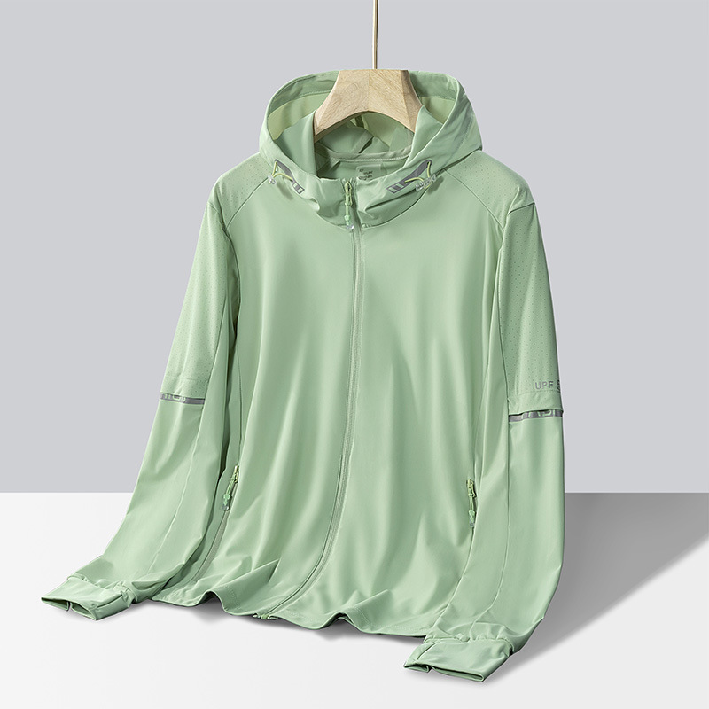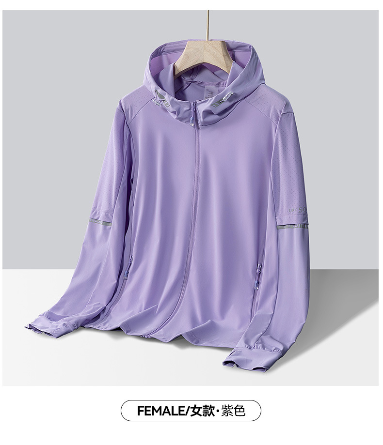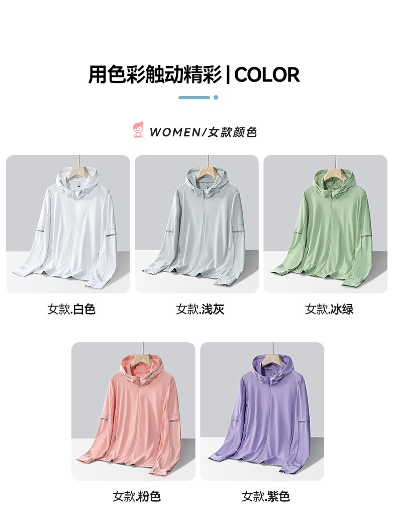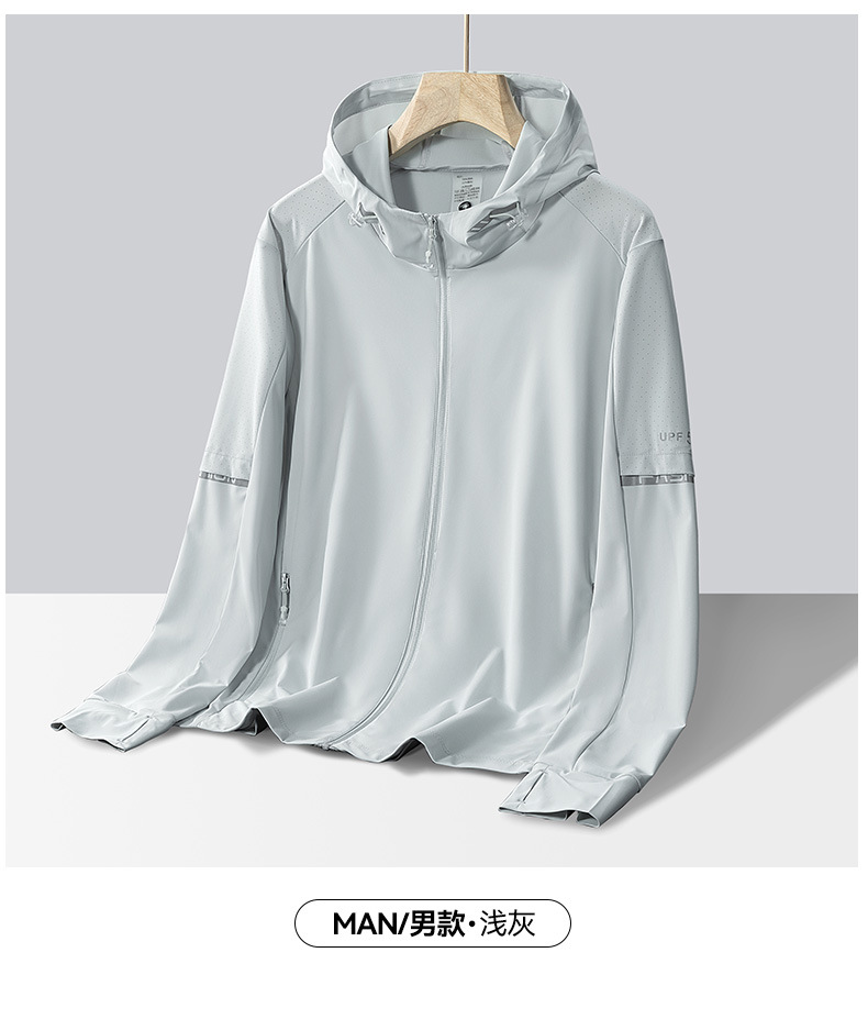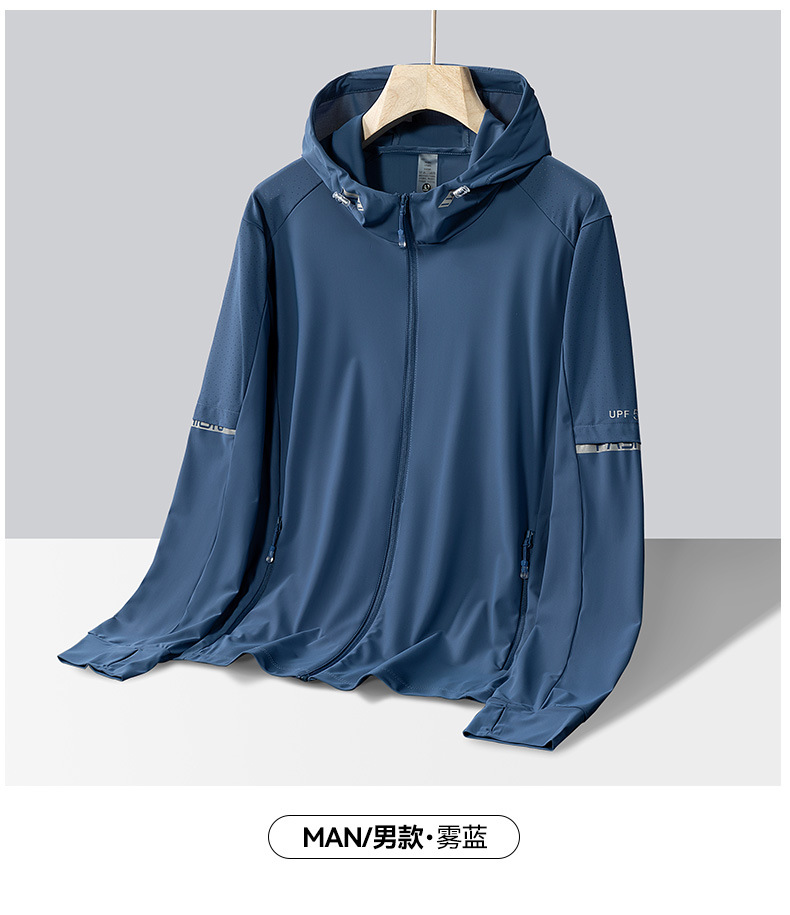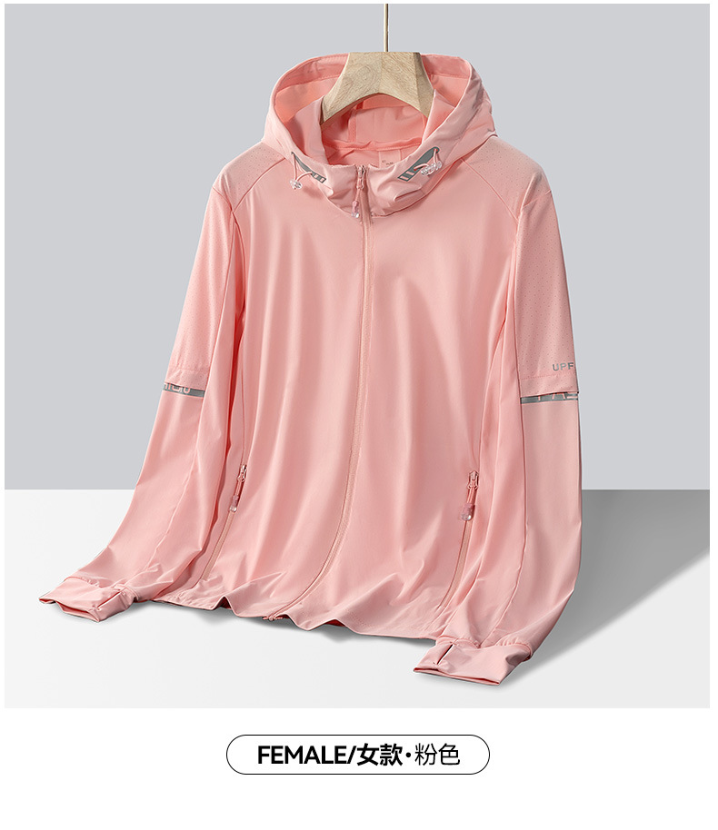 户外运动UPF50+水冷冰感连帽原纱防晒衣情侣款百搭透气凉感防晒衣