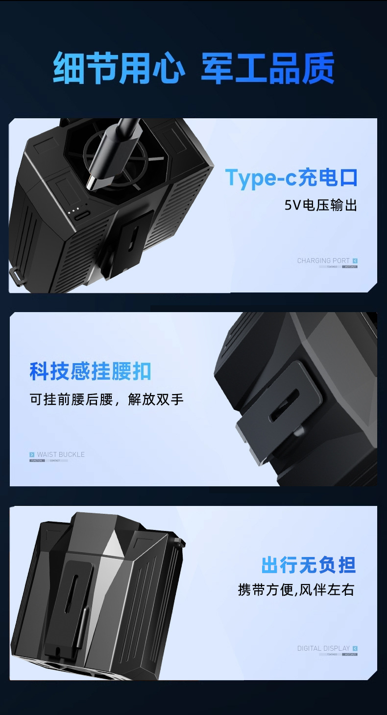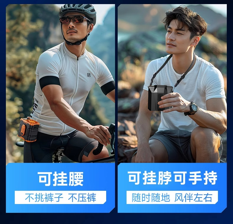 新款挂腰风扇户外便携式暴力大风力充电挂脖风扇手拿便携户外小风