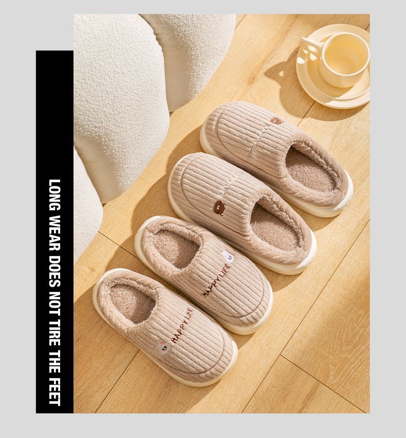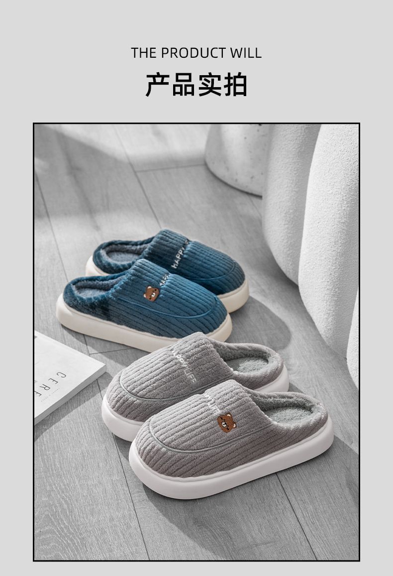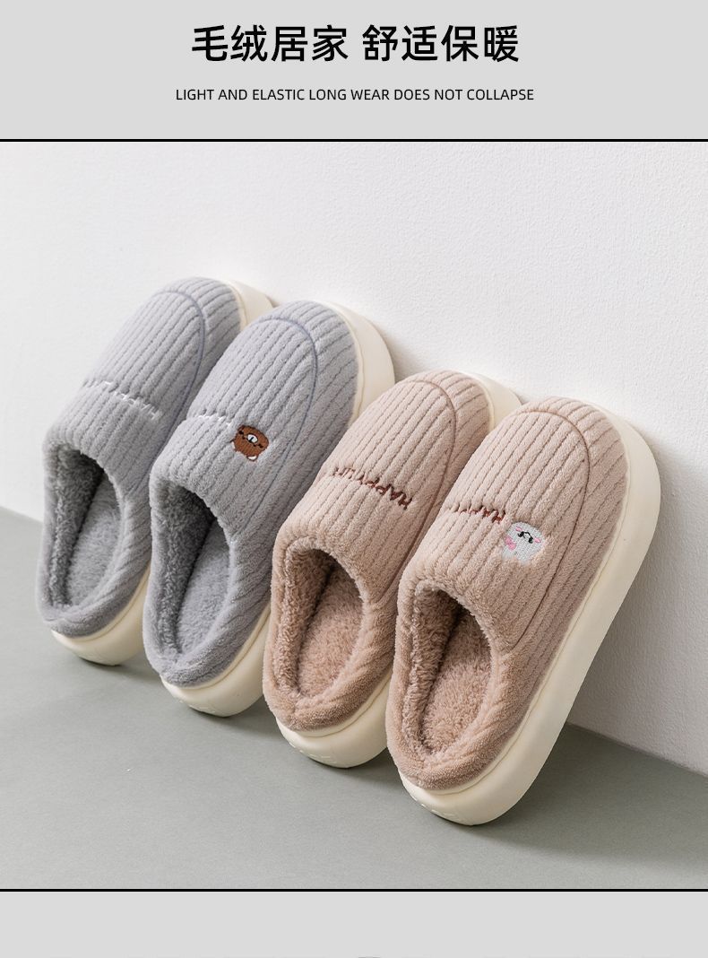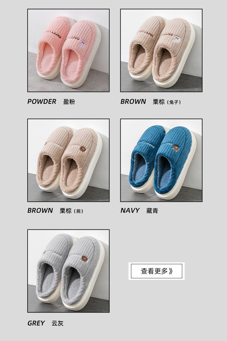 秋冬季棉拖鞋男士情侣款保暖防滑不臭脚厚底加绒外穿防寒毛毛拖女