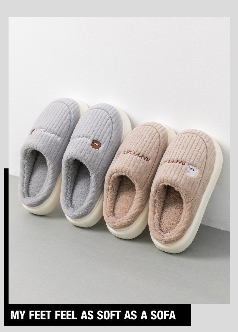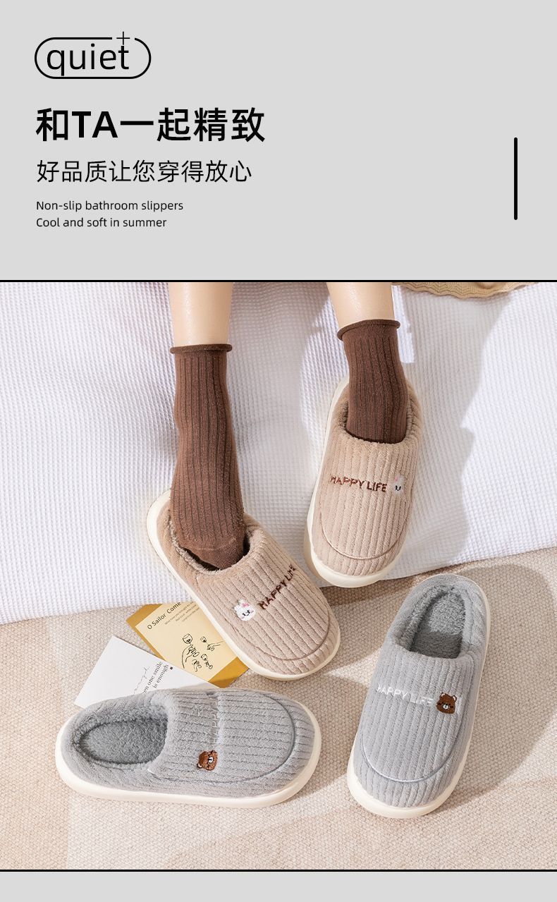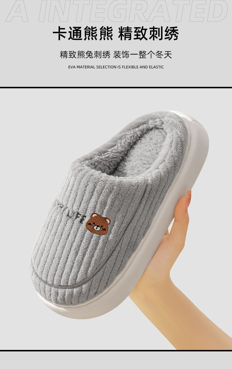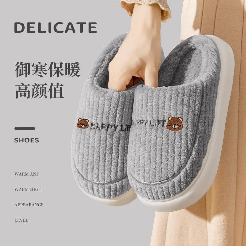 秋冬季棉拖鞋男士情侣款保暖防滑不臭脚厚底加绒外穿防寒毛毛拖女