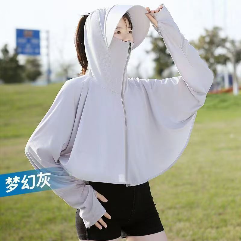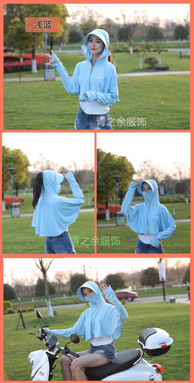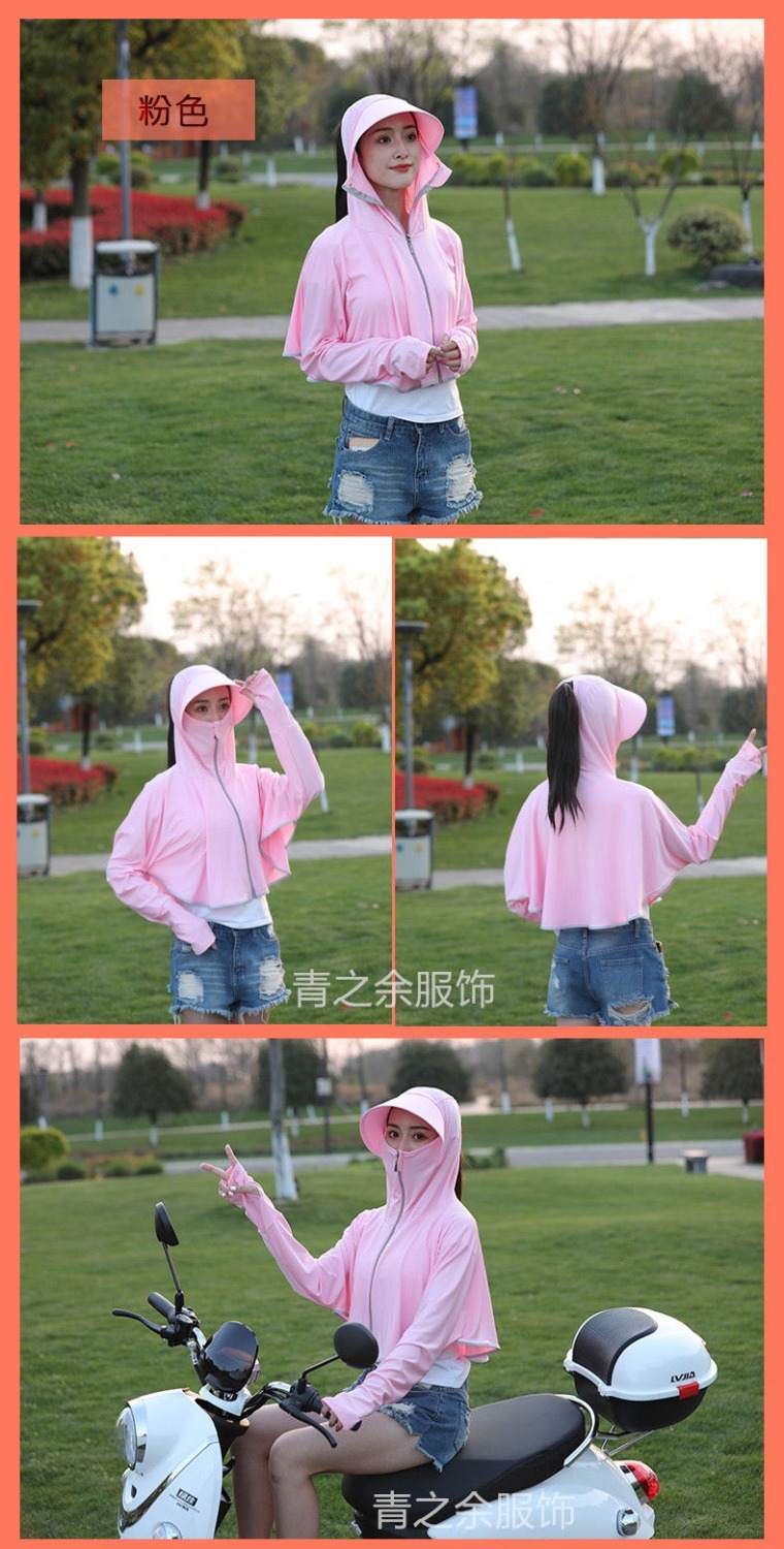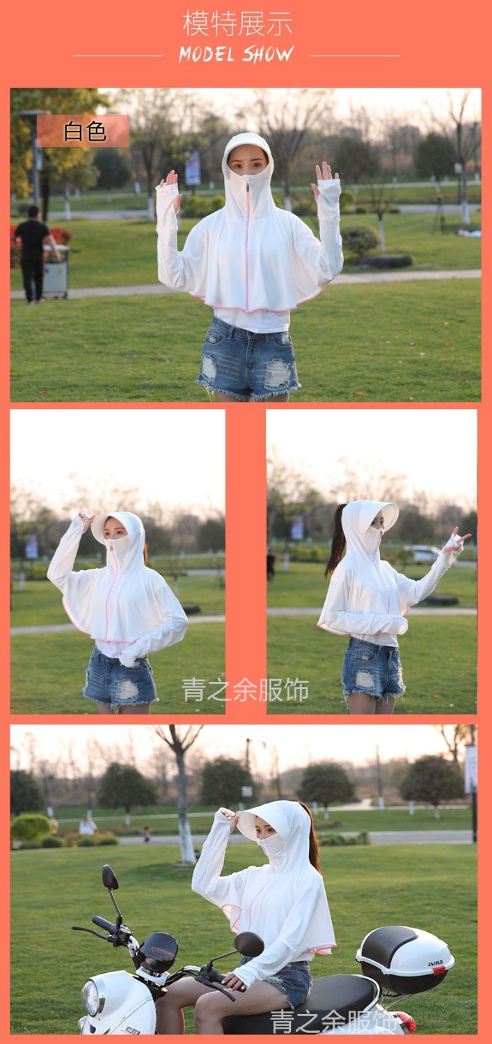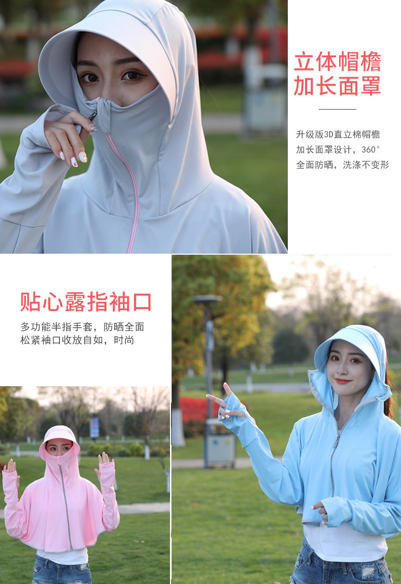 冰丝户外衣女夏季长款骑电动车服遮阳连帽披肩短款加长袖跨境批发