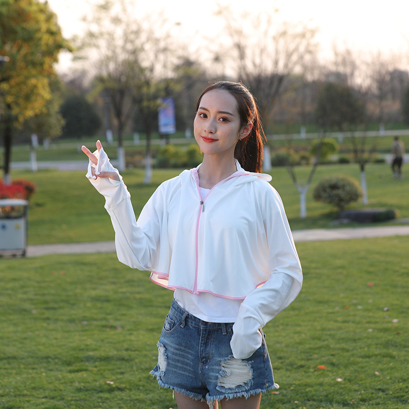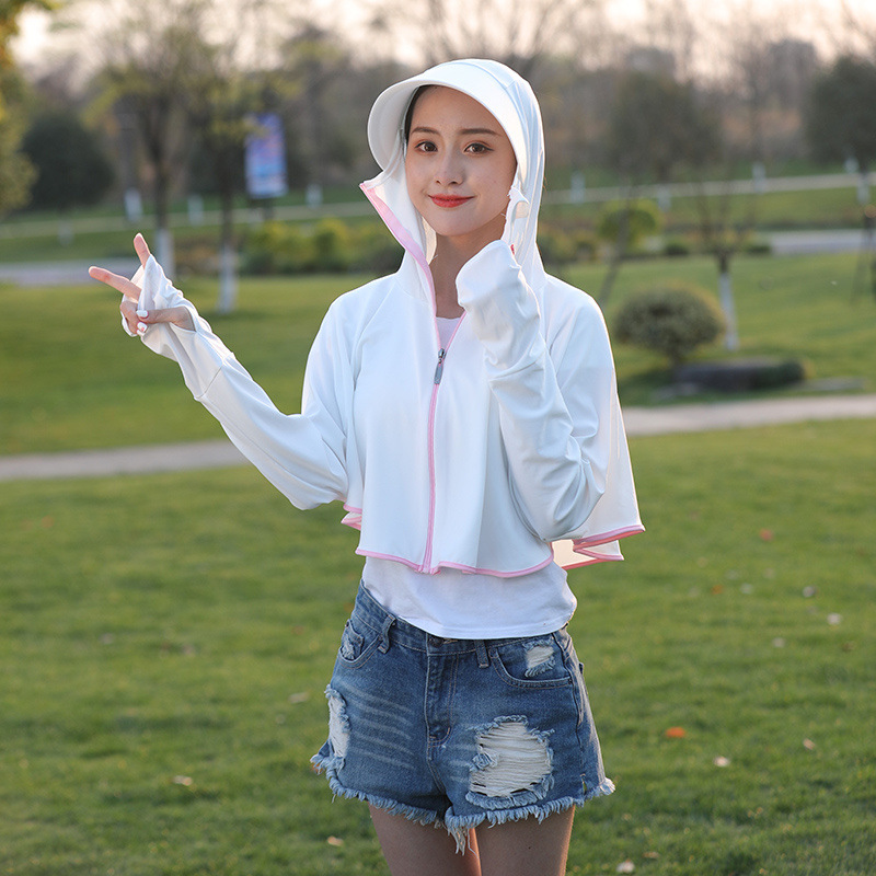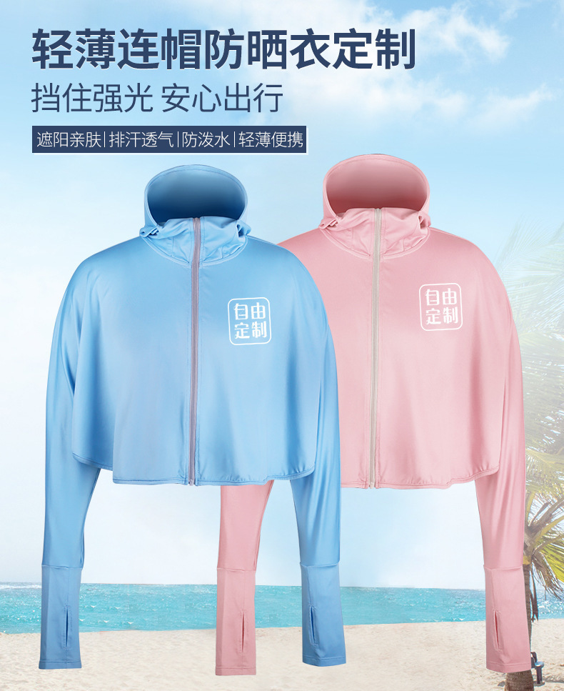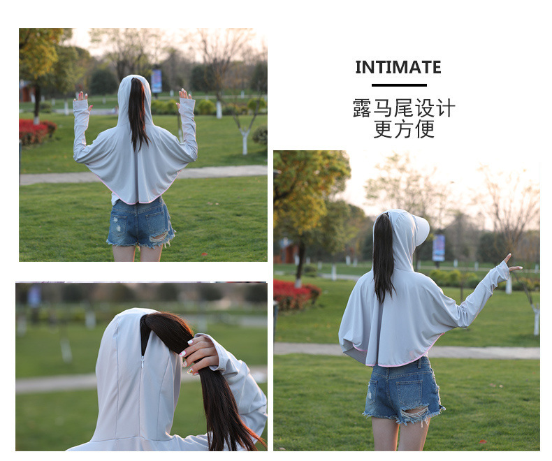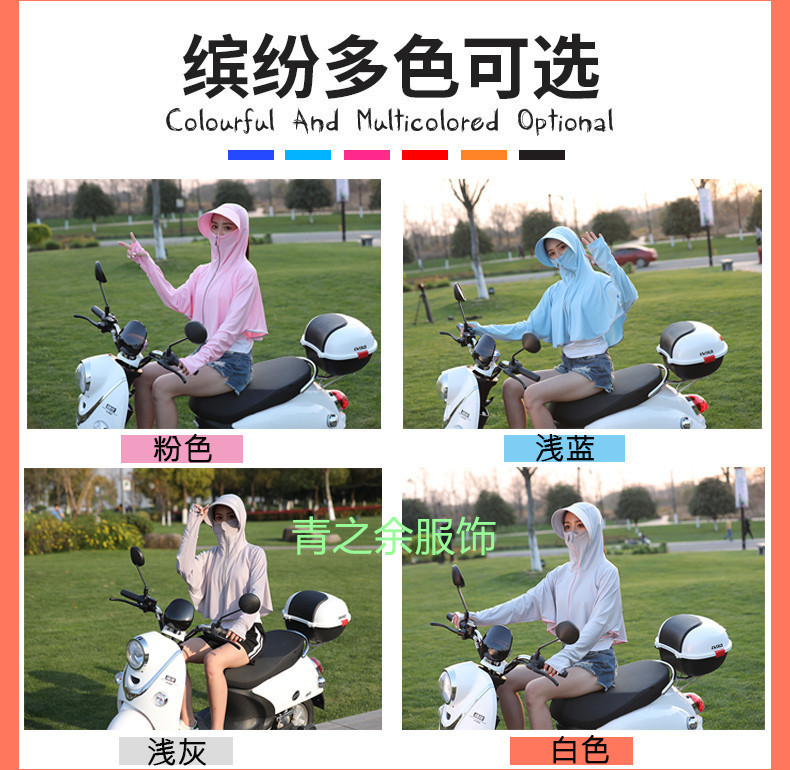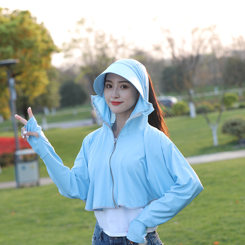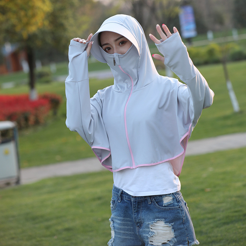 冰丝户外衣女夏季长款骑电动车服遮阳连帽披肩短款加长袖跨境批发