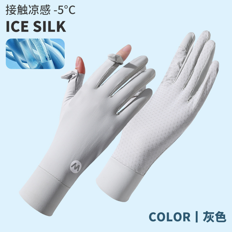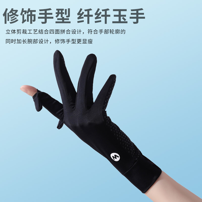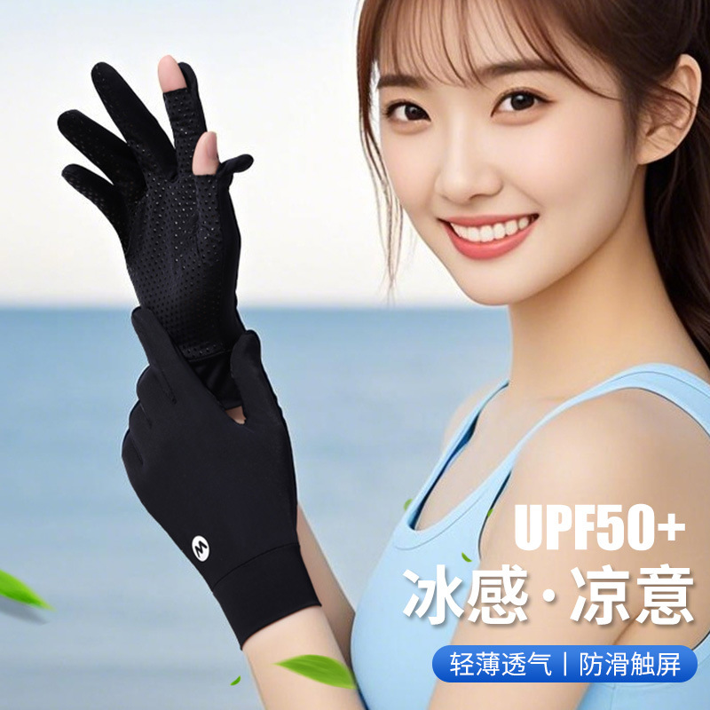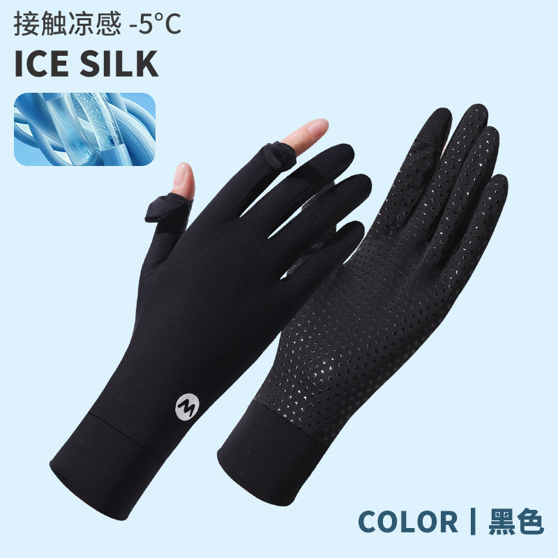 夏季冰丝防紫外线防晒手套女士冰感防滑透气开车触屏可翻指手套男