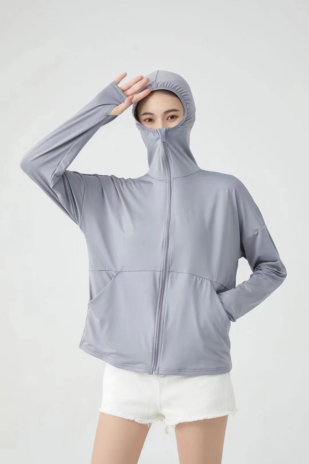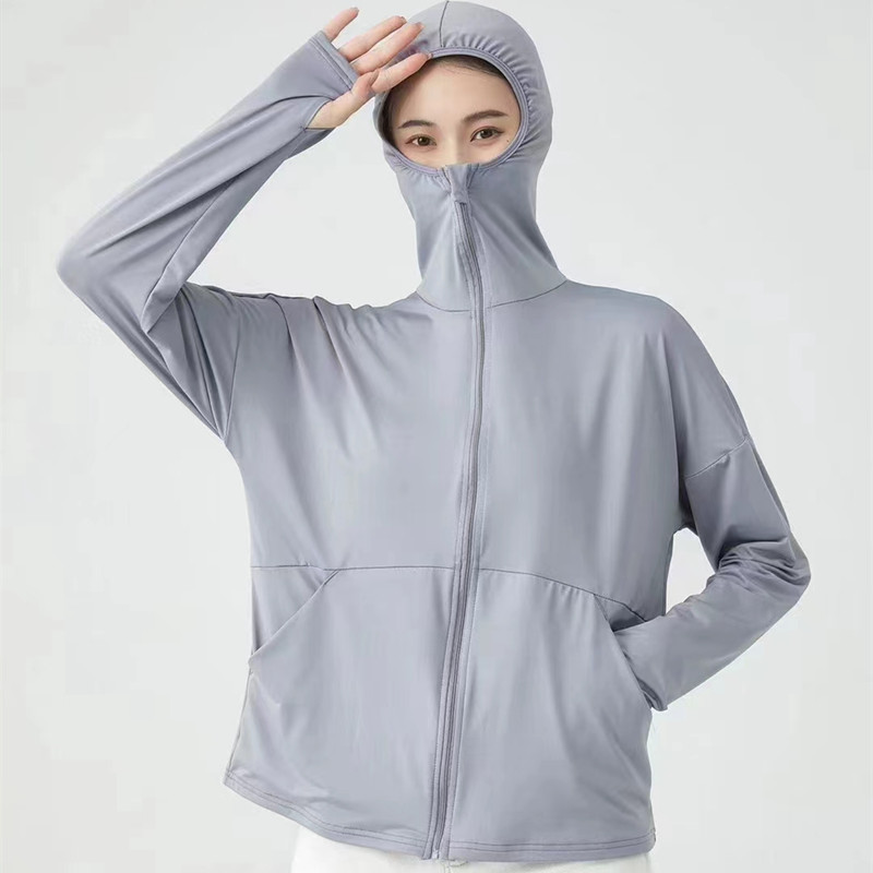 350夏季宽松大码连帽防晒衣女防紫外线冰丝薄款透气皮肤衣防晒服