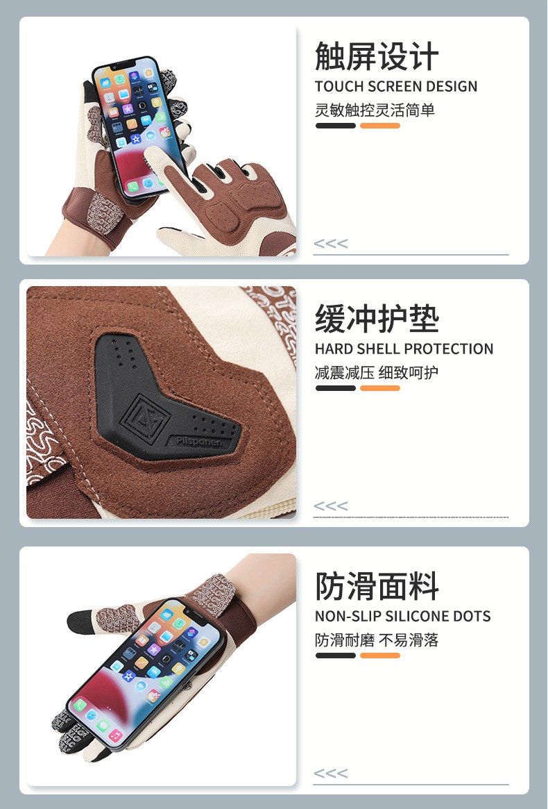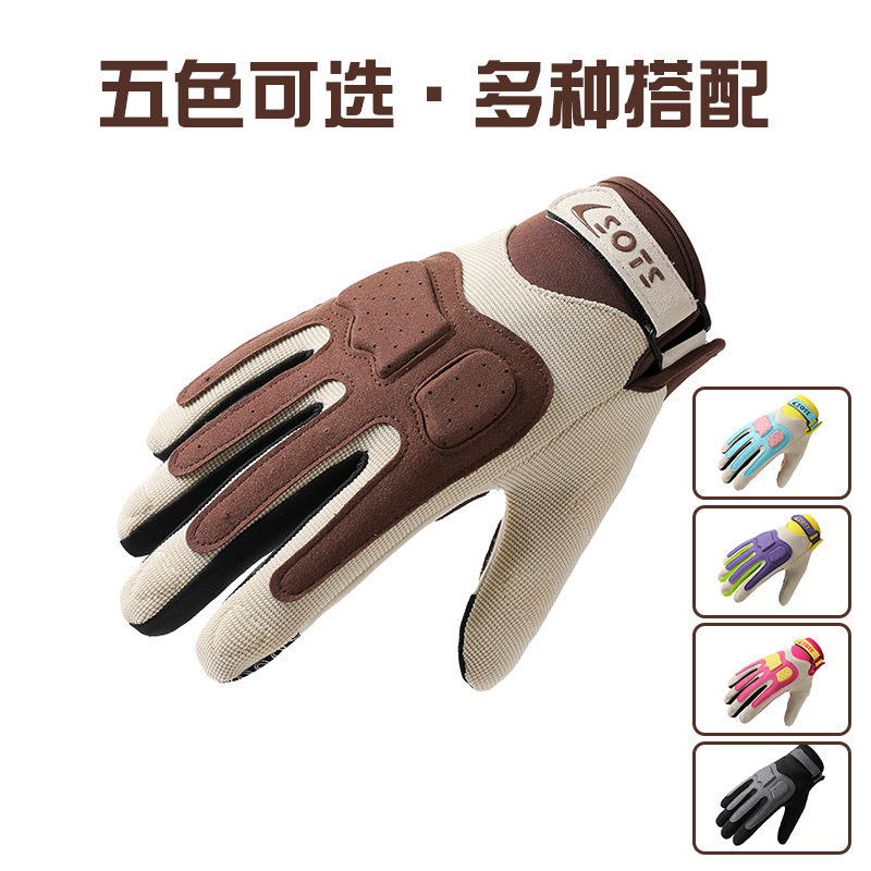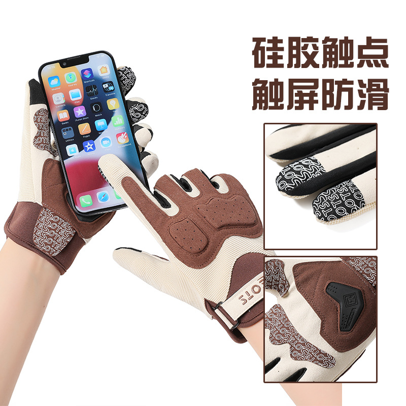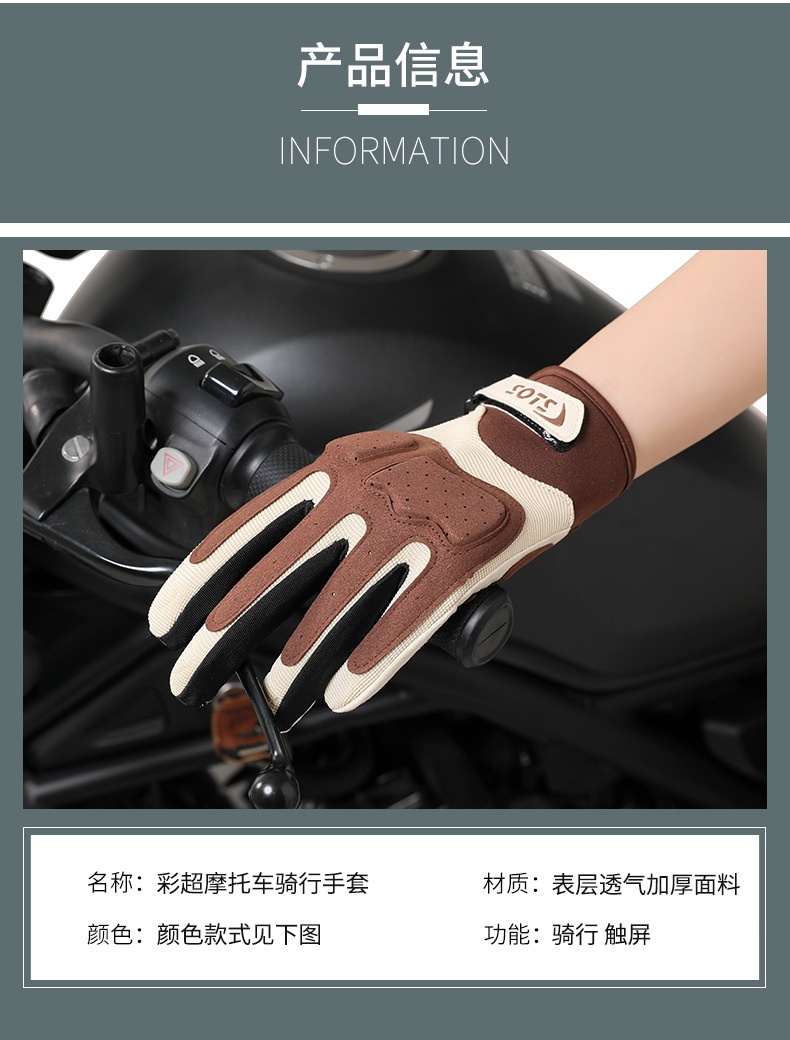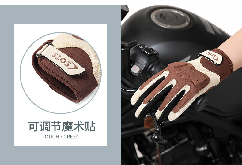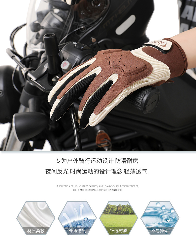 跨境摩托车骑行手套女夏季防晒透气赛车复古机车手套男全指可触屏
