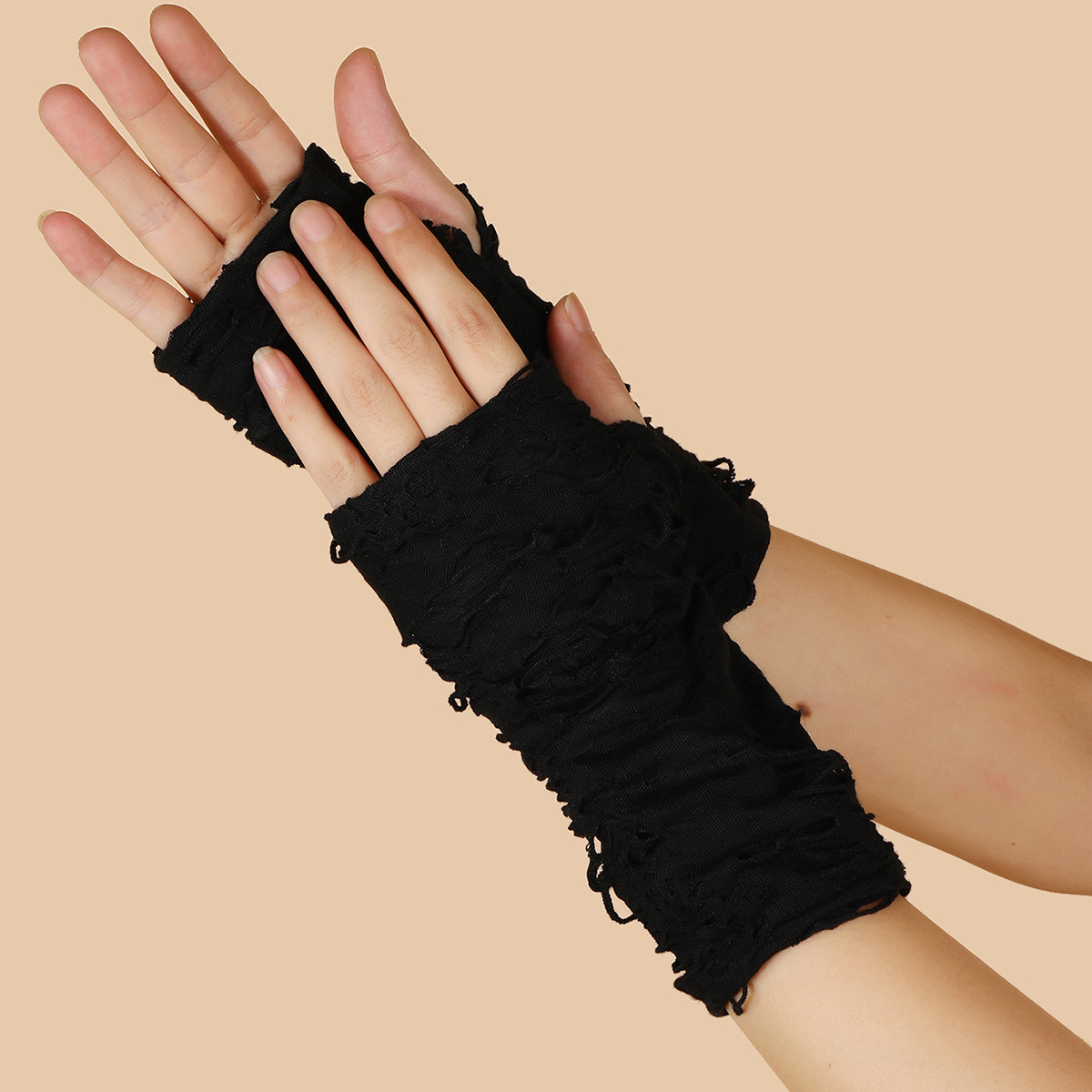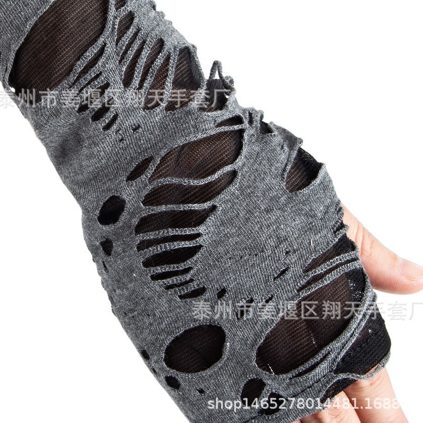 万圣节乞丐黑色破洞手套 cosplay派对朋克黑暗半指配件手套 跨境