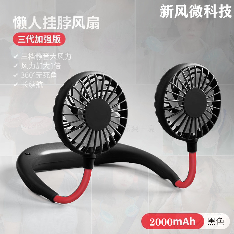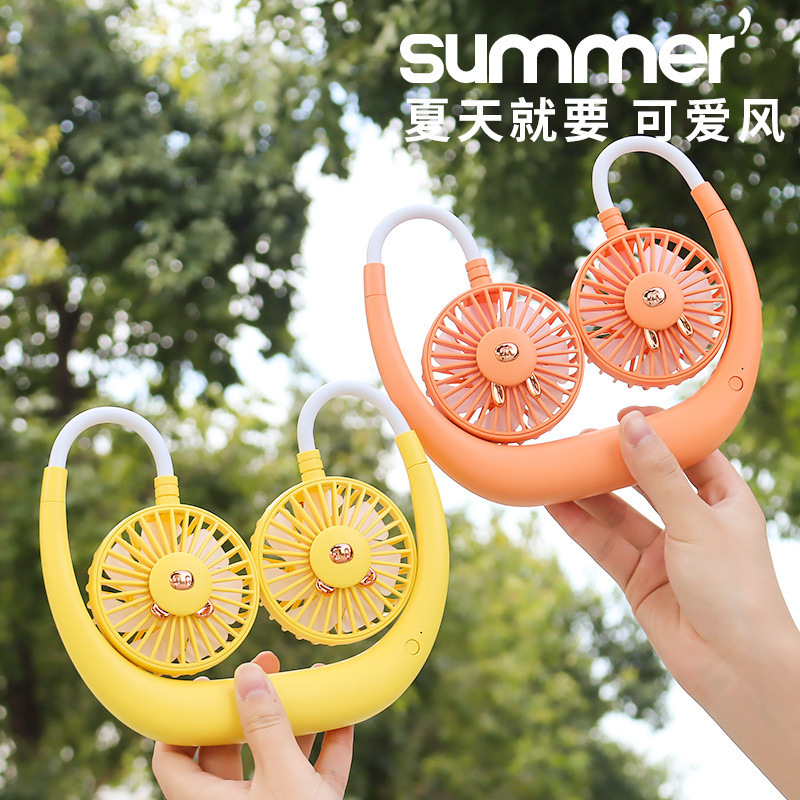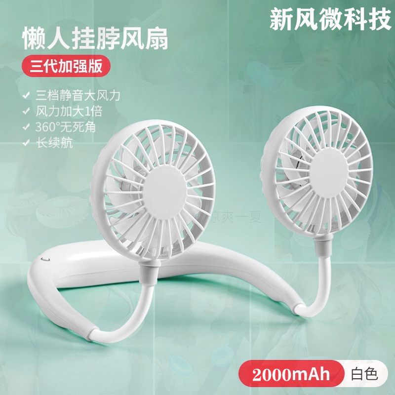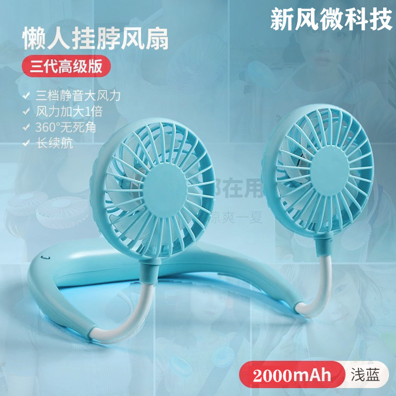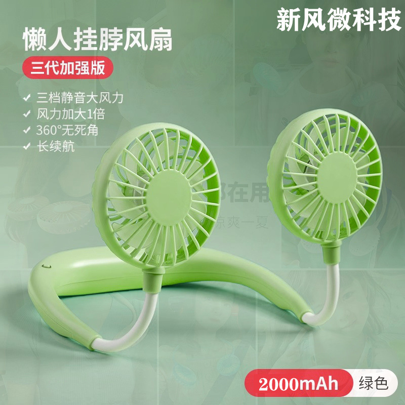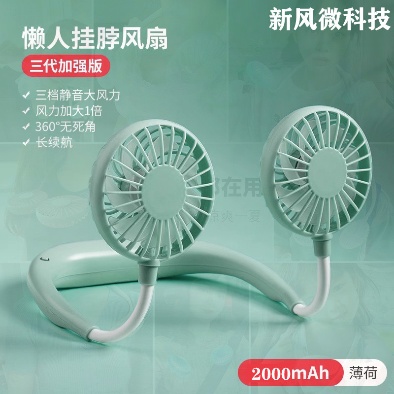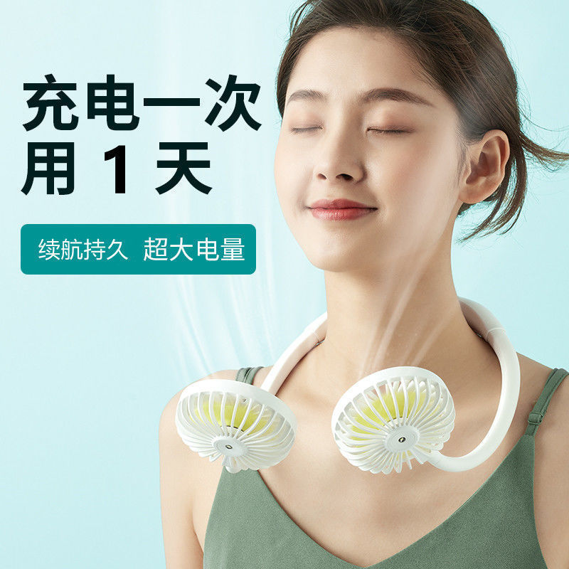 挂脖式风扇usb充电迷你静音大风力学生便携式上课懒人挂脖批发