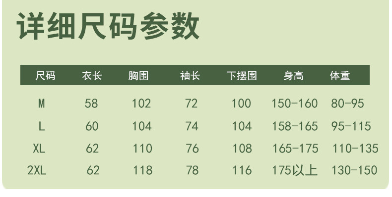 | 2XL【130-150斤】 | USD $0.0 | 1975 piece available |