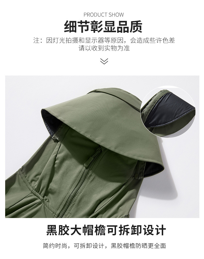 夏季新款冰丝防晒衣女骑行情侣外套可拆卸帽檐防晒服户外皮肤衣