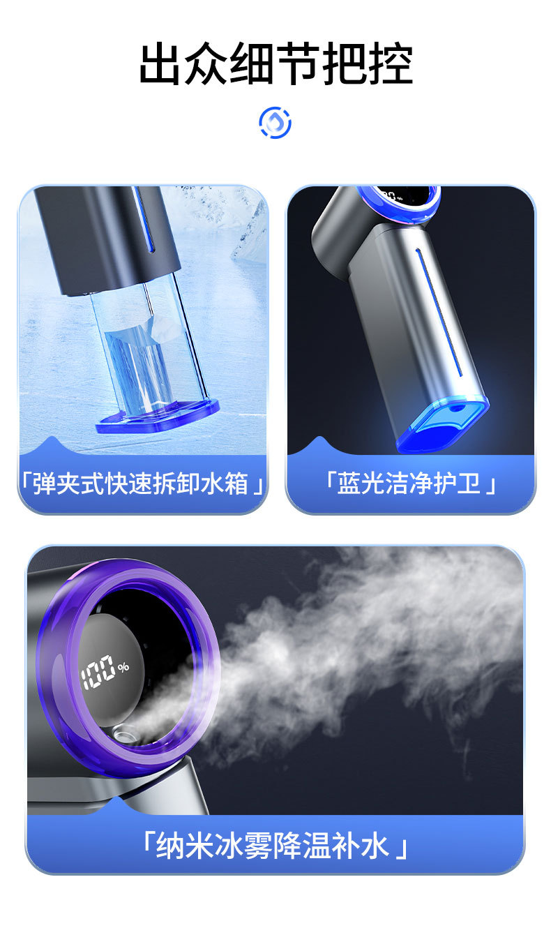 喷雾制冷手持风扇迷你新款高速2025充电跨境大风冰敷暴力可usb