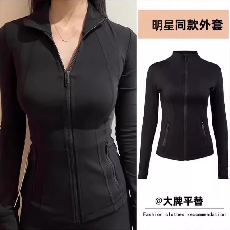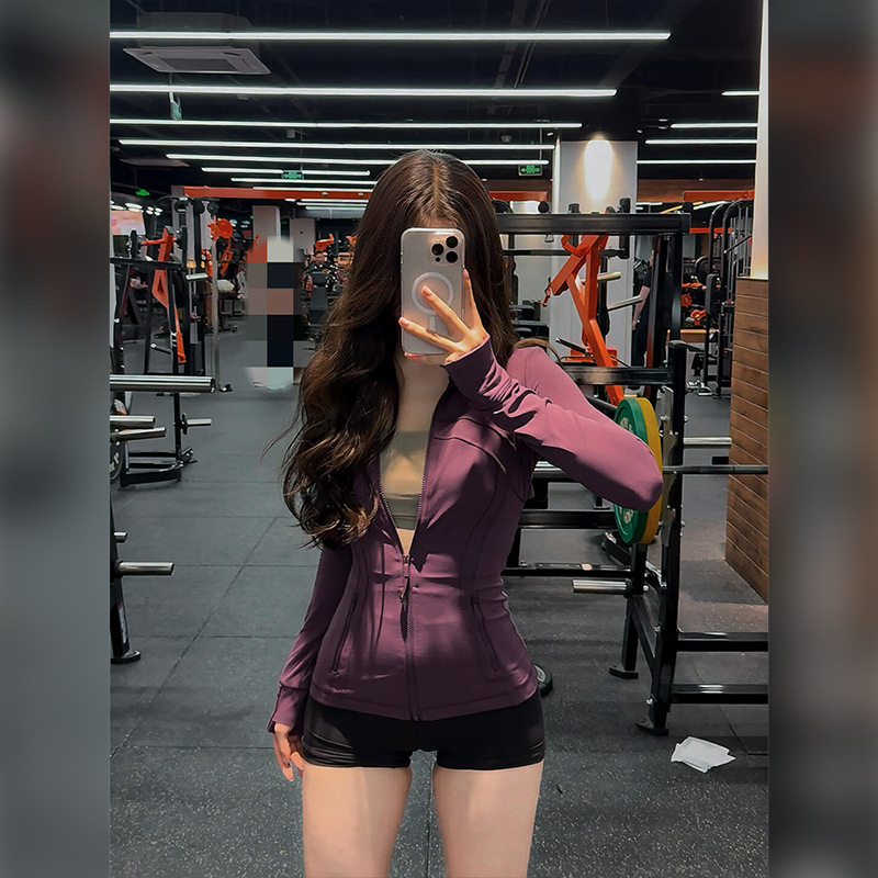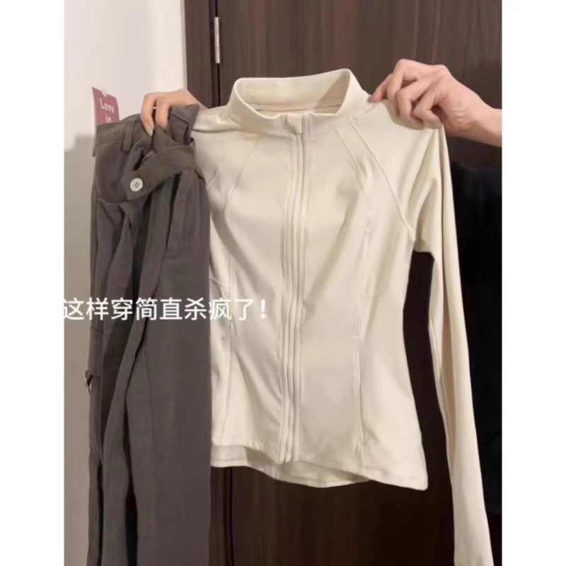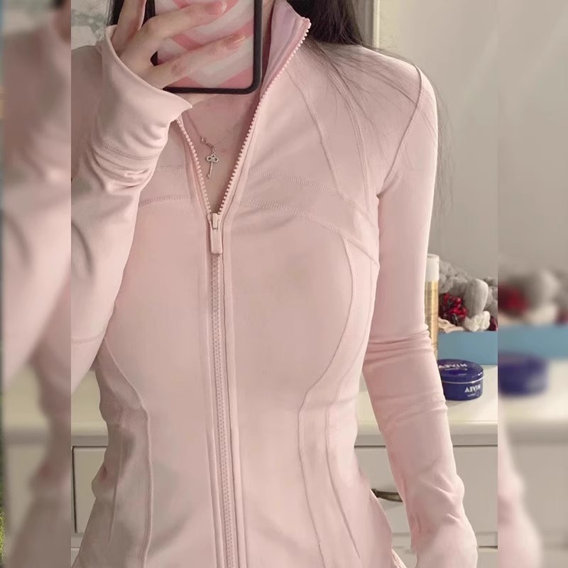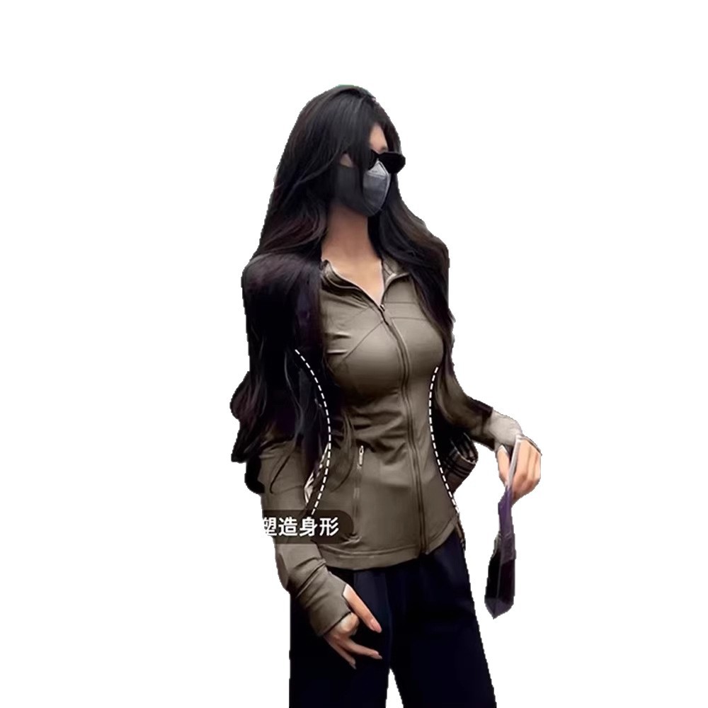 修身瑜伽服外套女骑行服羽绒服内搭长袖健身紧身运动上衣防晒衣春