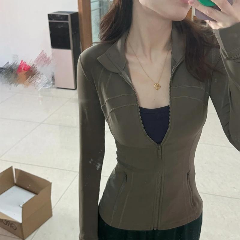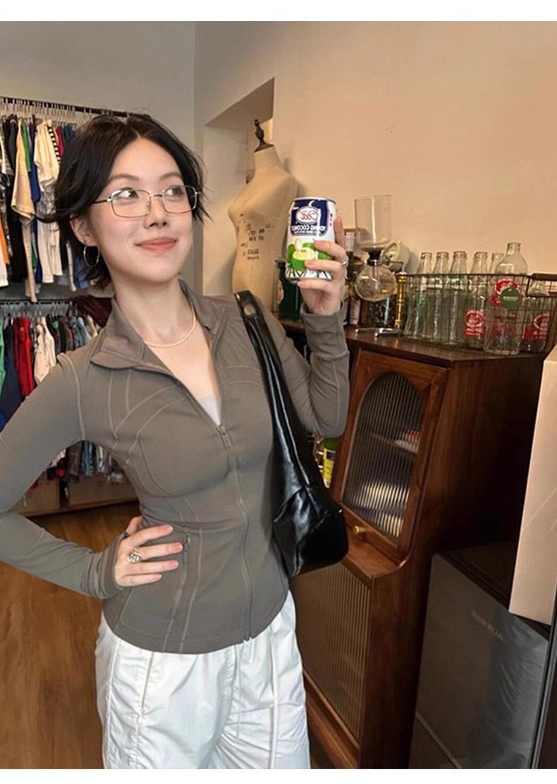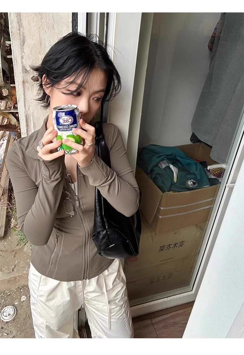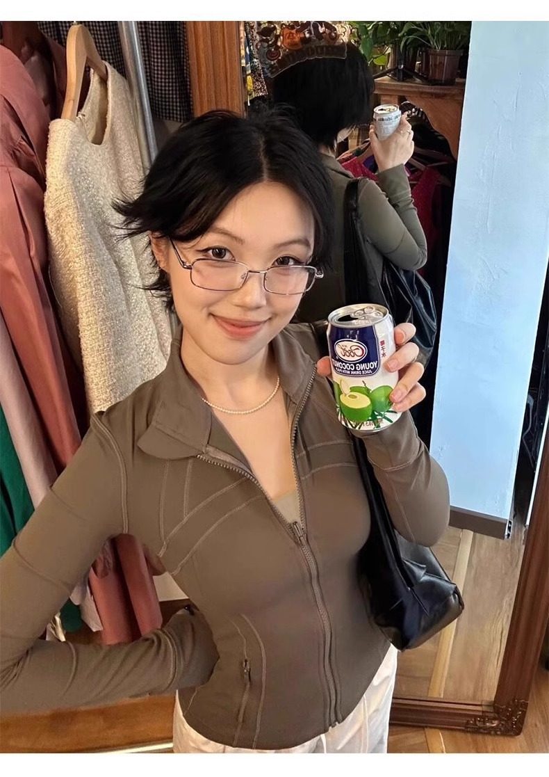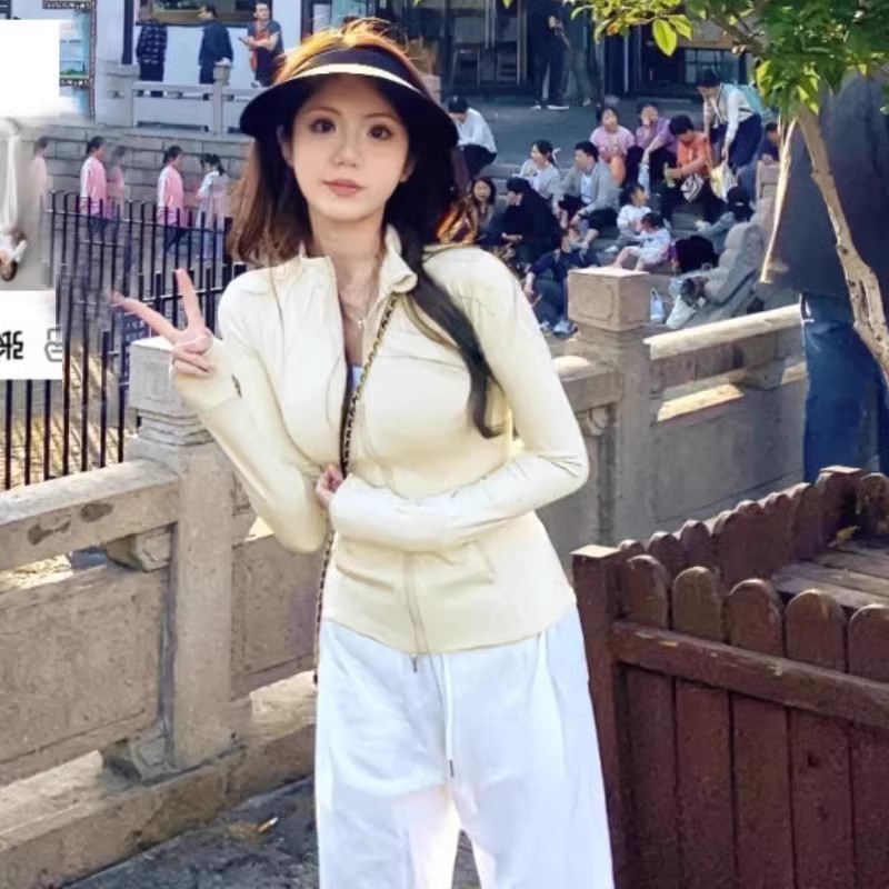 修身瑜伽服外套女骑行服羽绒服内搭长袖健身紧身运动上衣防晒衣春