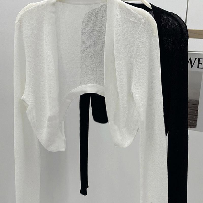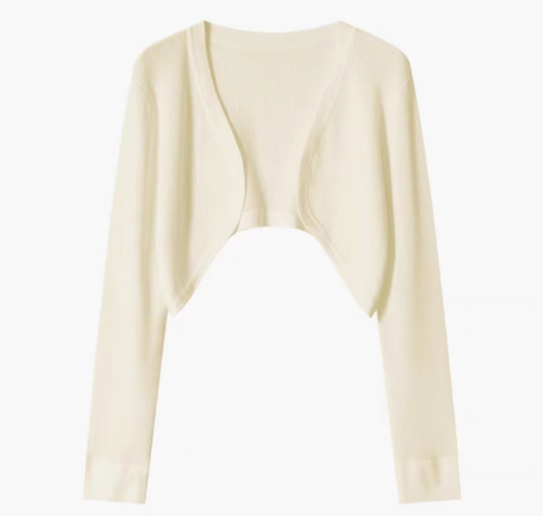 2024新款长袖弹力防晒针织开衫上衣女夏季轻薄空调衫短外套