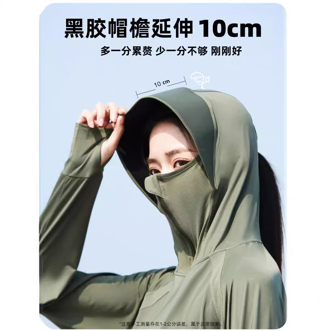 upf50+黑胶帽檐冰丝防晒衣女夏薄款户外防紫外线透气披肩斗篷上衣