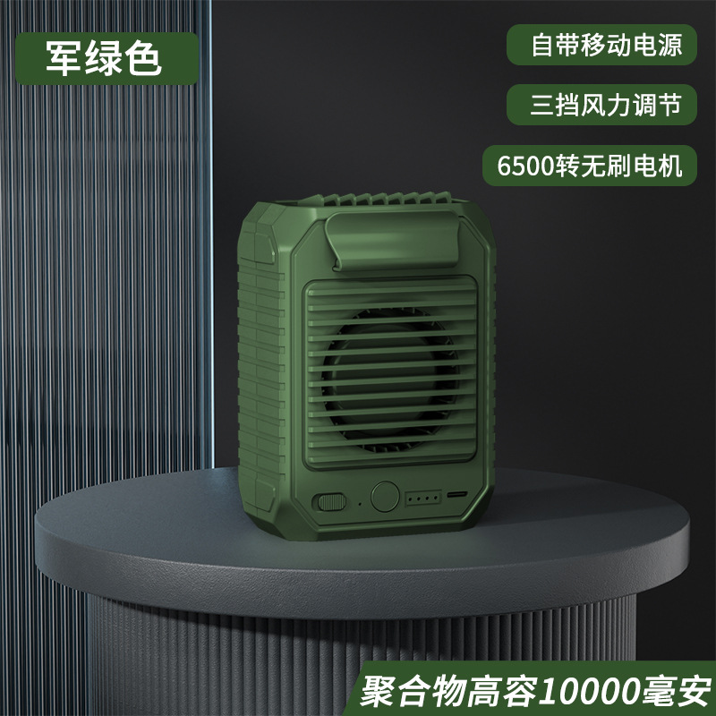 跨境户外挂腰风扇10000mAh便携式随身挂脖多功能大风力电风扇usb