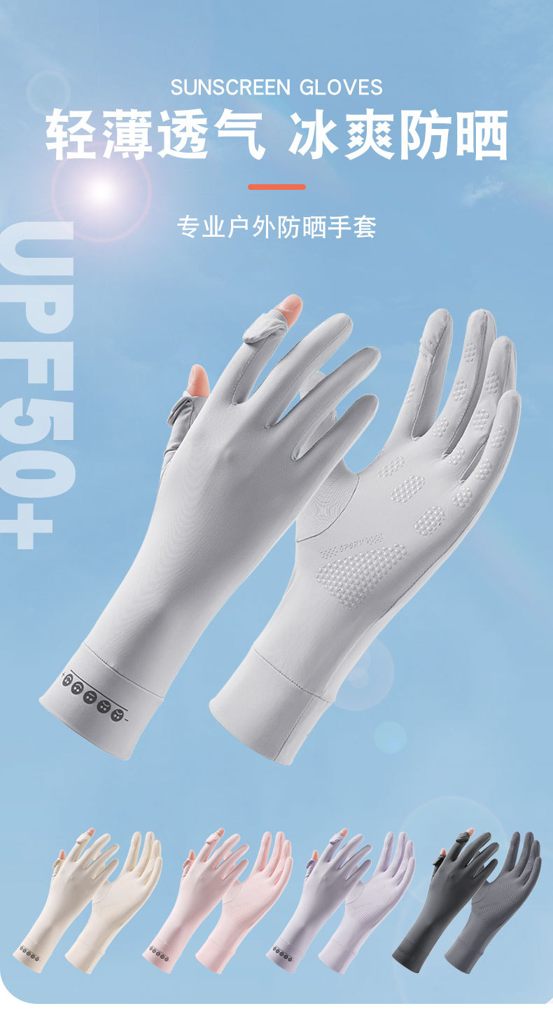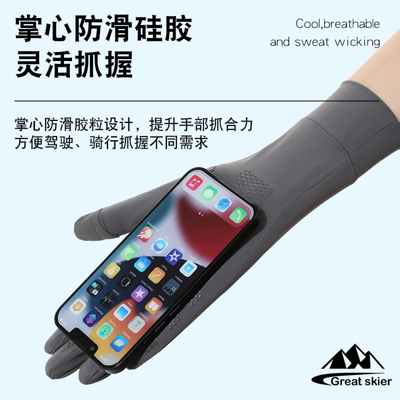 防晒手套女夏季加长款透气防滑翻盖触屏户外防紫外线冰丝手套批发