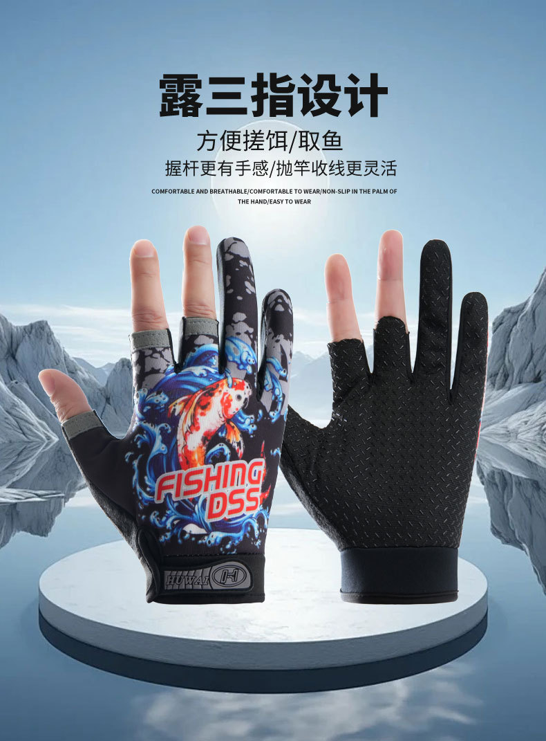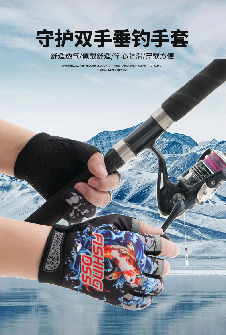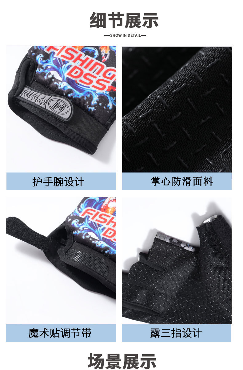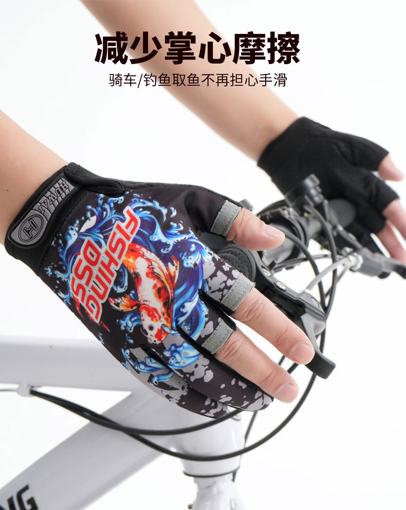 钓鱼手套男户外防晒防滑耐磨飞磕路亚垂钓抓鱼开车骑车健身骑行