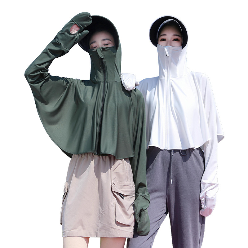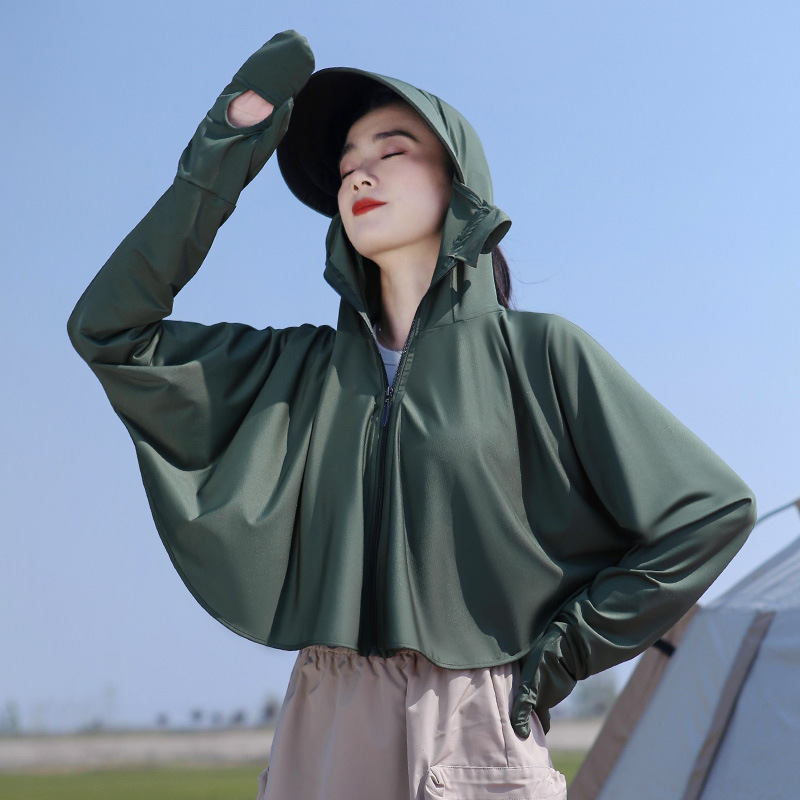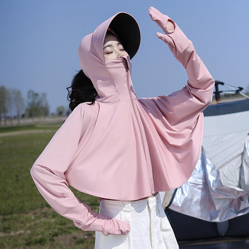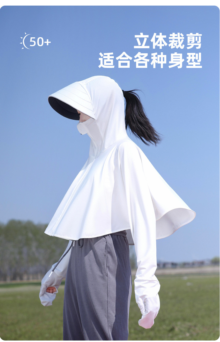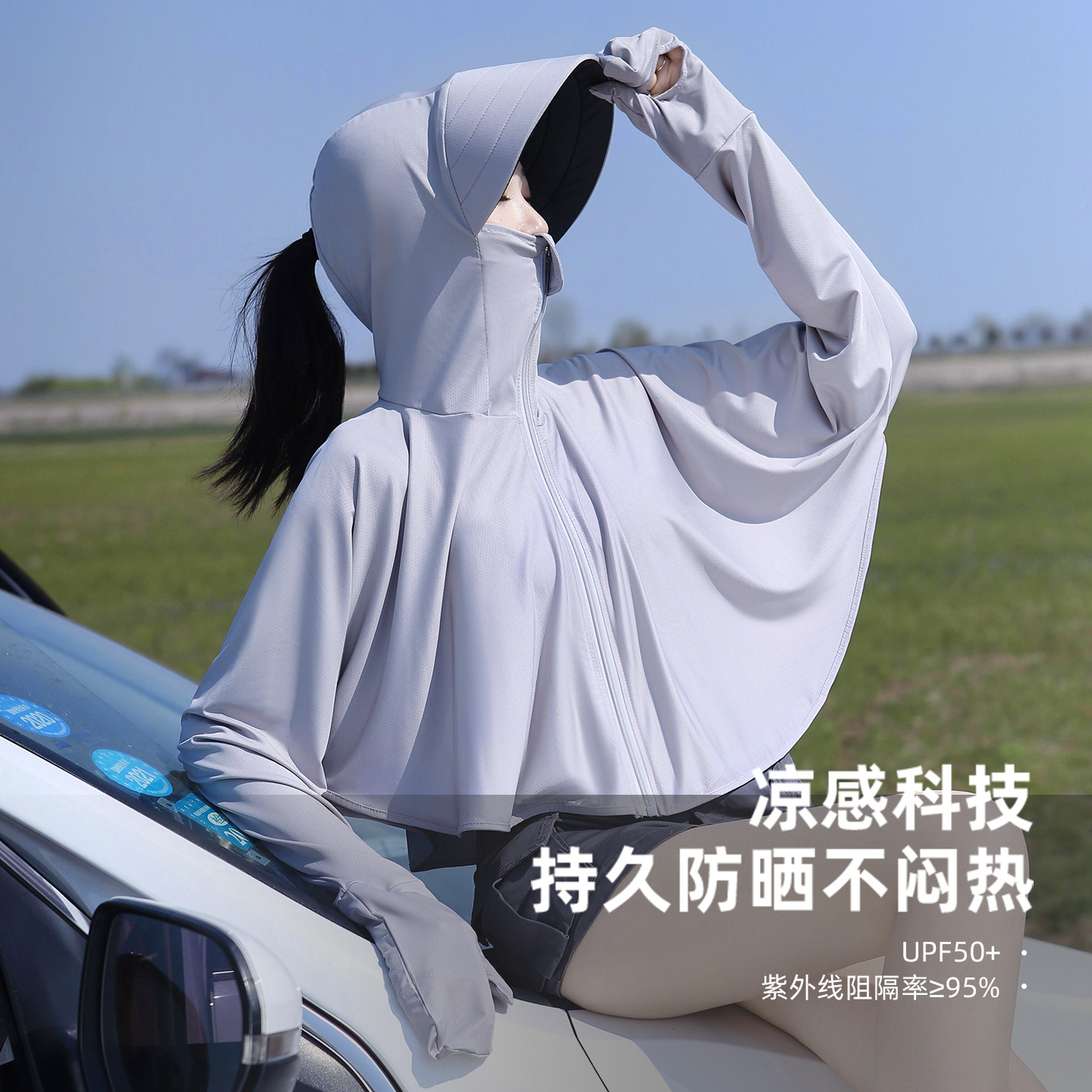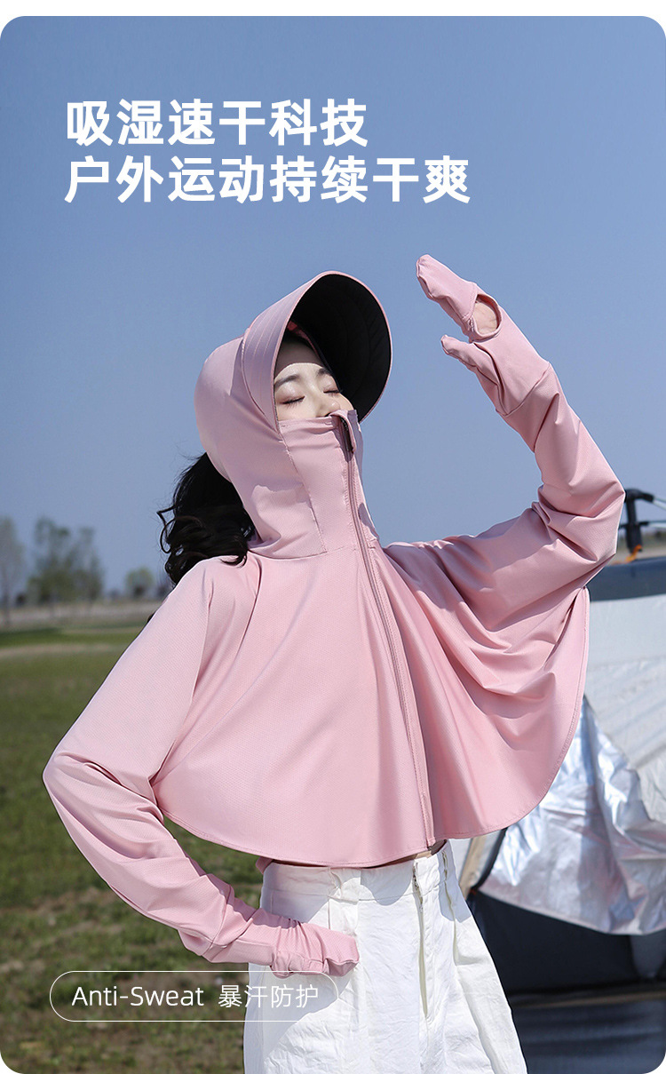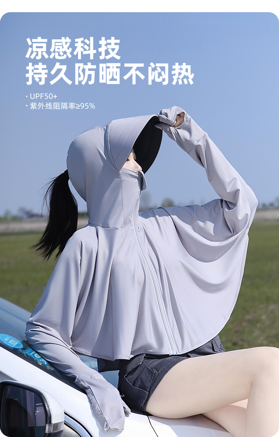 防晒衣女防紫外线2025夏季新款upf50+透气披肩斗篷黑胶护手防晒服