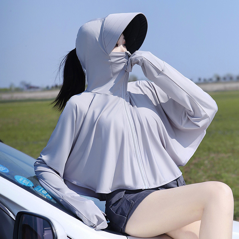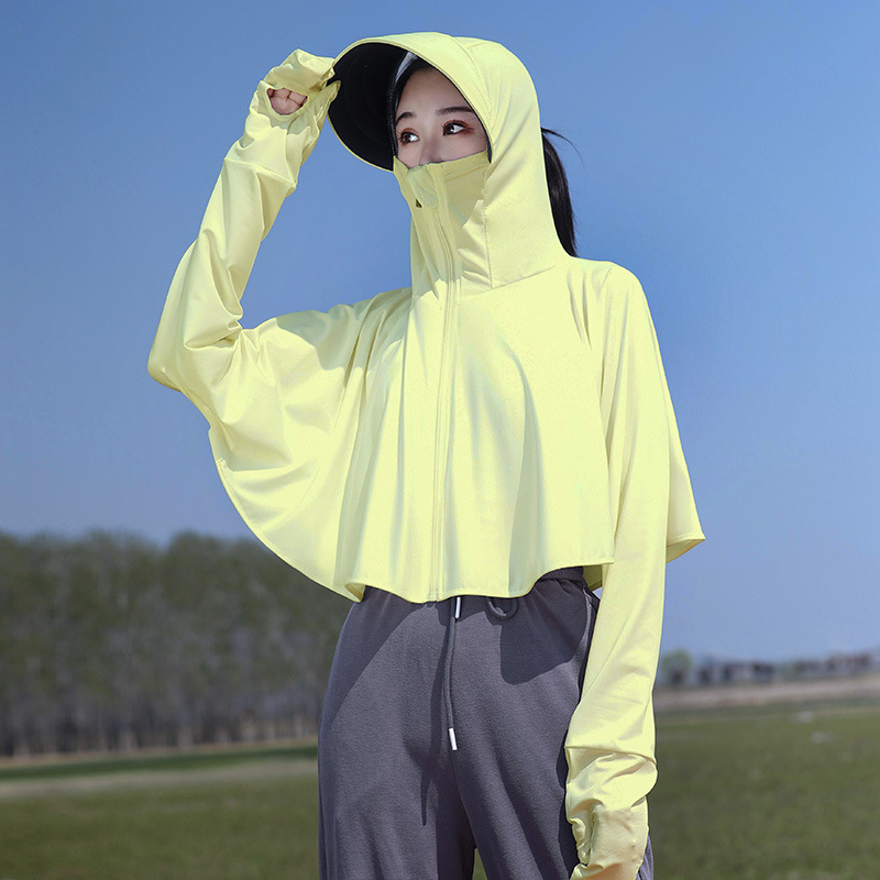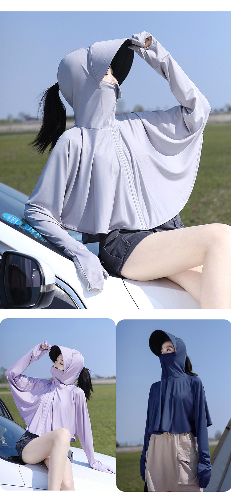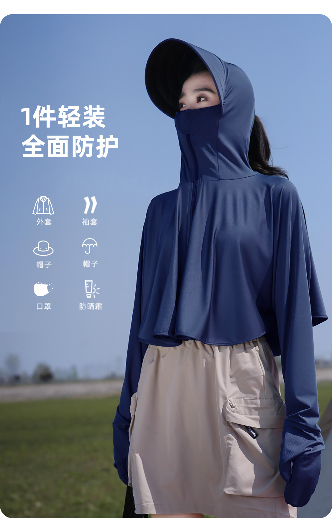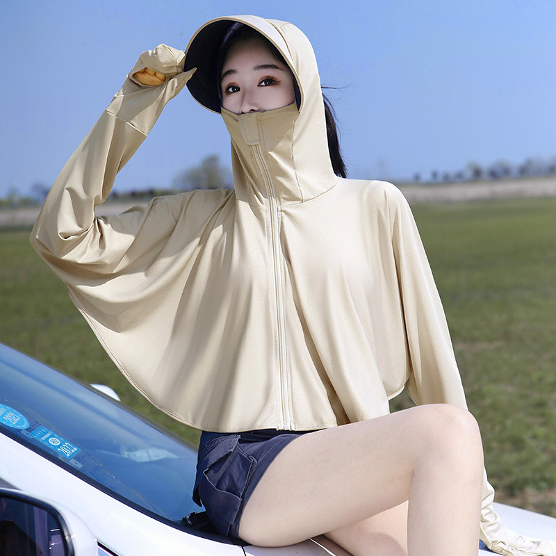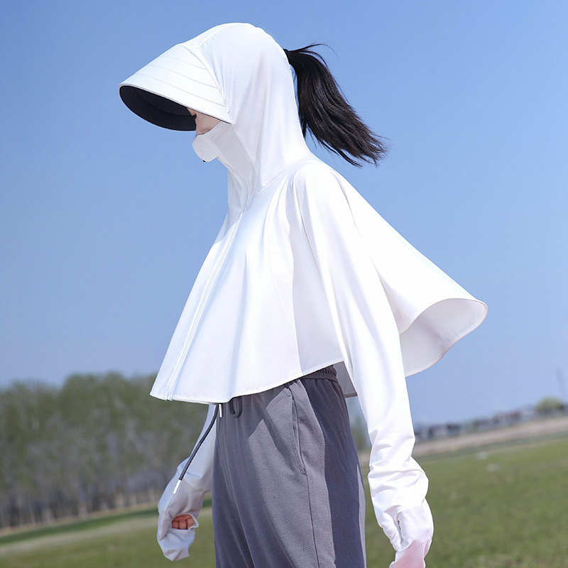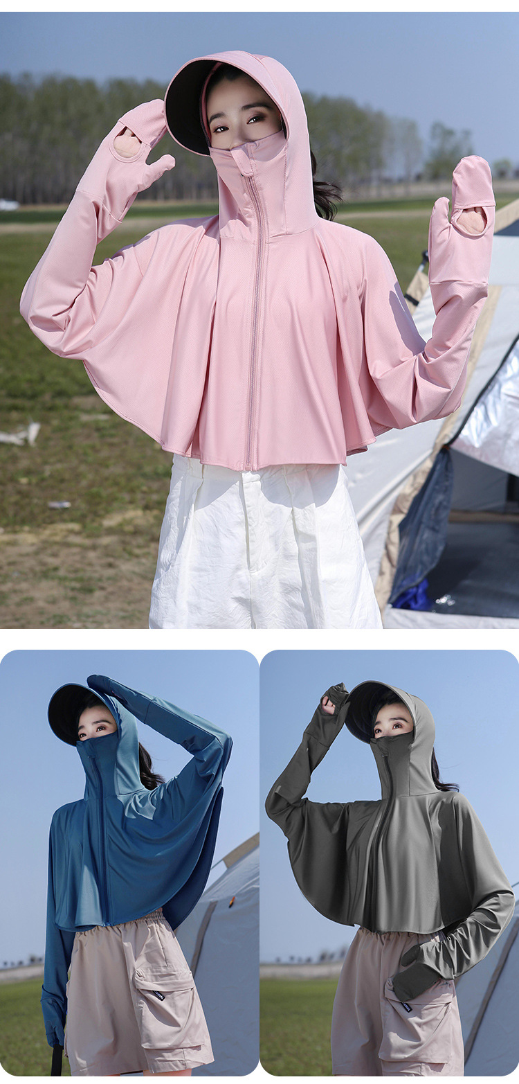 防晒衣女防紫外线2025夏季新款upf50+透气披肩斗篷黑胶护手防晒服
