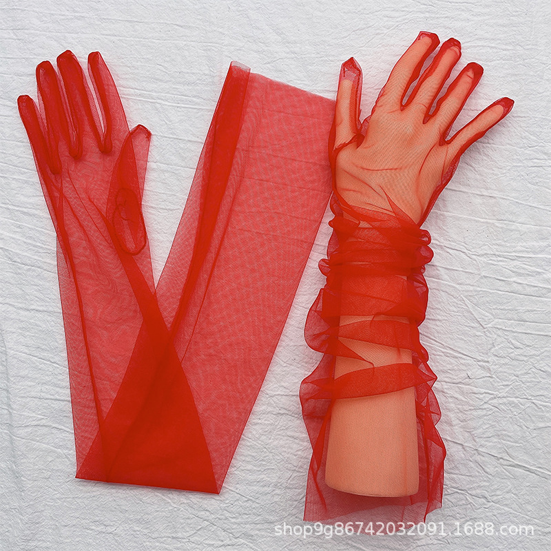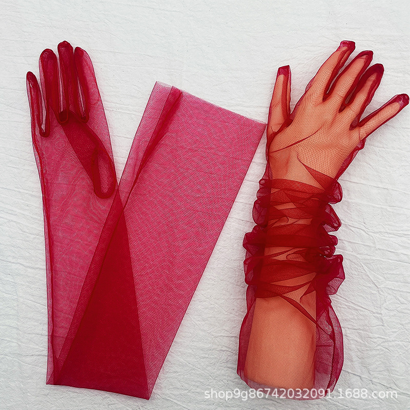 夏季薄款防晒手套长款网纱服饰手套女士婚礼新娘礼服手套触屏手套