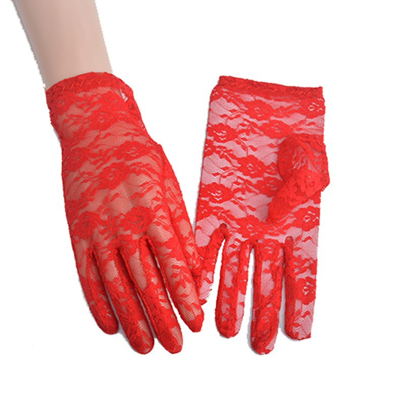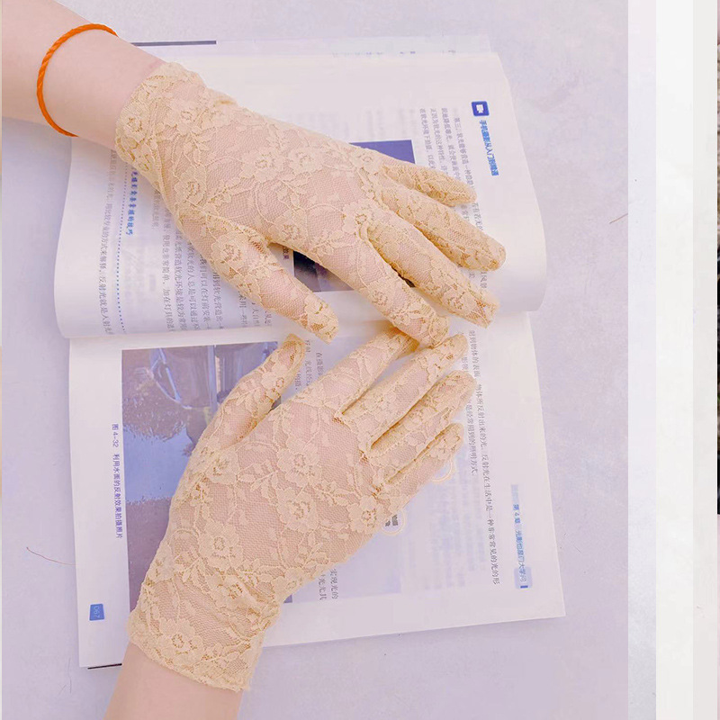 夏秋季短款骑车可爱薄款防晒蕾丝手套女开车分指性感新娘韩版遮阳