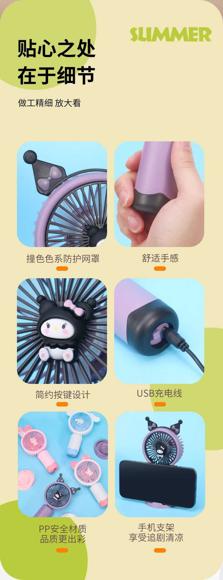 跨境手持小风扇可爱便携式随身学生usb可充电户外小风扇伴手礼品