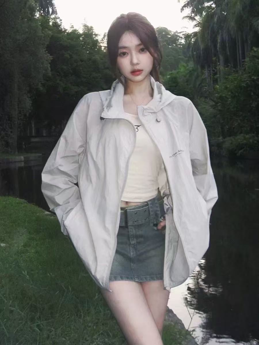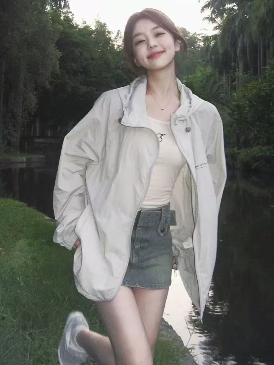 防晒衣女2025宽松百搭防紫外线薄款户外防晒服外套字母印花遮阳