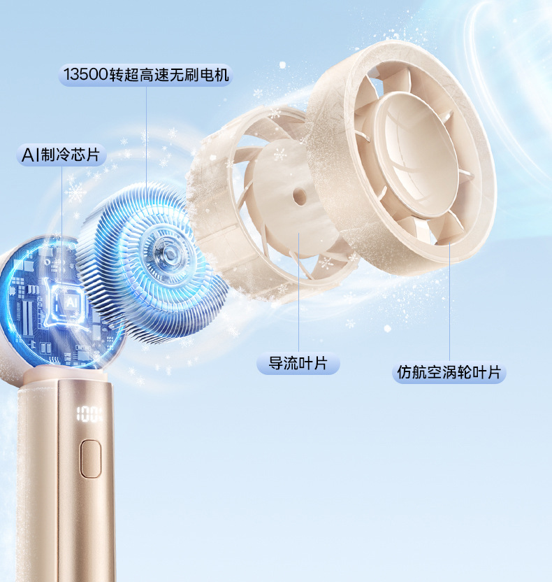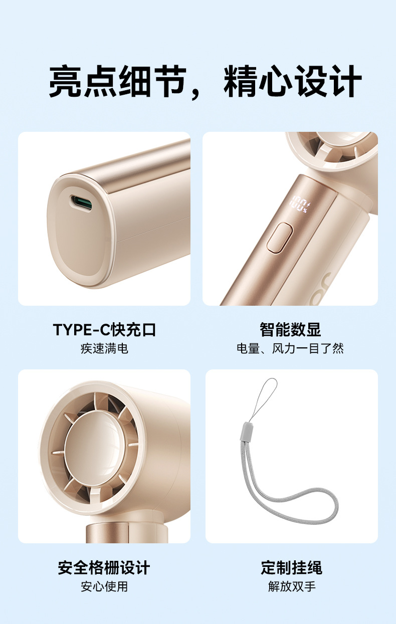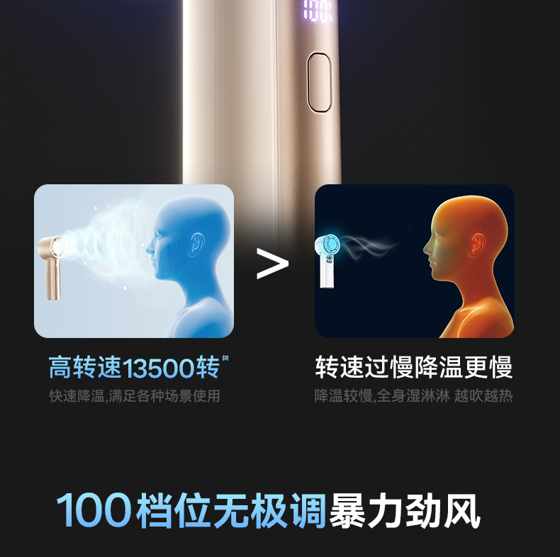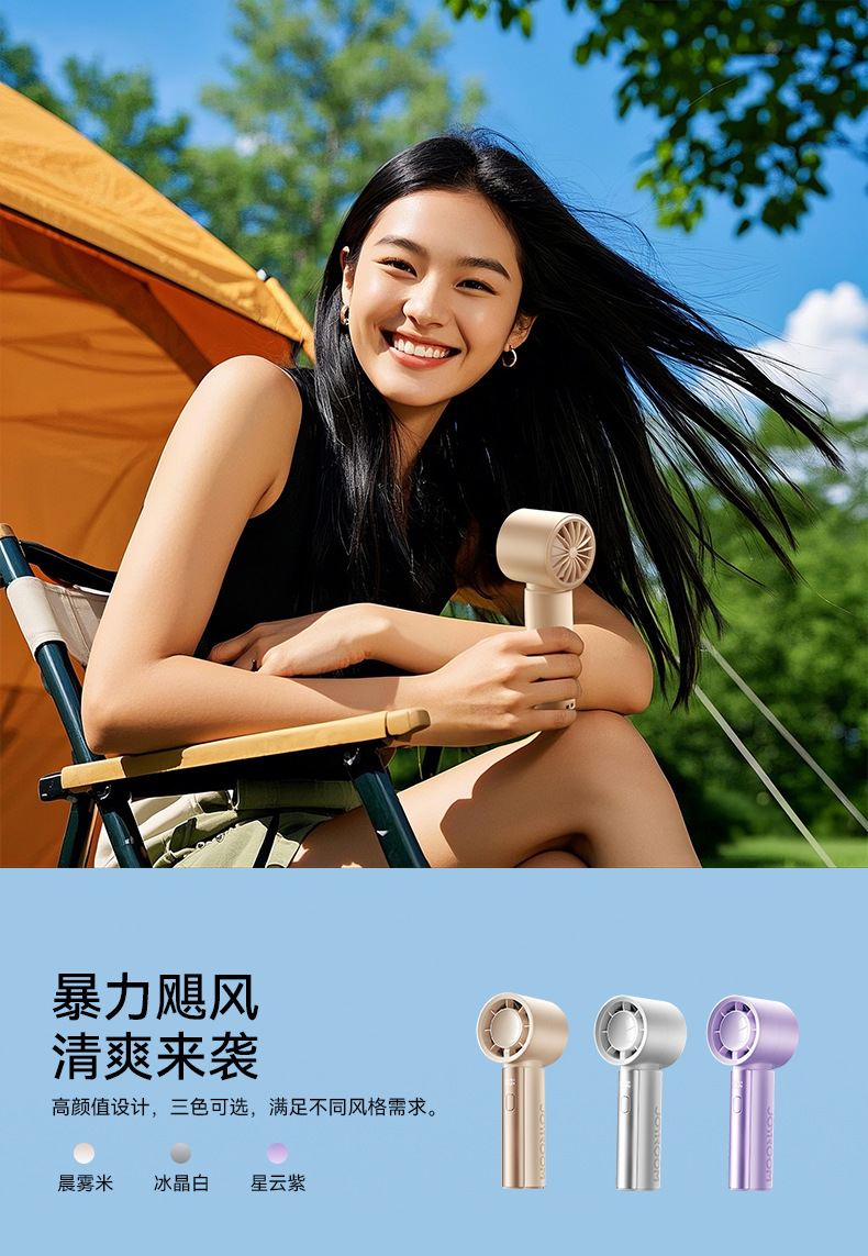 机乐堂手持暴力风扇户外小型便携式风扇低音数显usb充电高速风扇