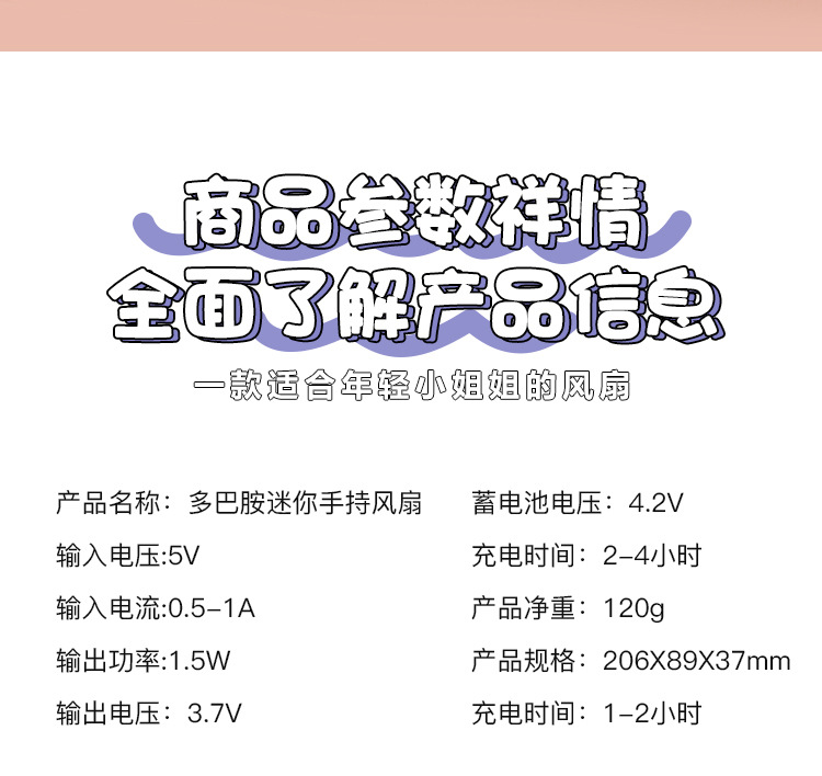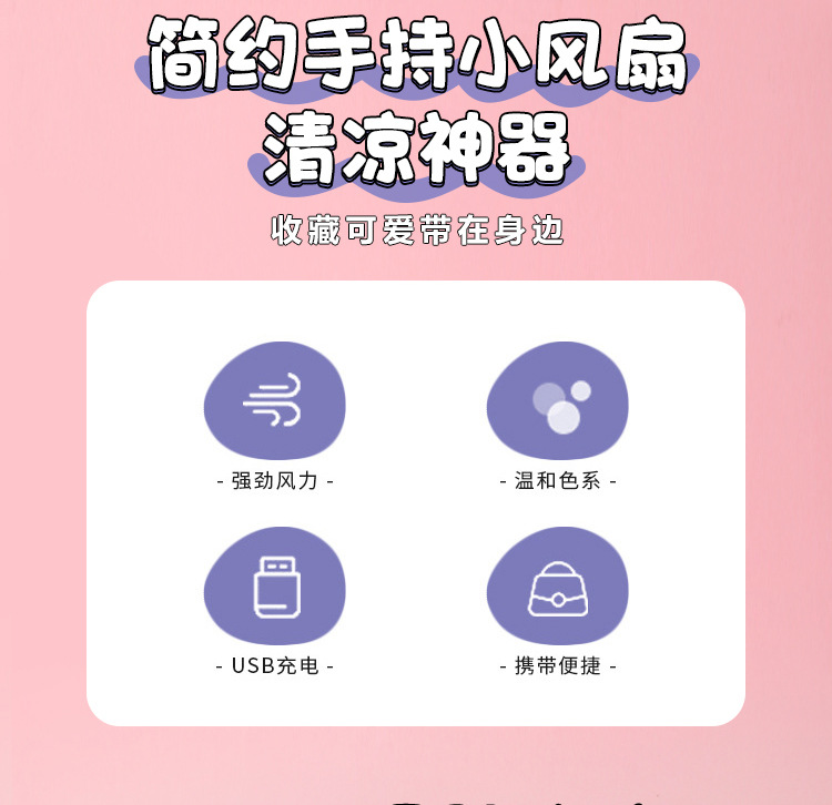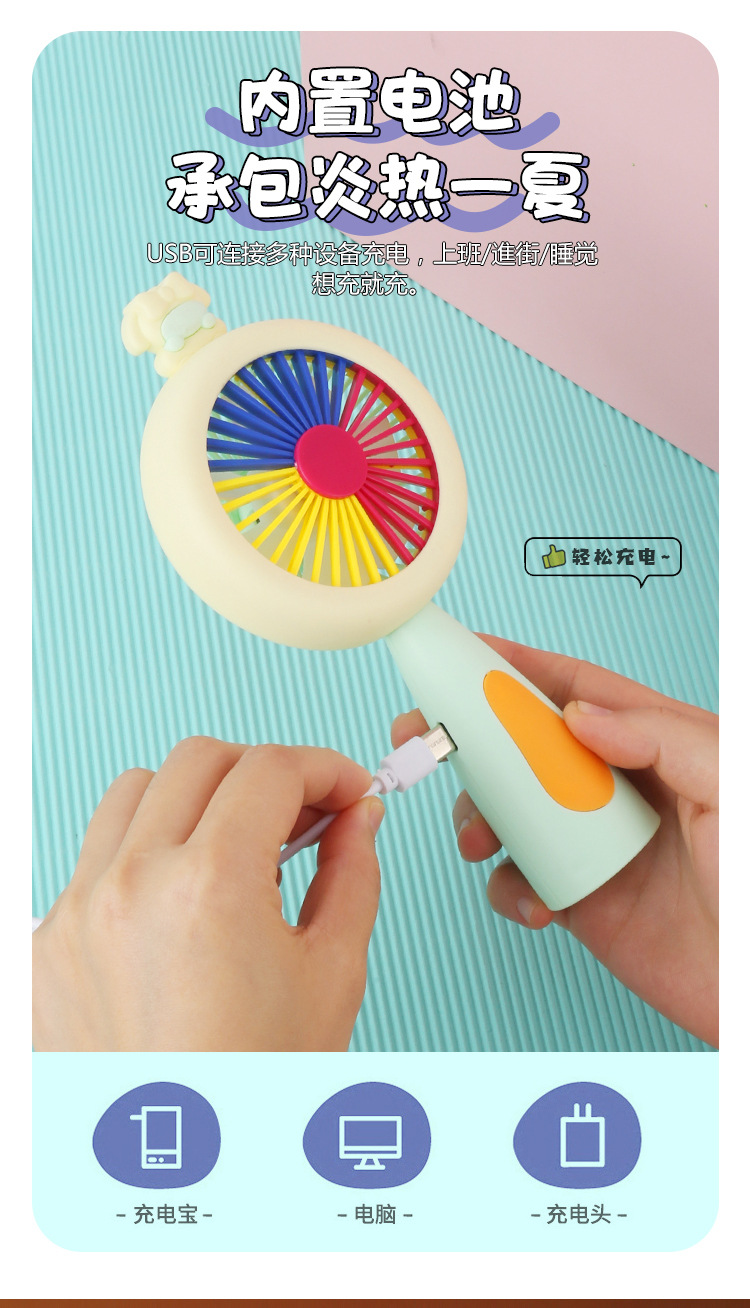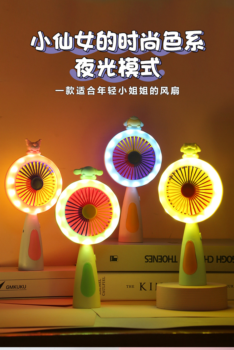 多巴胺迷你手持小风扇USB充电带小夜灯便携式随身手拿桌面电风扇