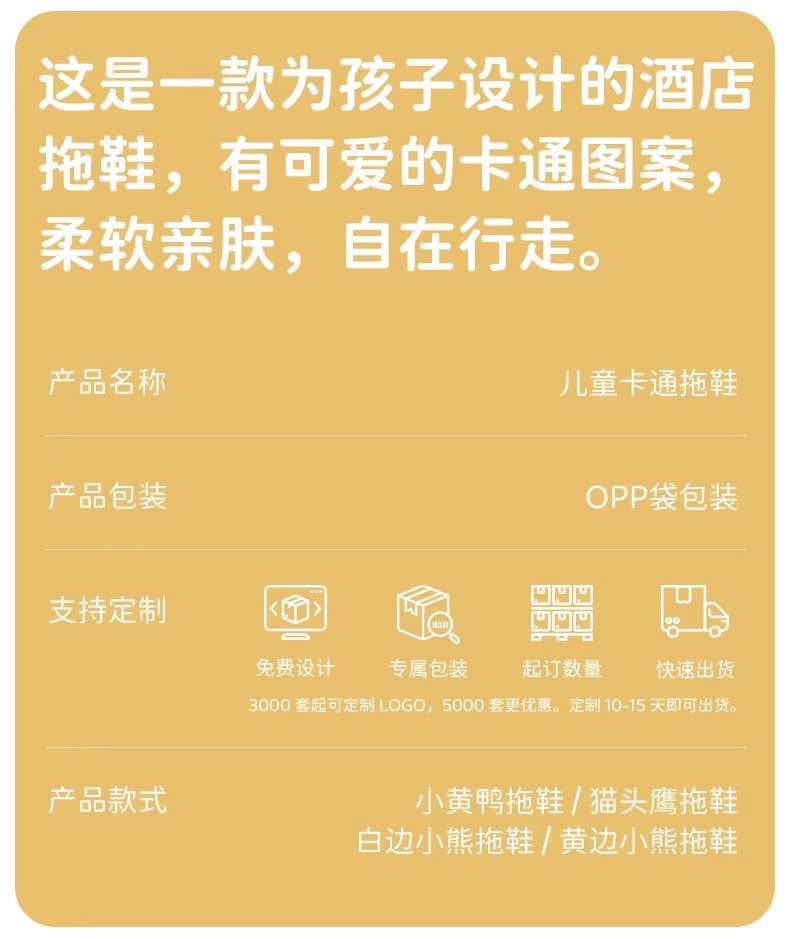 家庭房儿童便捷拖鞋酒店小孩一次性防滑加厚底 民宿卡通款旅拖鞋
