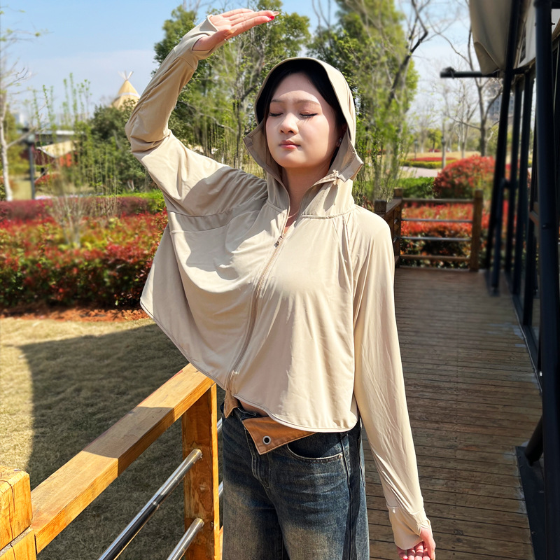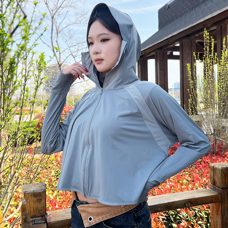 冰丝防晒衣女轻薄透气防晒上衣夏季防紫外线黑胶连帽外套防晒服