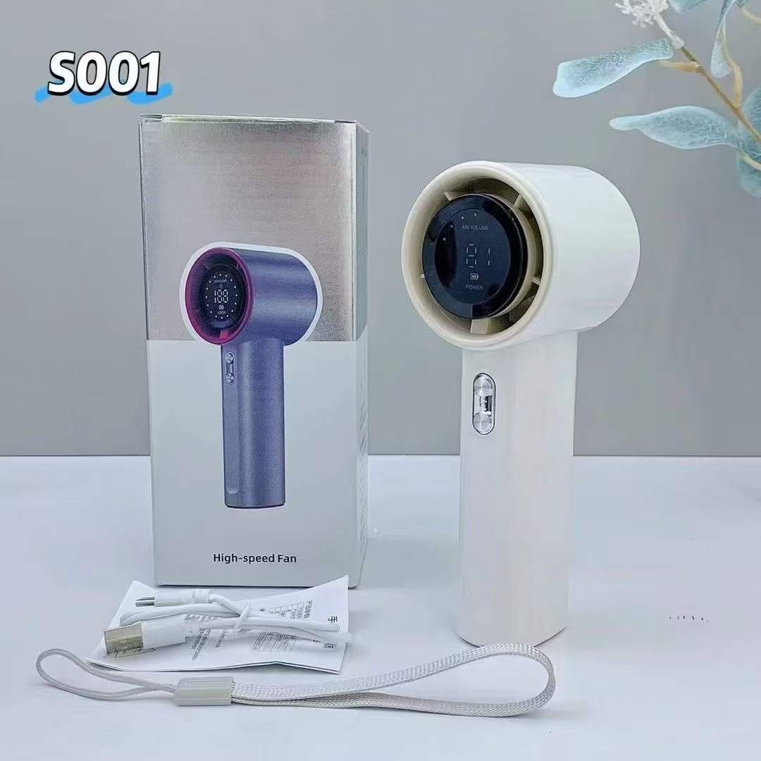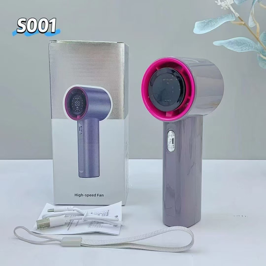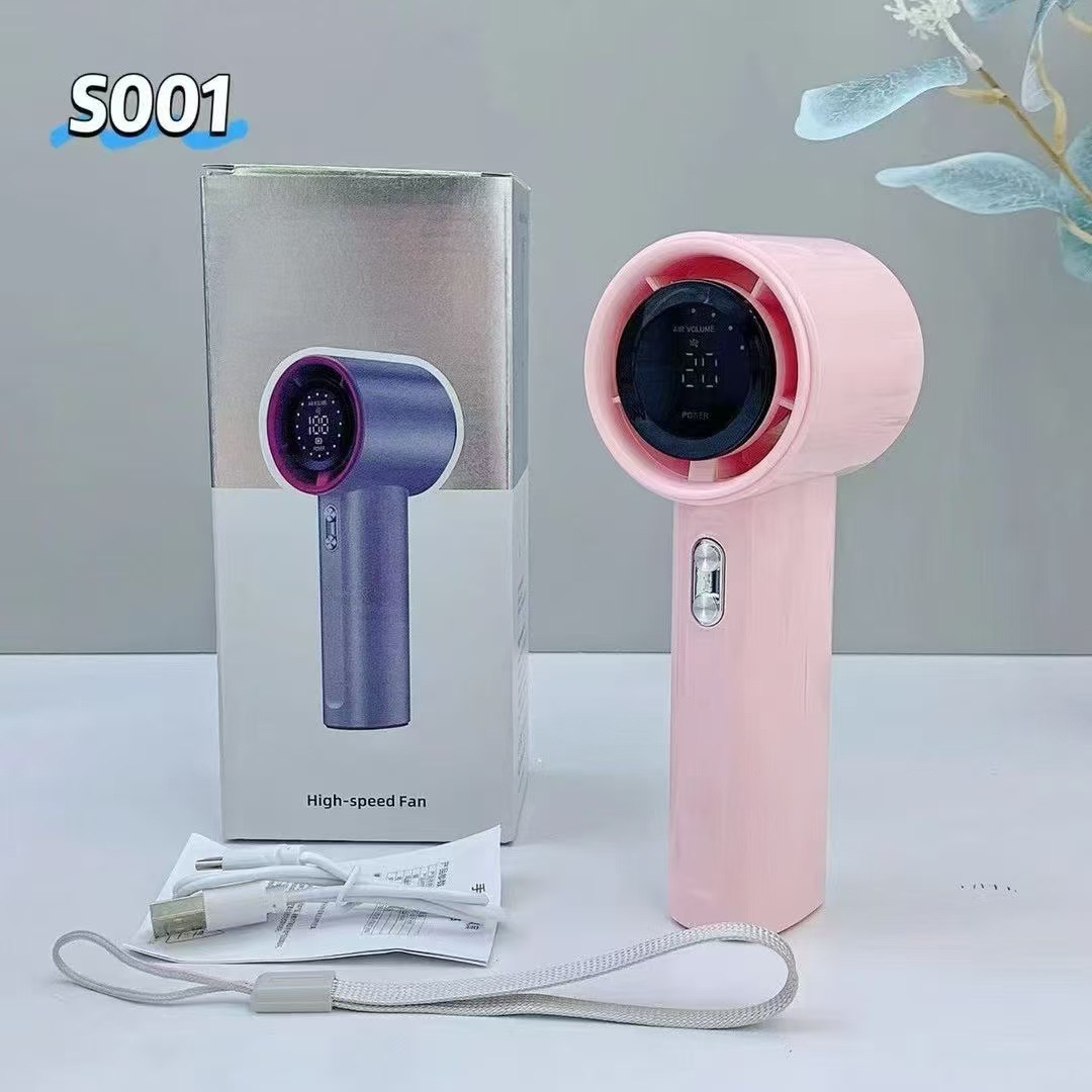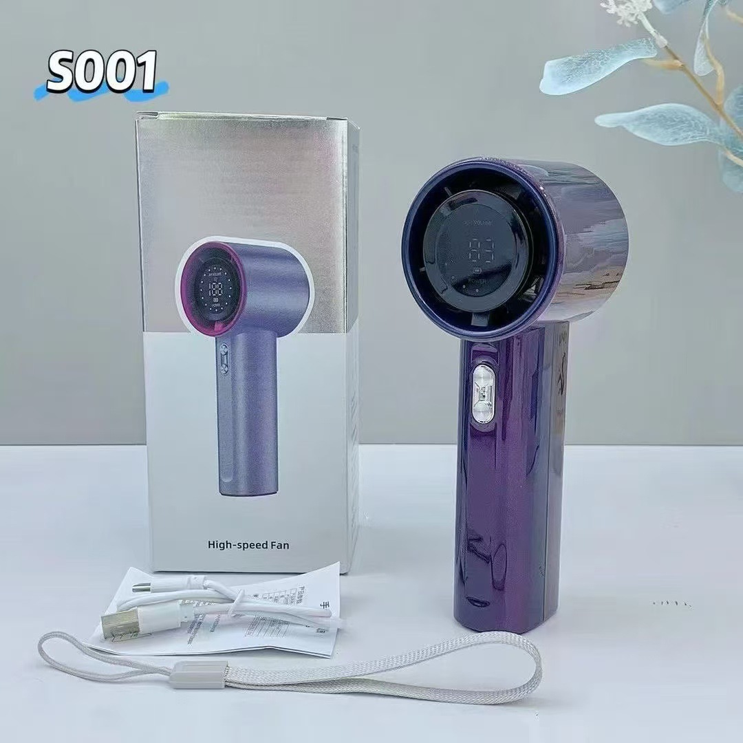 东南亚爆款S001手持高速风扇100档暴力数显户外迷你风扇USB充电款