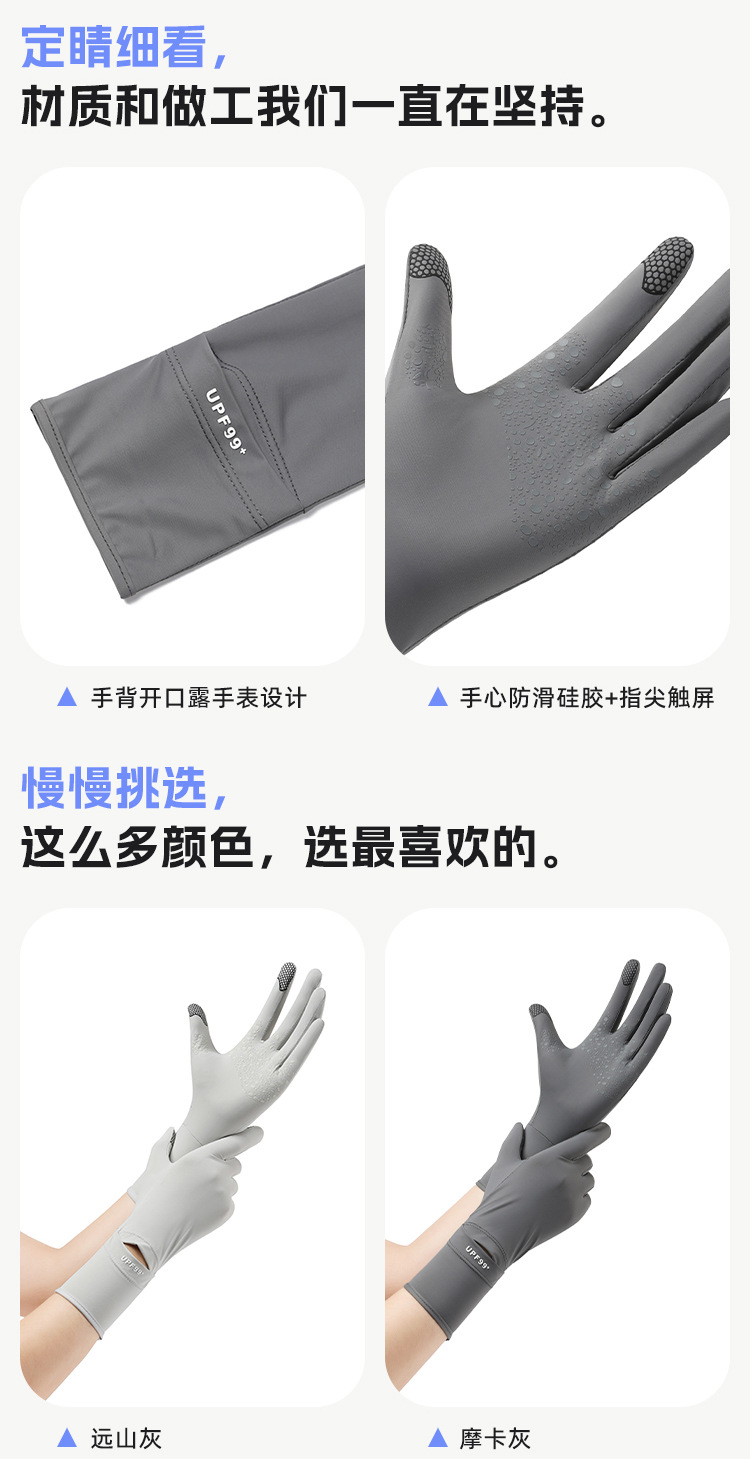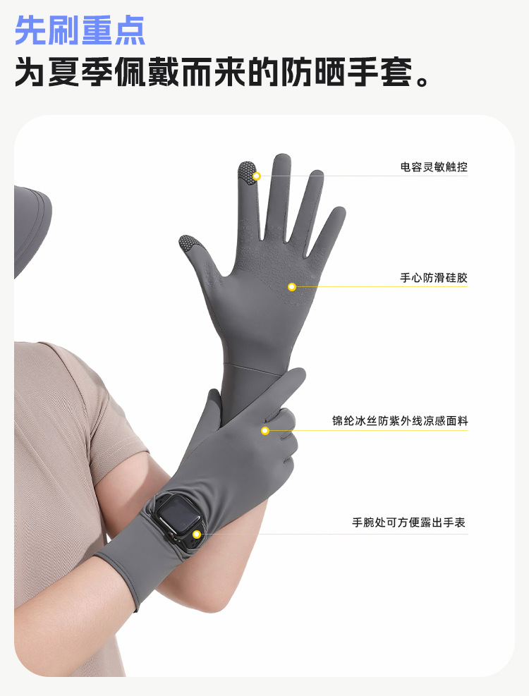 夏天女士运动防晒手套女防紫外线薄款冰丝触屏夏季开车用防晒手套
