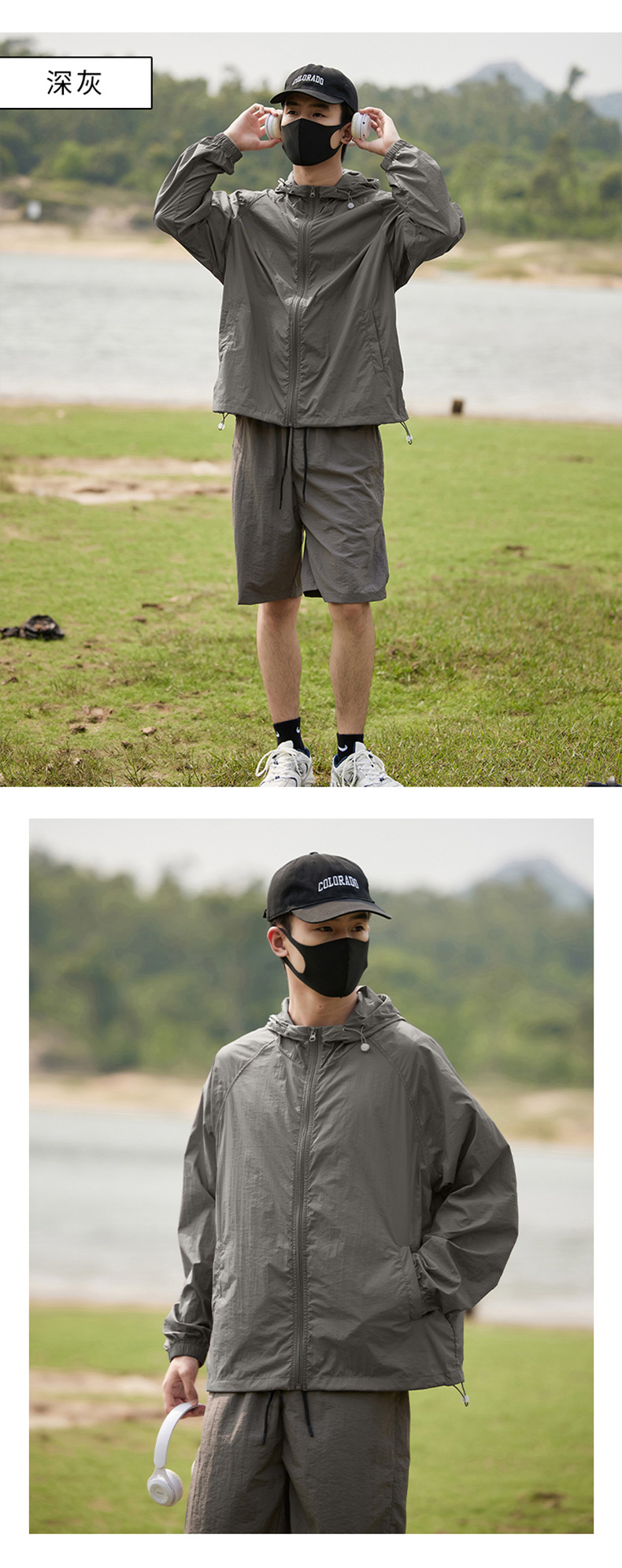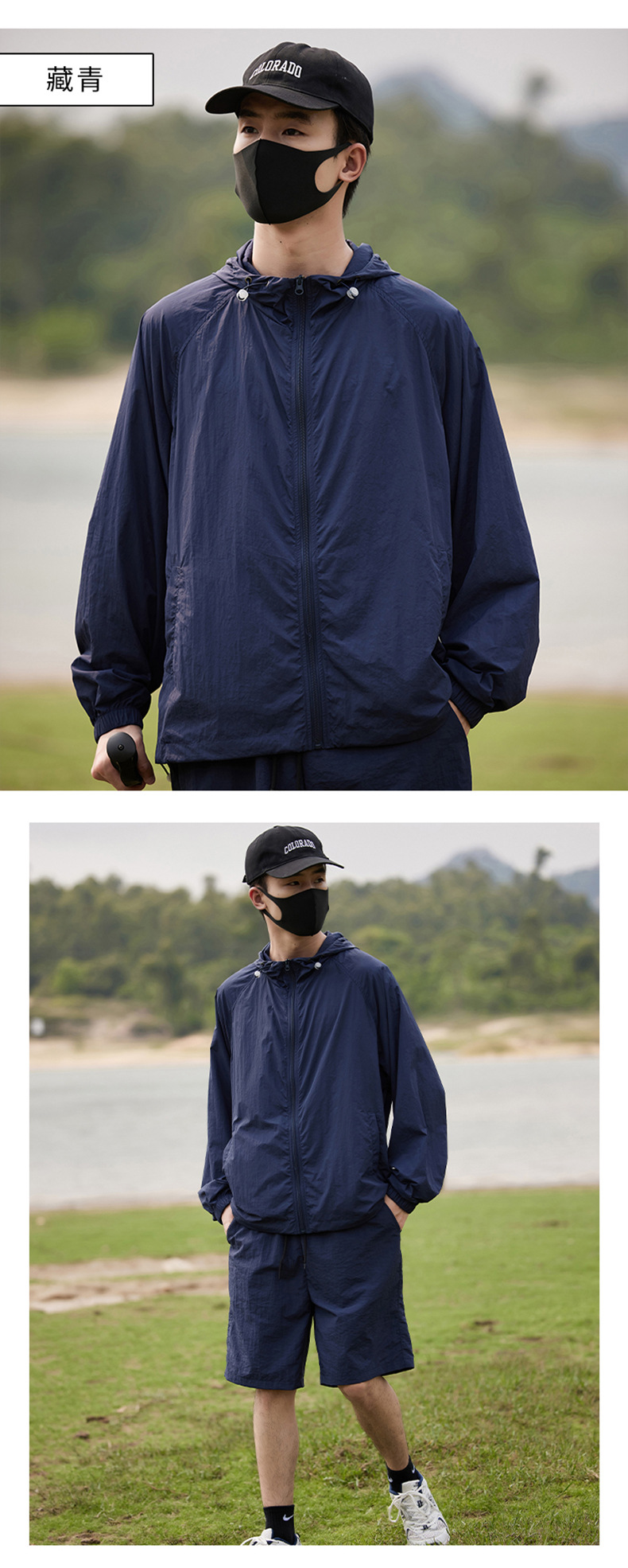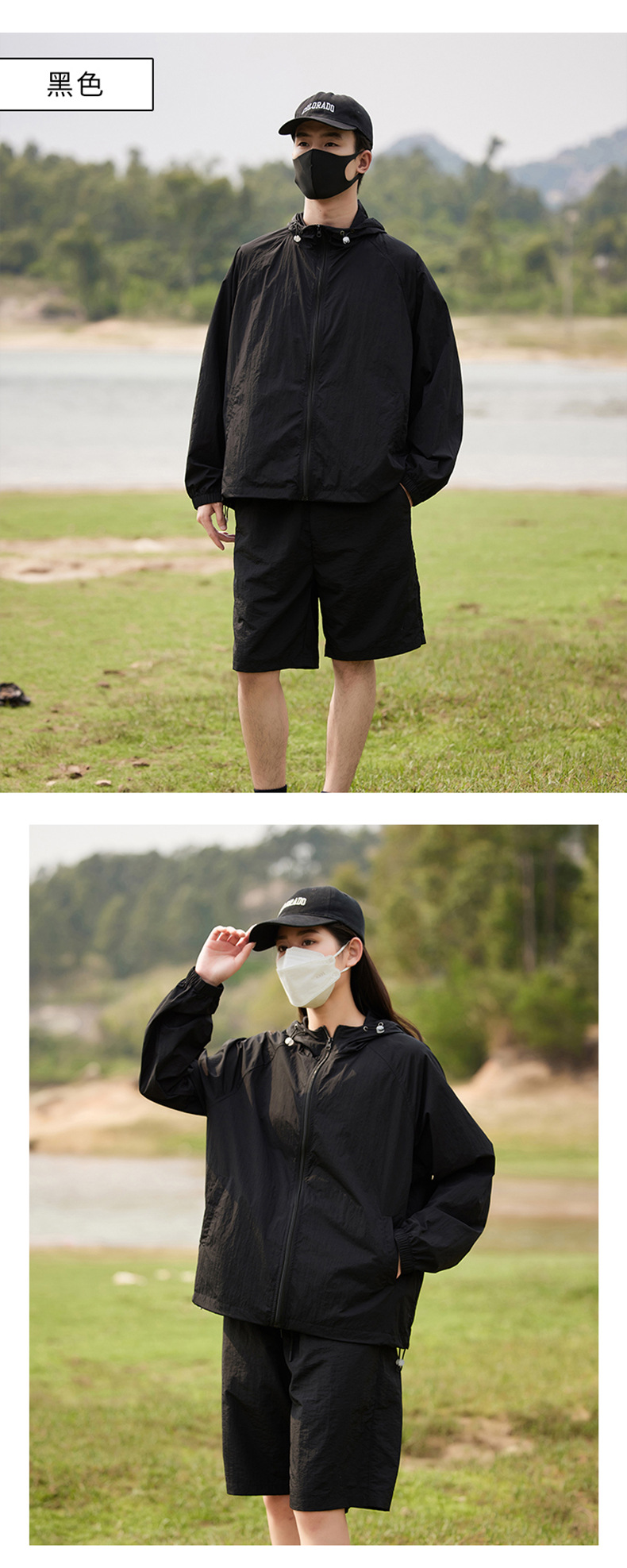 抖音爆款防晒衣女骑行透气防紫外线UPF50+防晒服男连帽套装钓鱼服