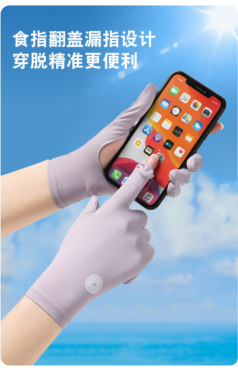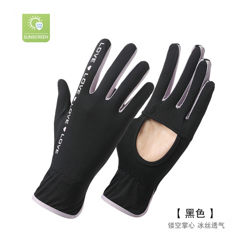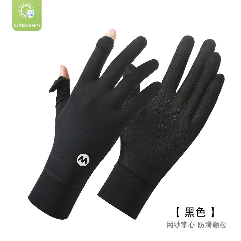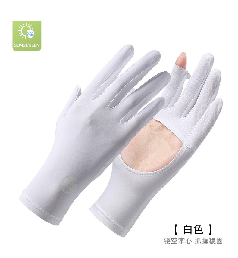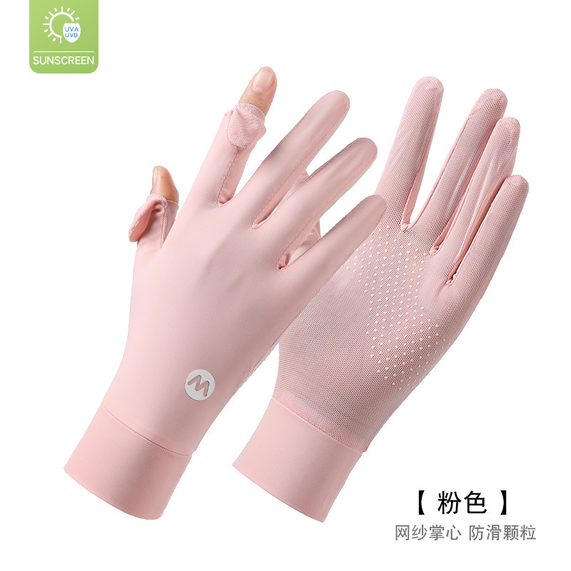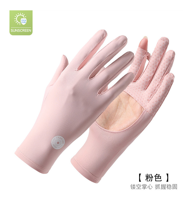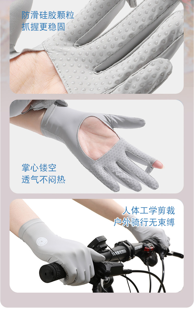 防晒手套女夏防紫外线镂空掌心透气防滑骑行开车露指触屏冰丝手套