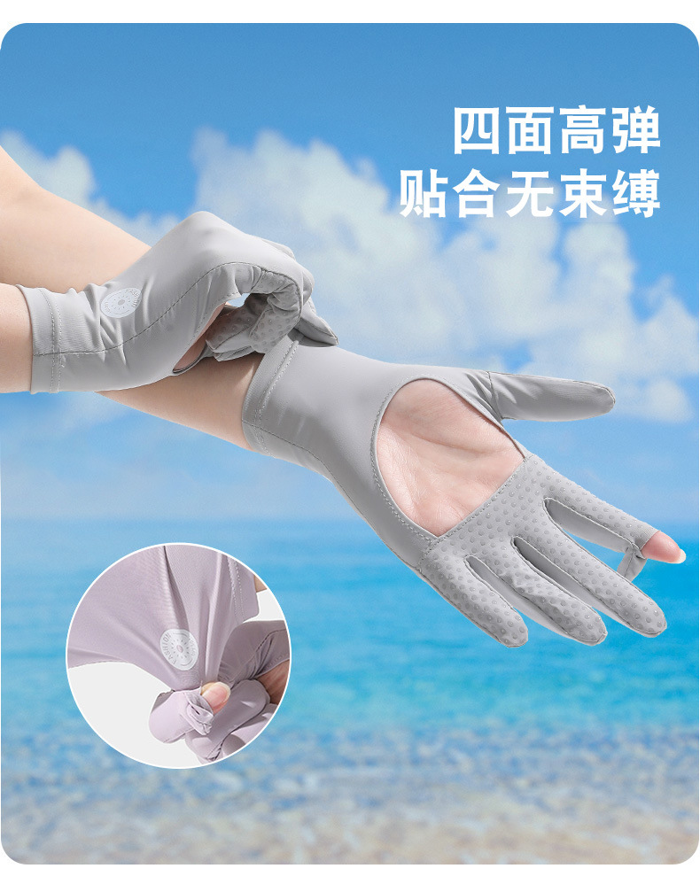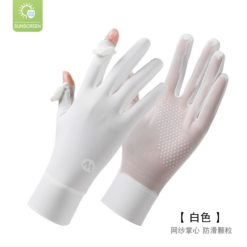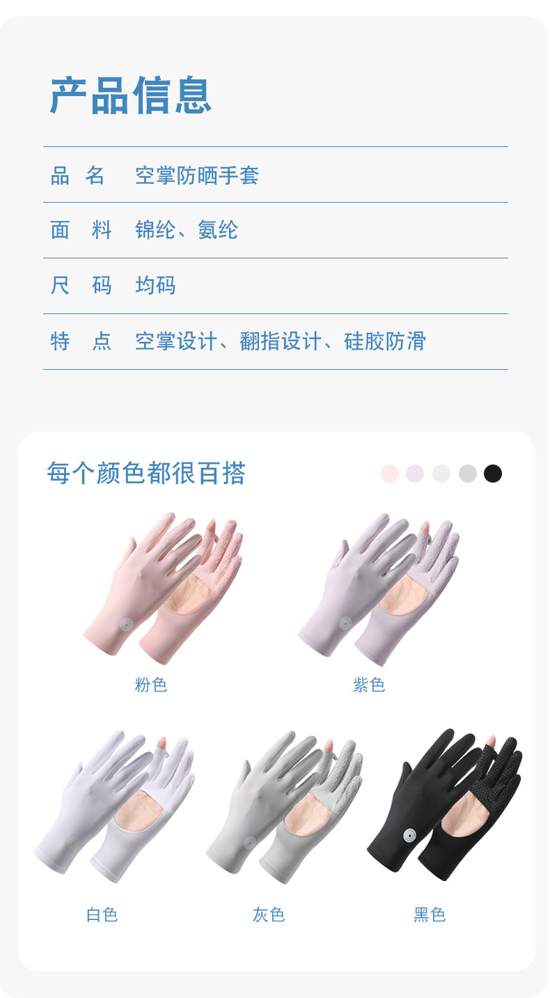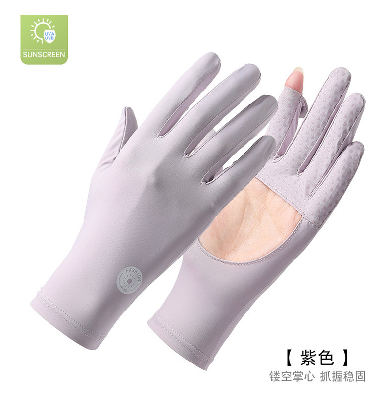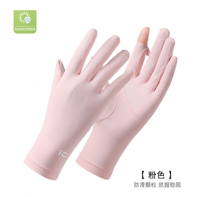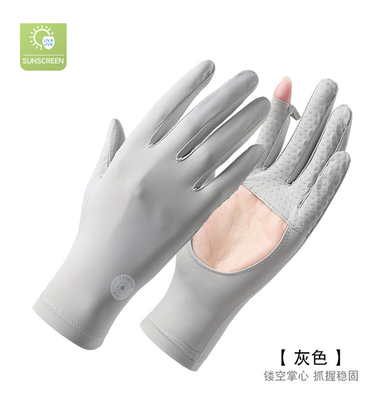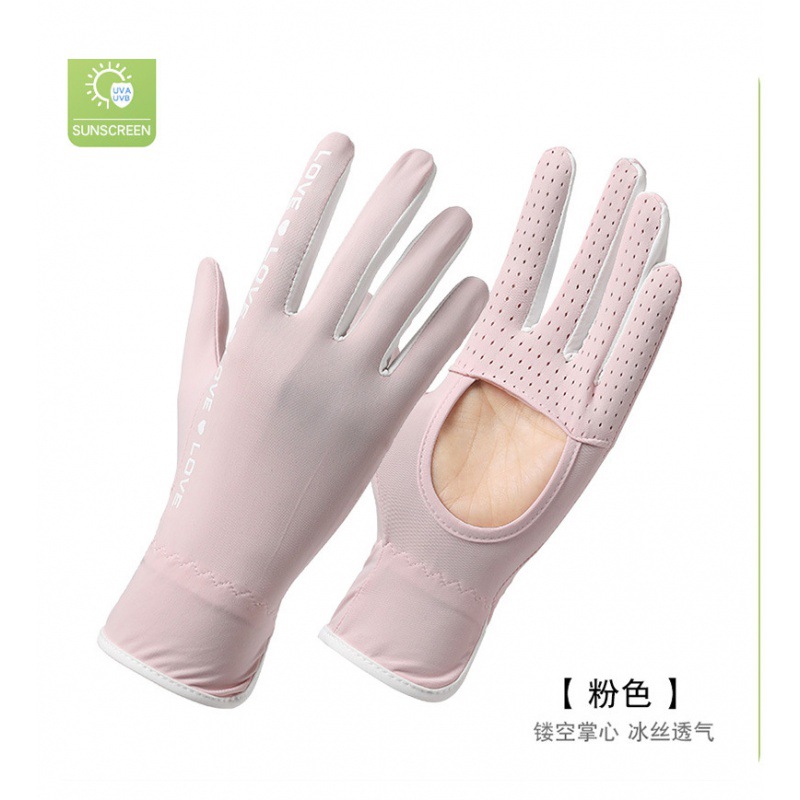 防晒手套女夏防紫外线镂空掌心透气防滑骑行开车露指触屏冰丝手套