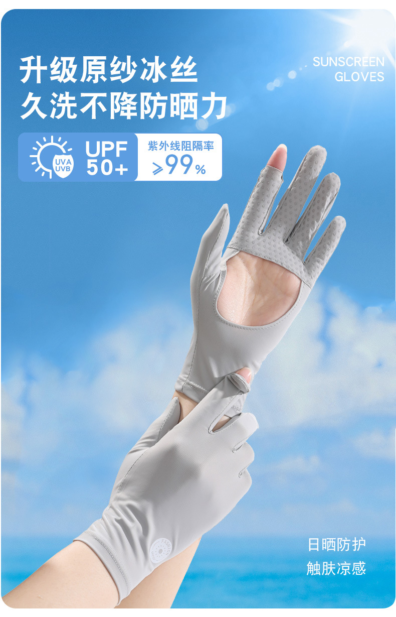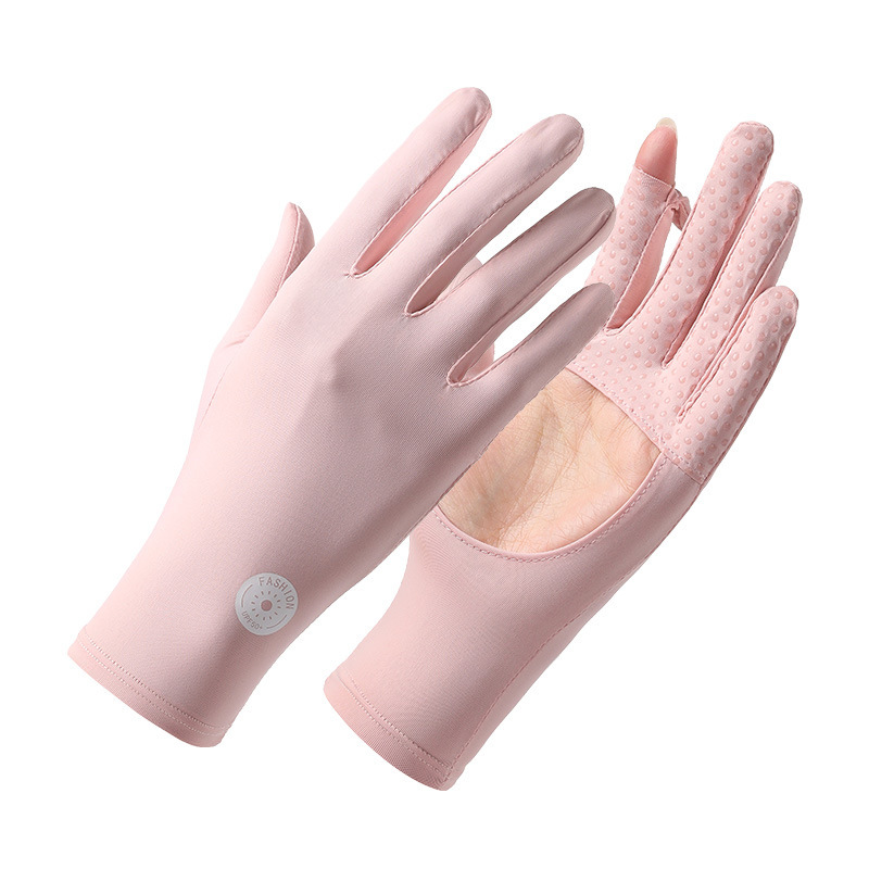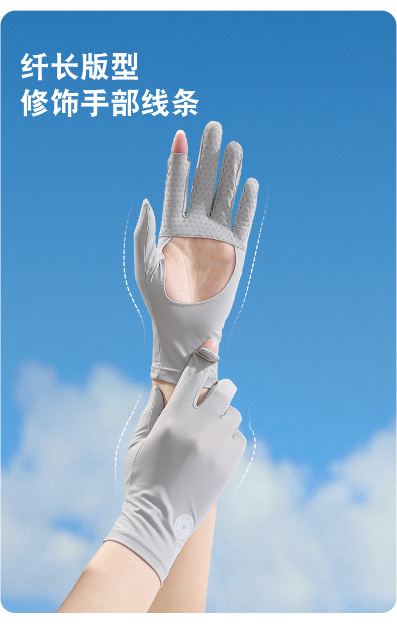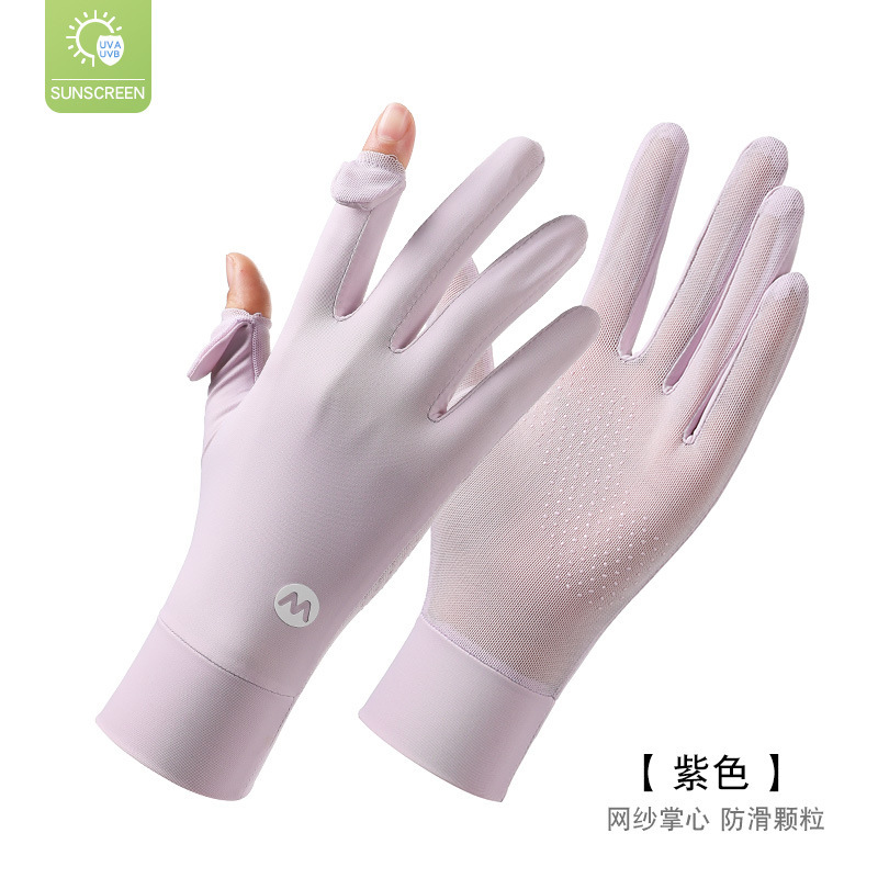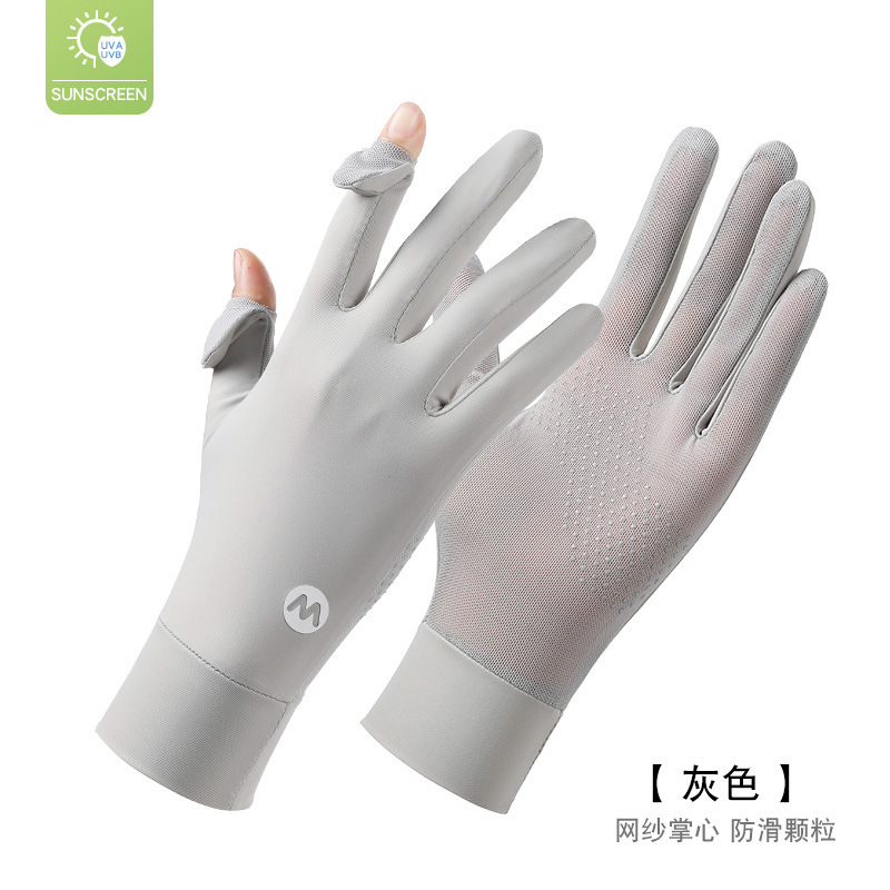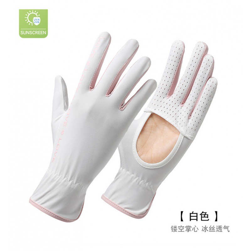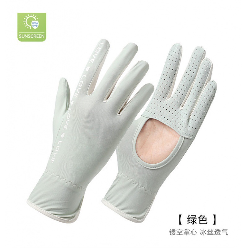 防晒手套女夏防紫外线镂空掌心透气防滑骑行开车露指触屏冰丝手套