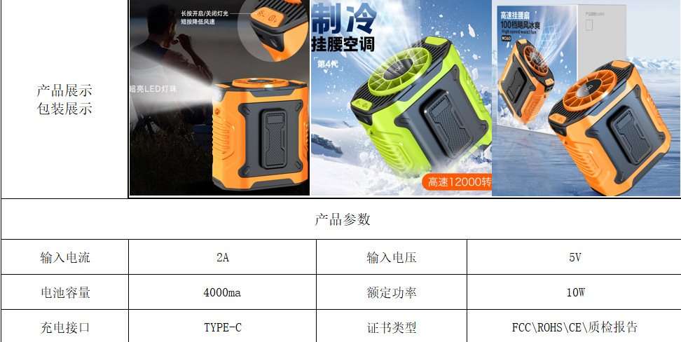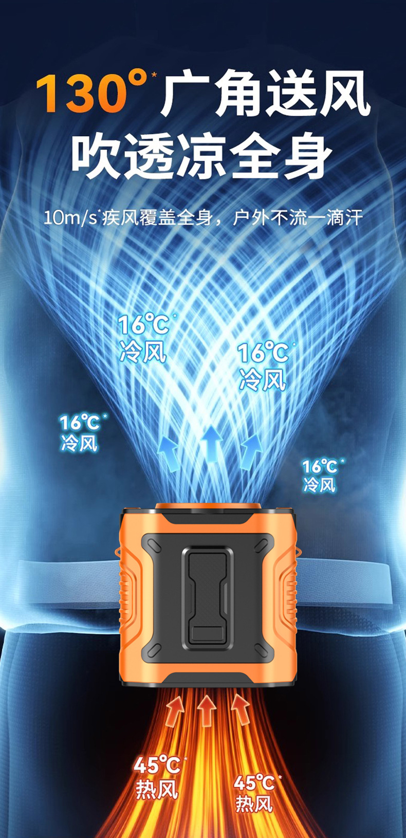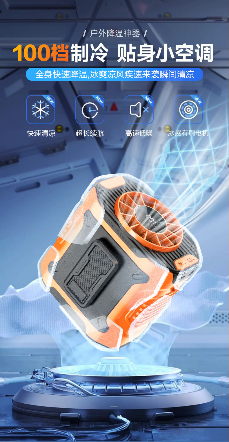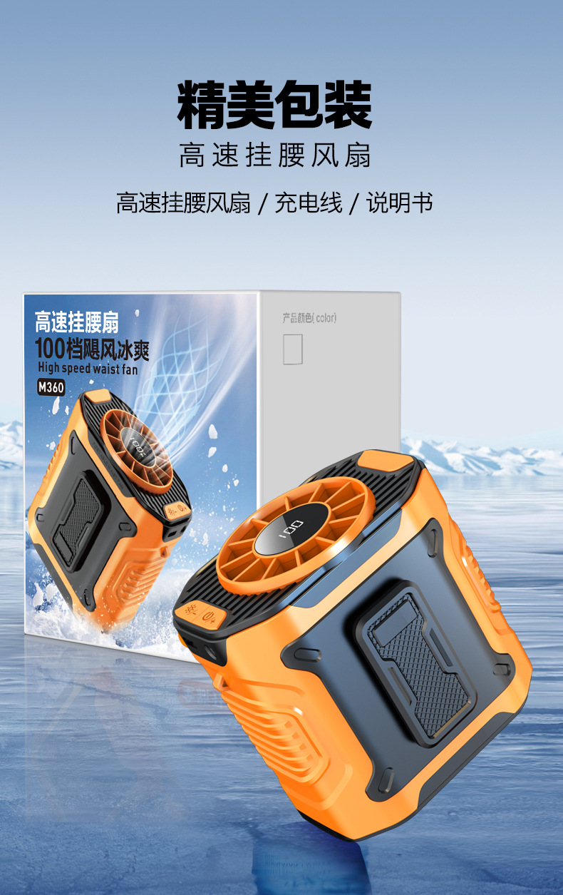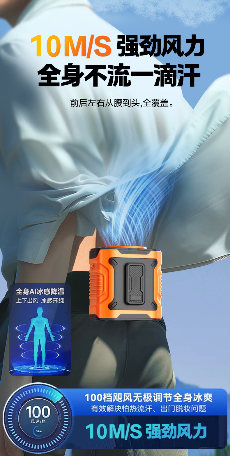 25年新款便携挂腰风扇长续航户外工地露营挂腰风扇100档暴力风扇