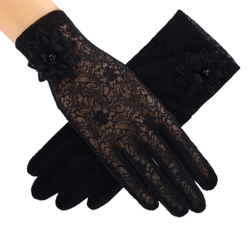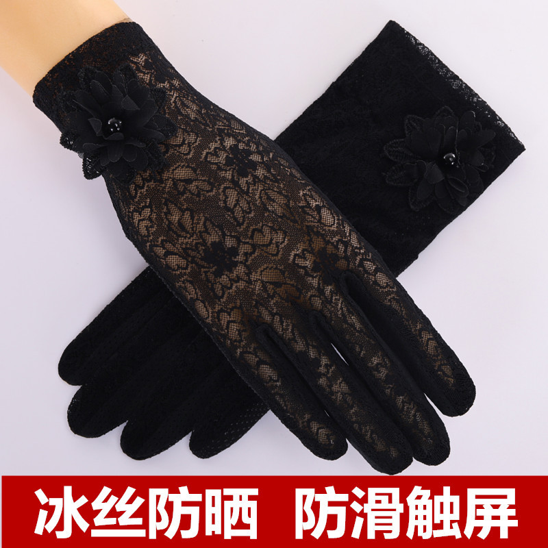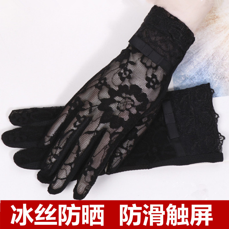 蕾丝花边手套网纱薄款开车防滑防晒黑色复古冰丝骑车舞蹈演出礼仪