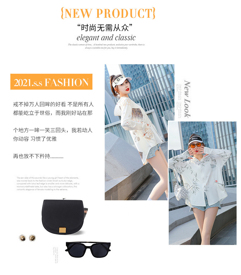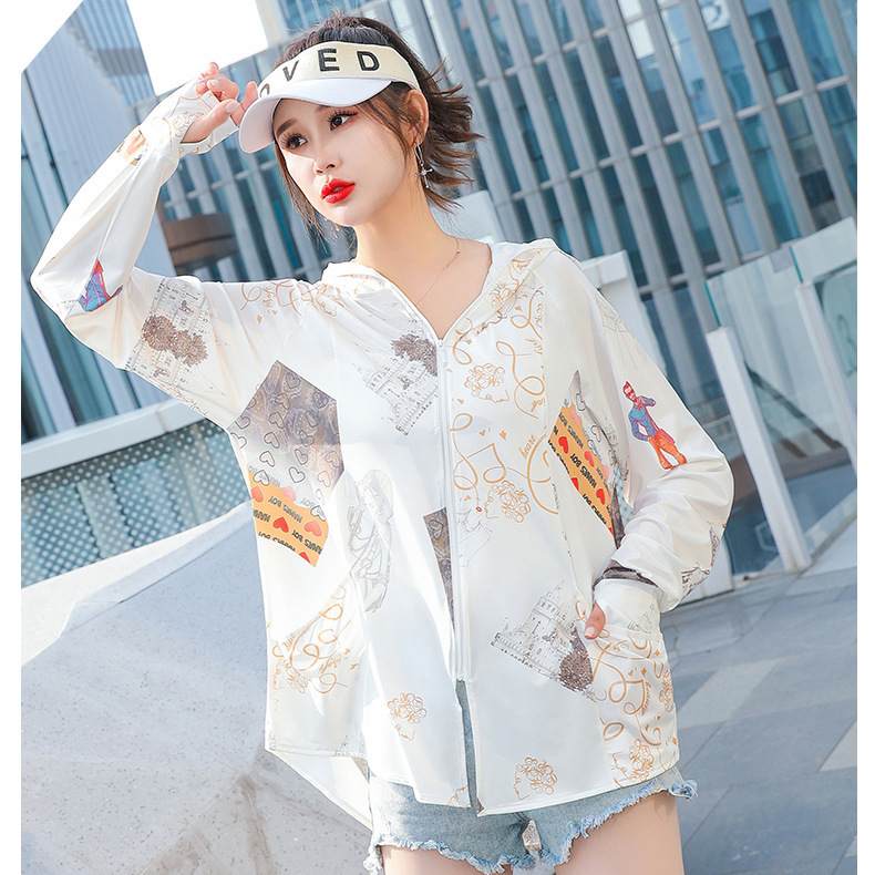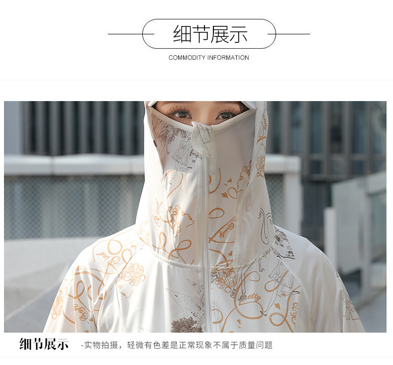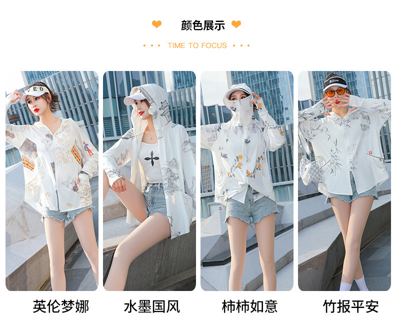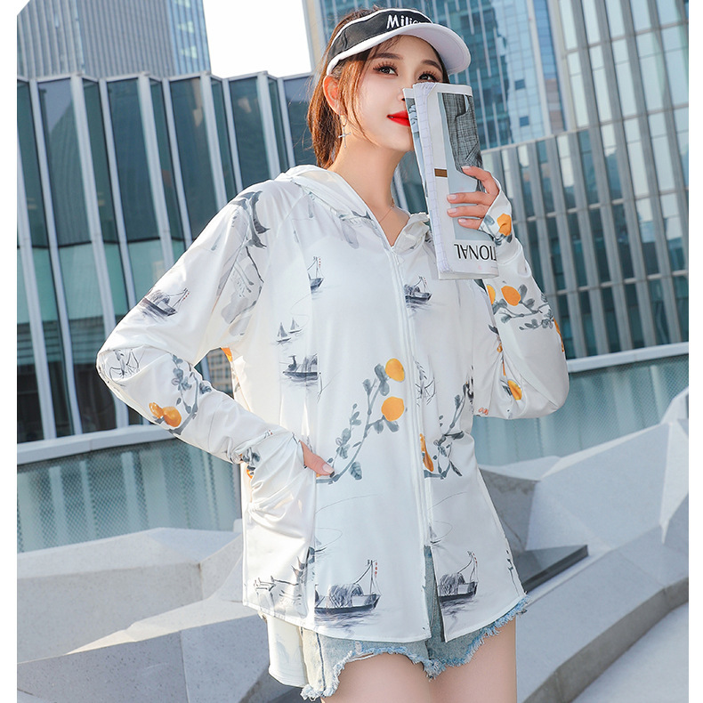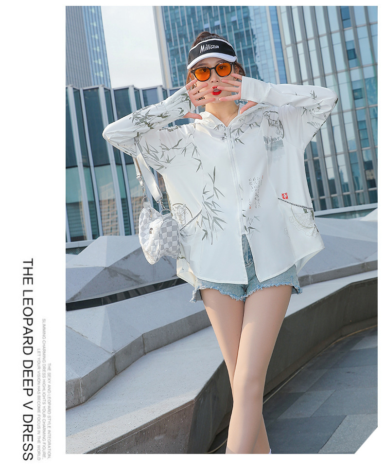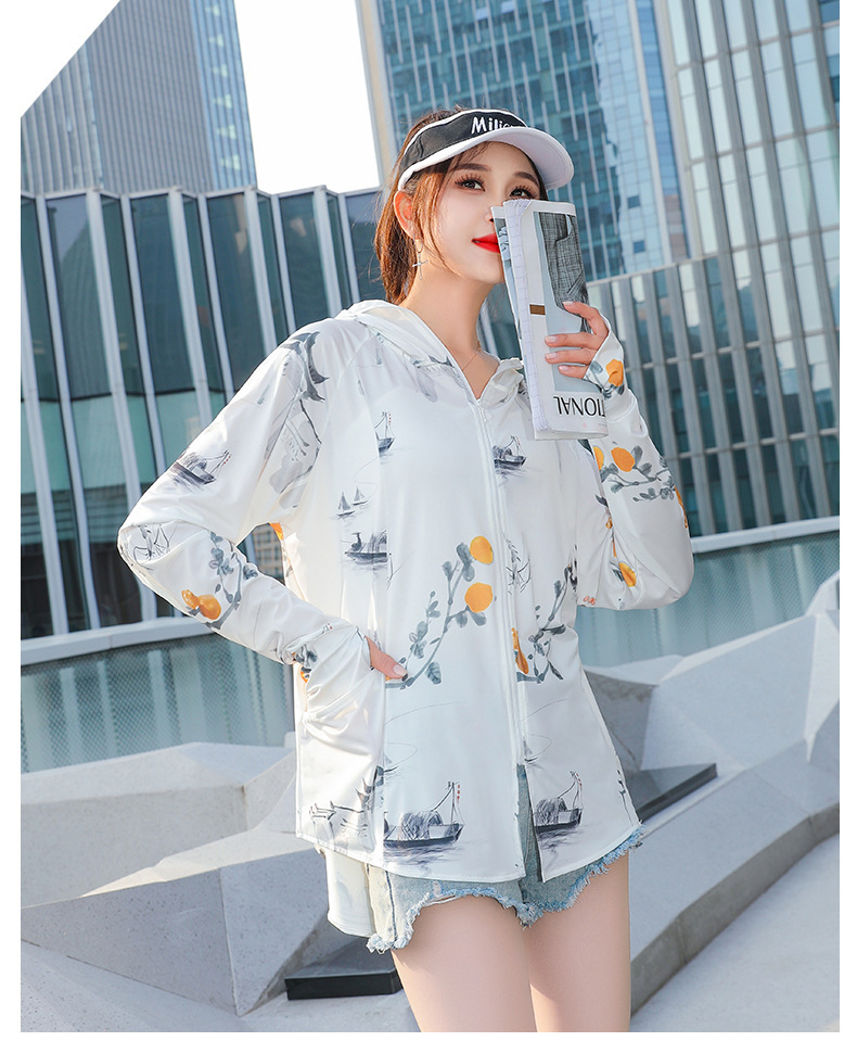 夏季新款印花国风冰丝女防紫外线长袖超薄款外套连帽透气防晒衣