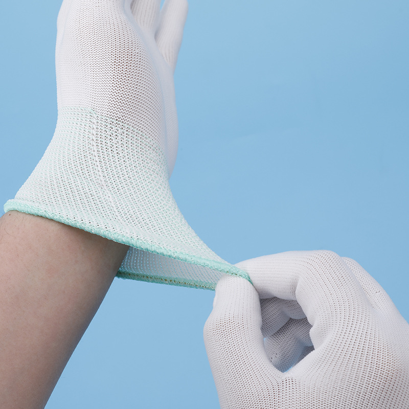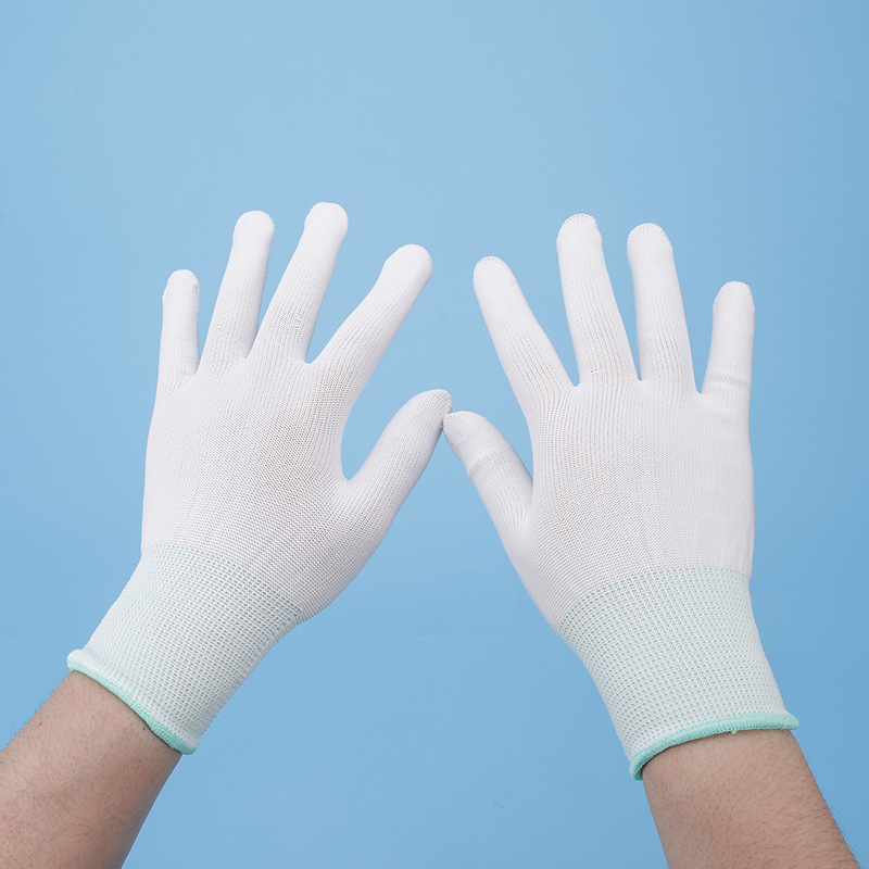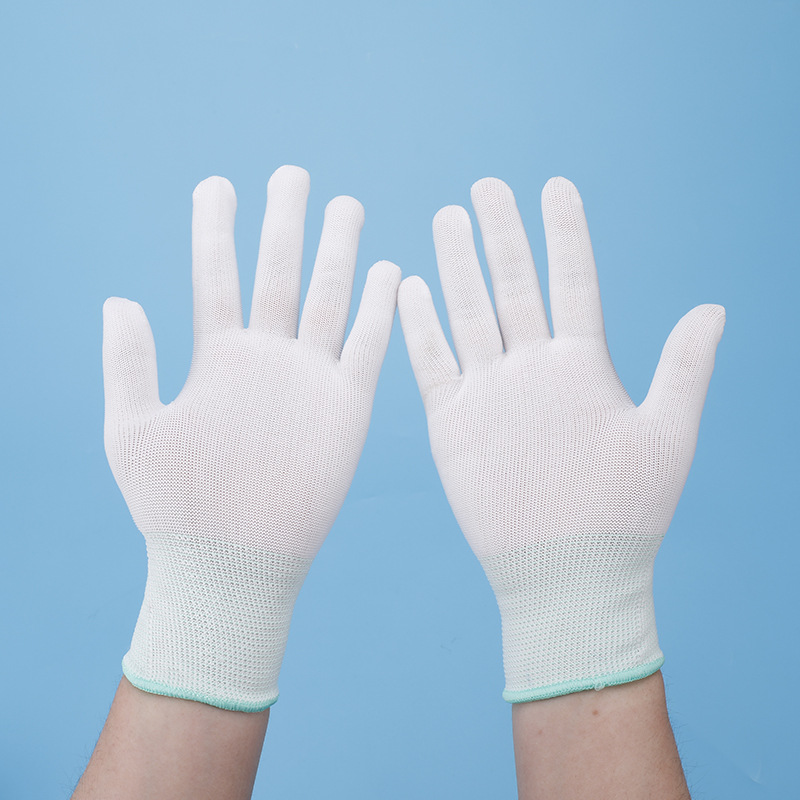 尼龙PU白色青边手套透气劳保工作作业手套 弹力防晒线纱手套定 制