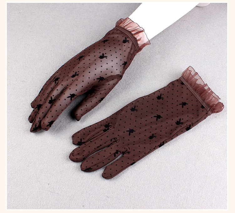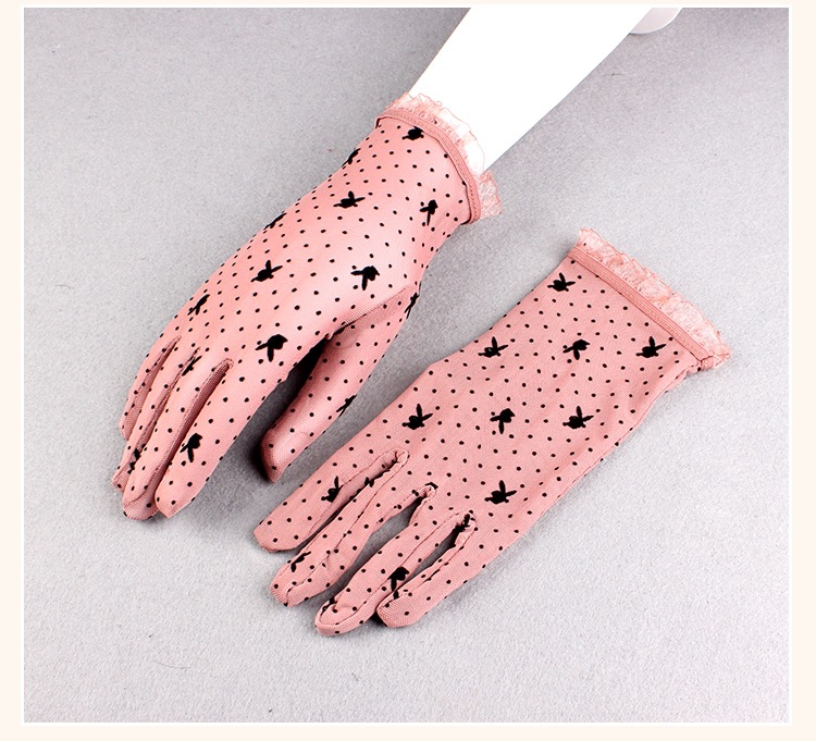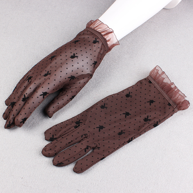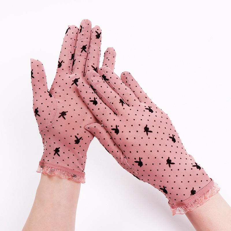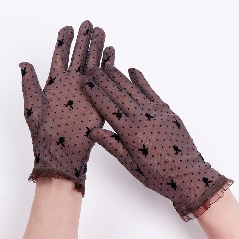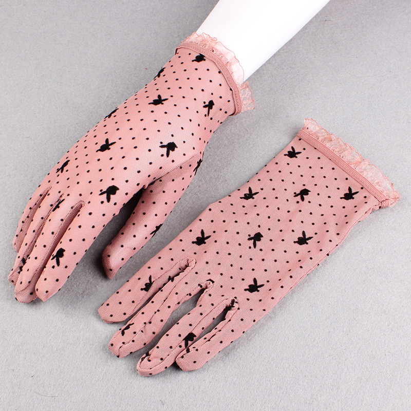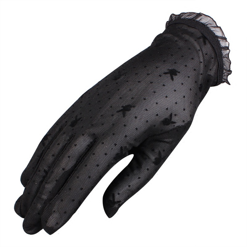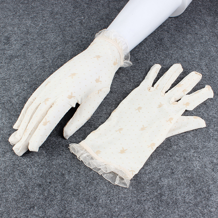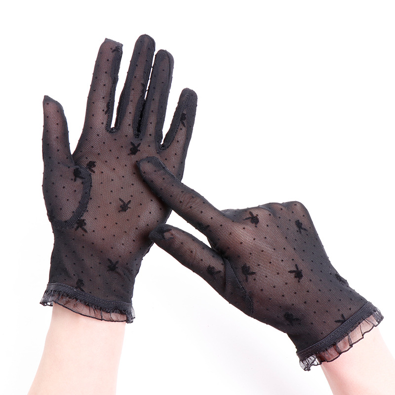 弹力蕾丝手套女花边春秋优雅性感短款夏季透气网纱开车结婚薄款