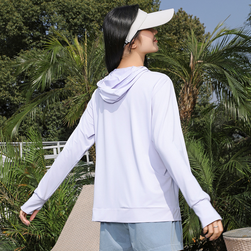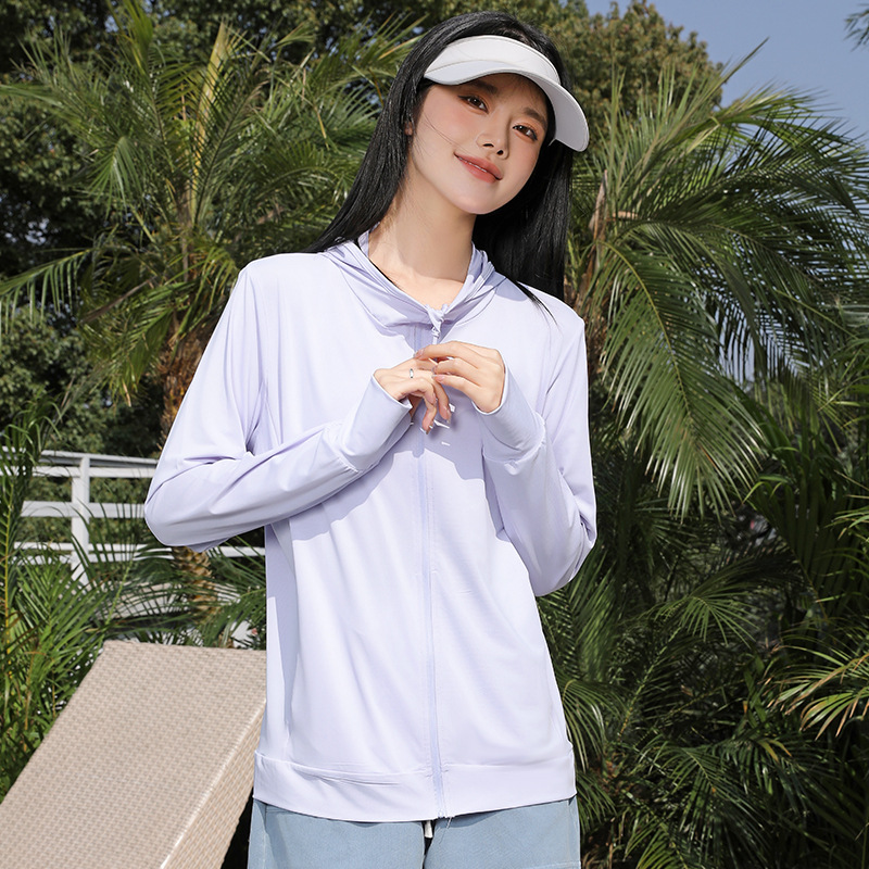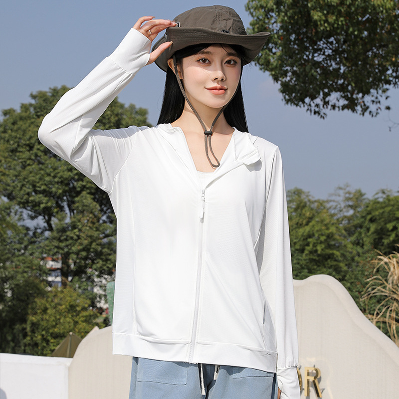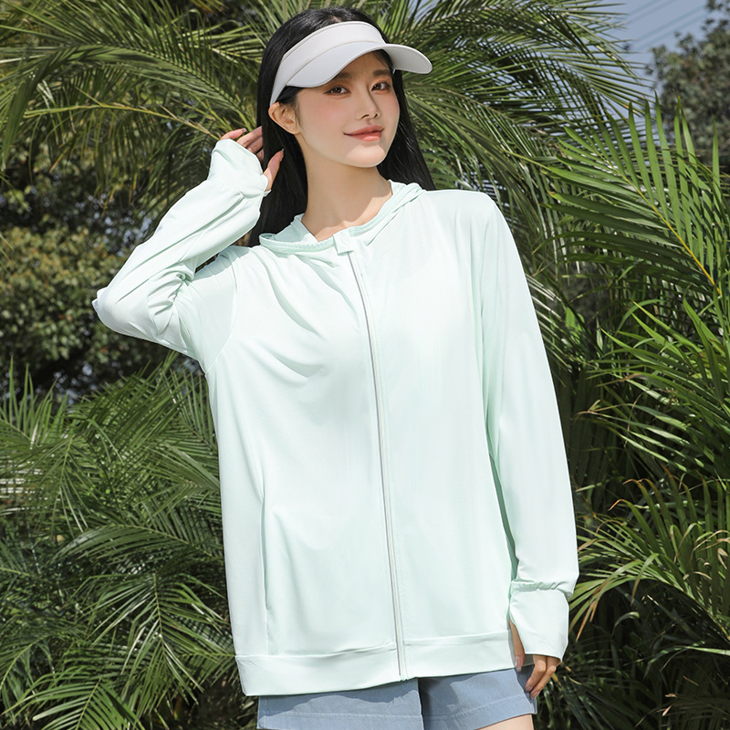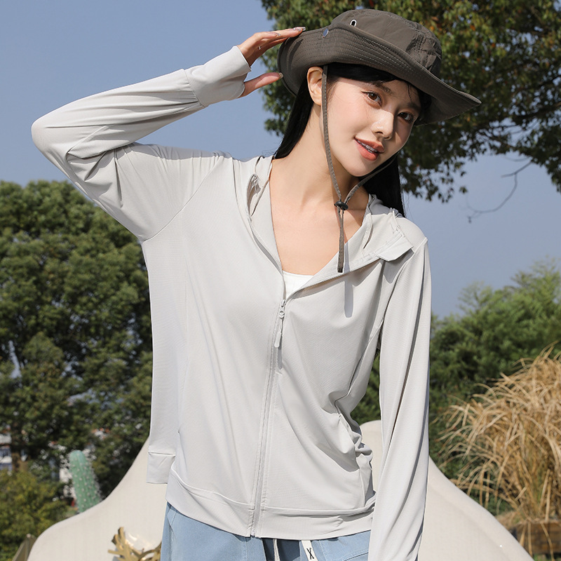 防晒衣女网眼透气UPF50+夏季户外运动宽松防紫外线外套连帽防晒服