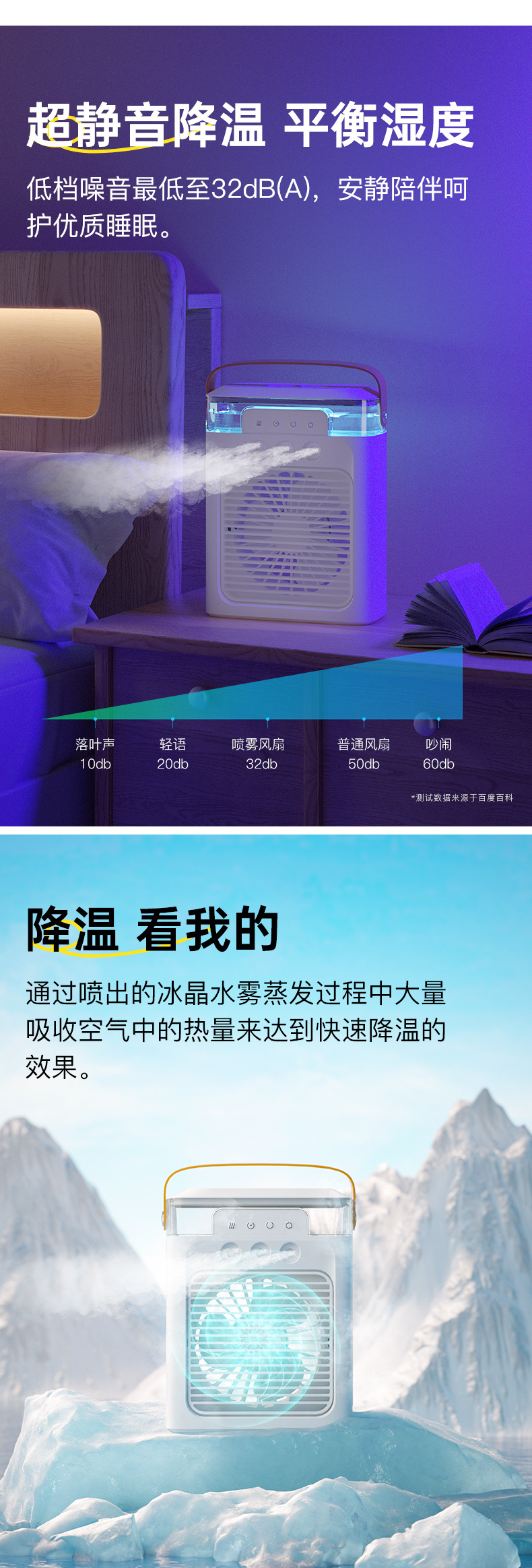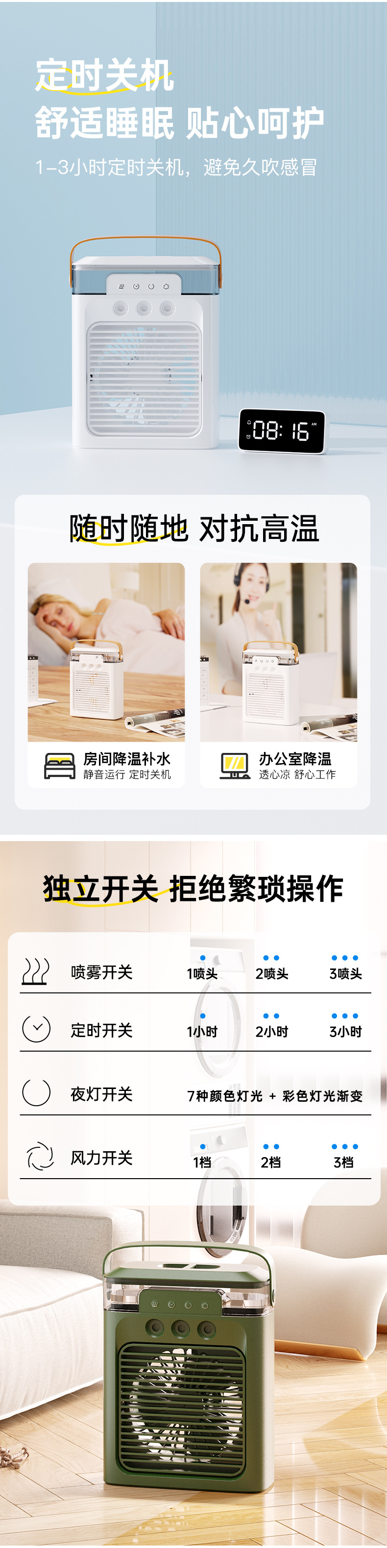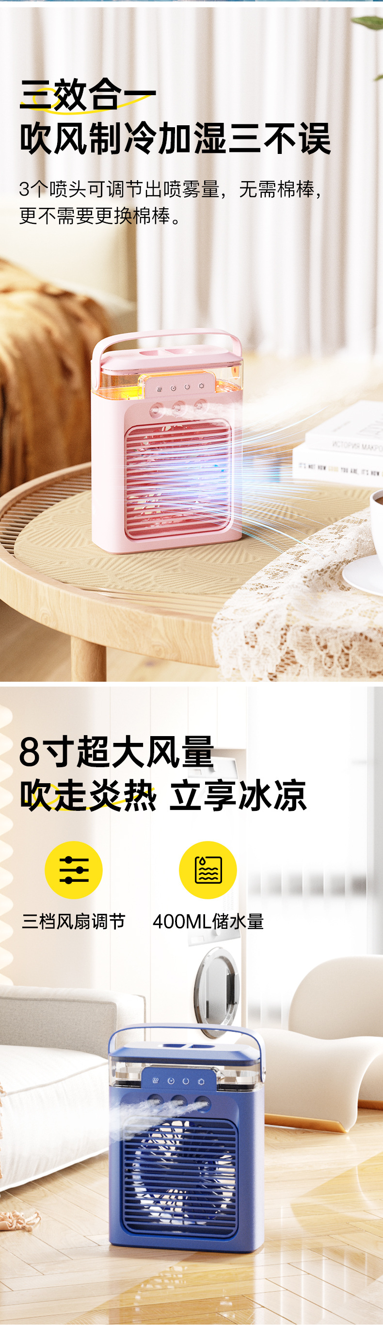 新款三孔喷雾风扇家用办公室桌面加湿冷风扇宿舍USB充电触屏风扇