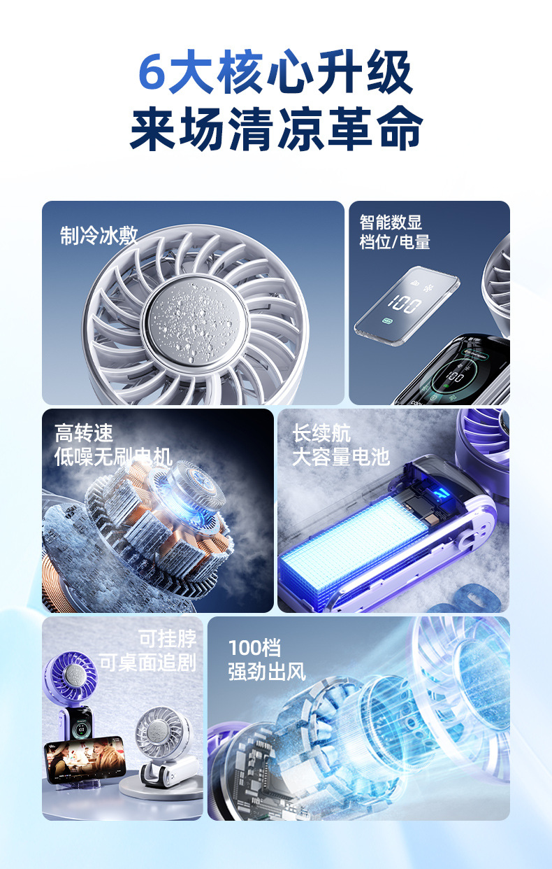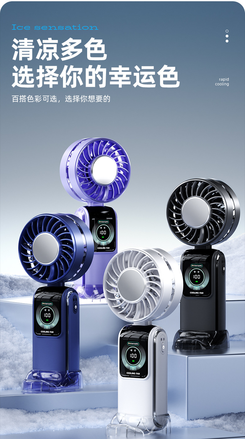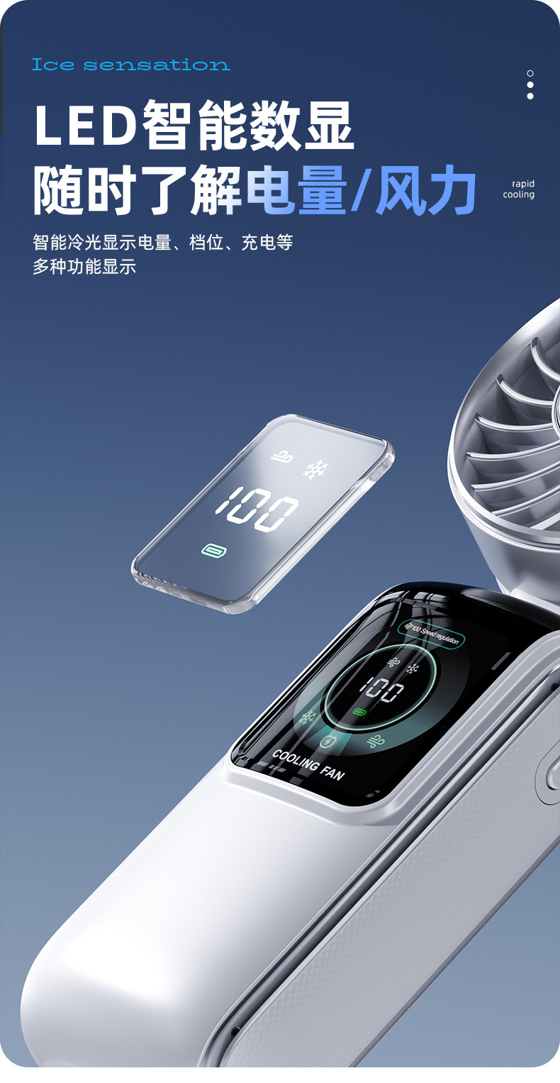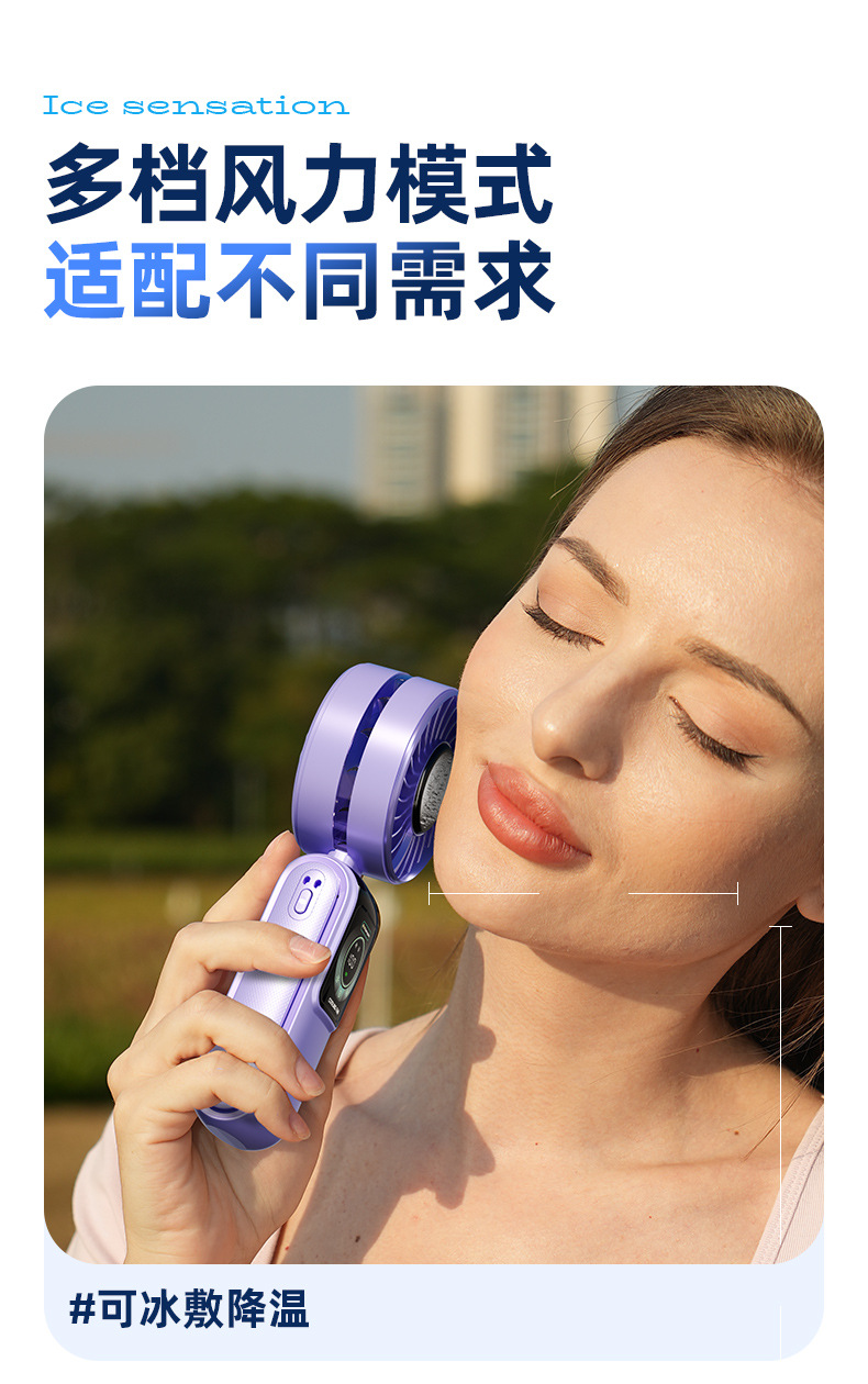 2026新款冰敷高速风扇半导体制冷手持风扇便携式挂脖数显折叠风扇