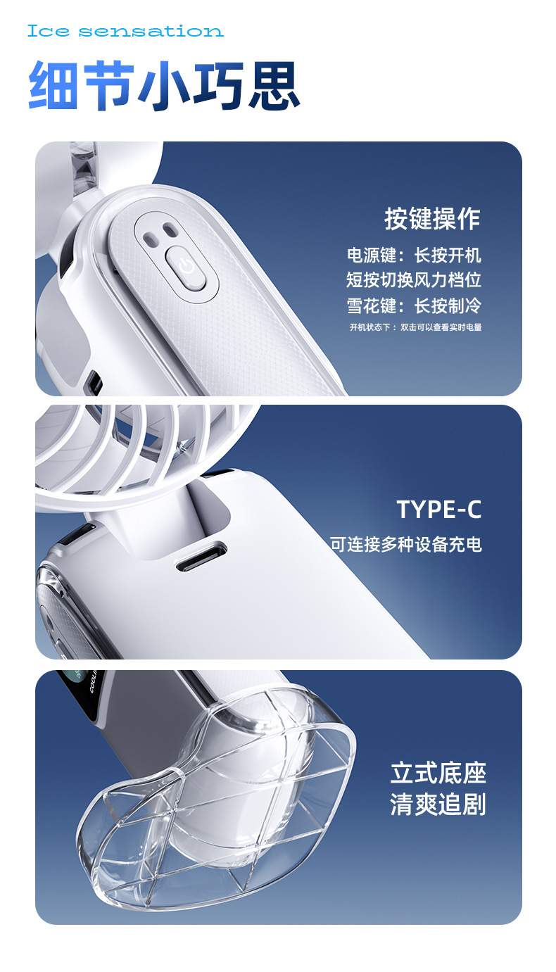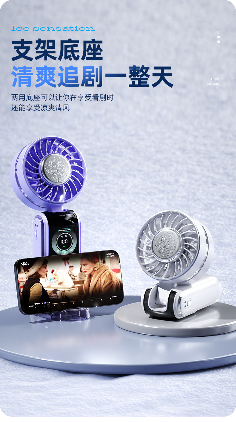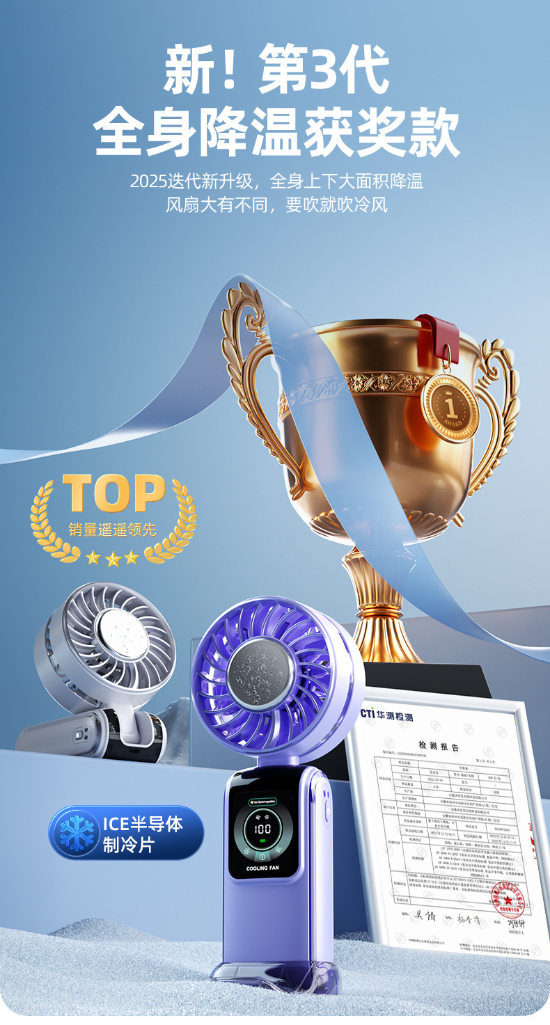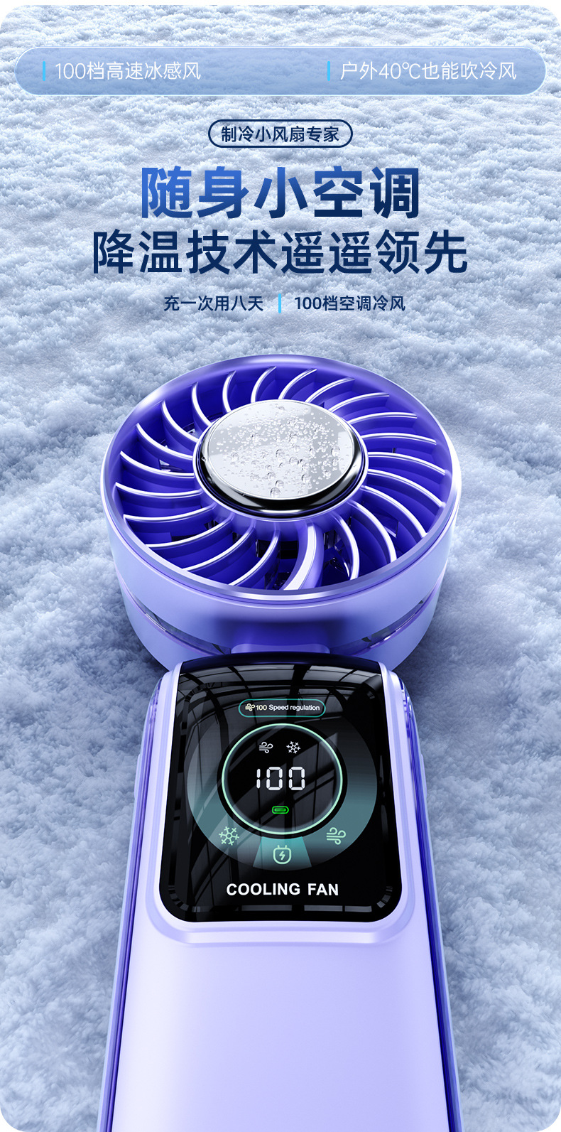 2026新款冰敷高速风扇半导体制冷手持风扇便携式挂脖数显折叠风扇