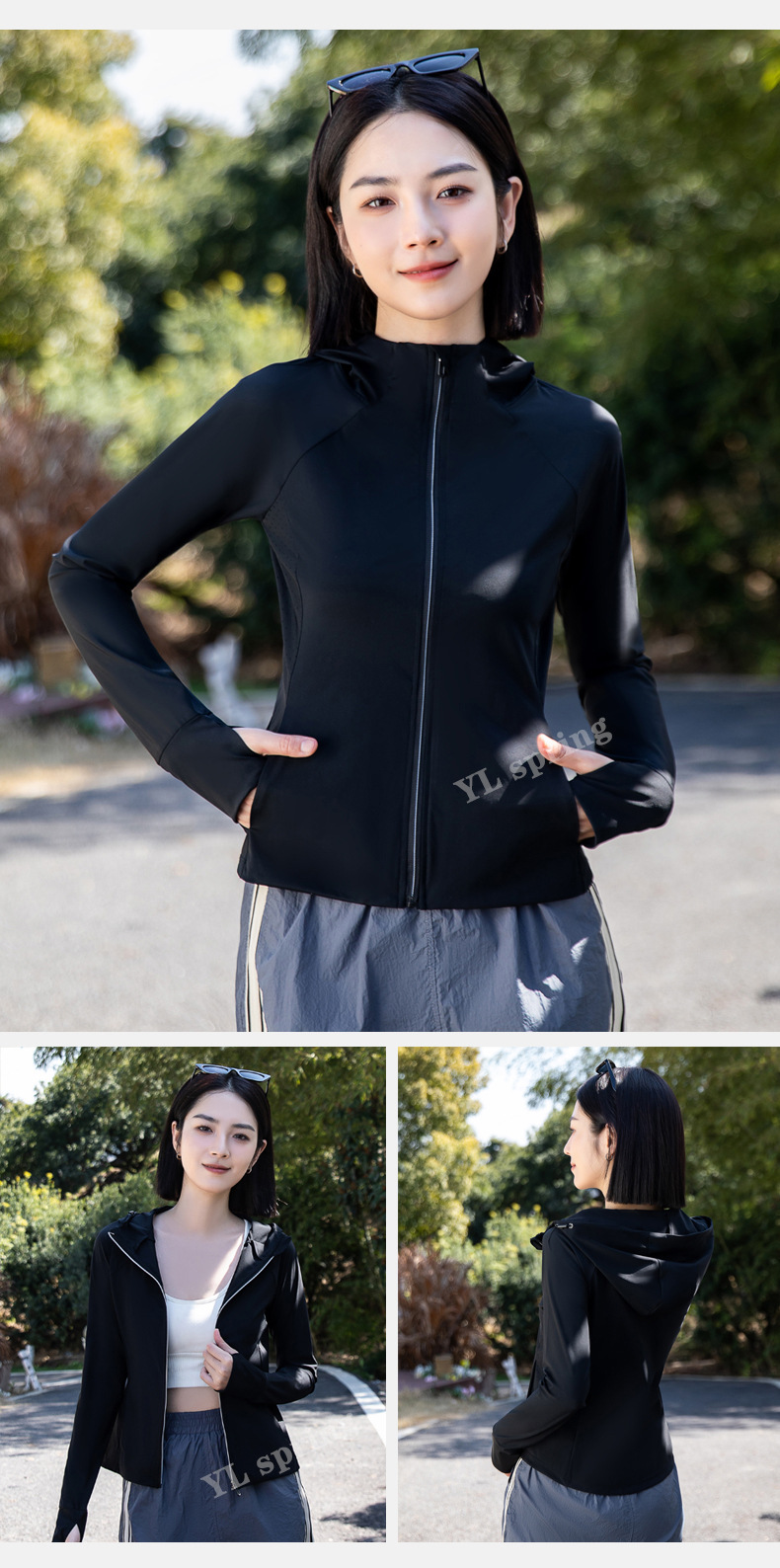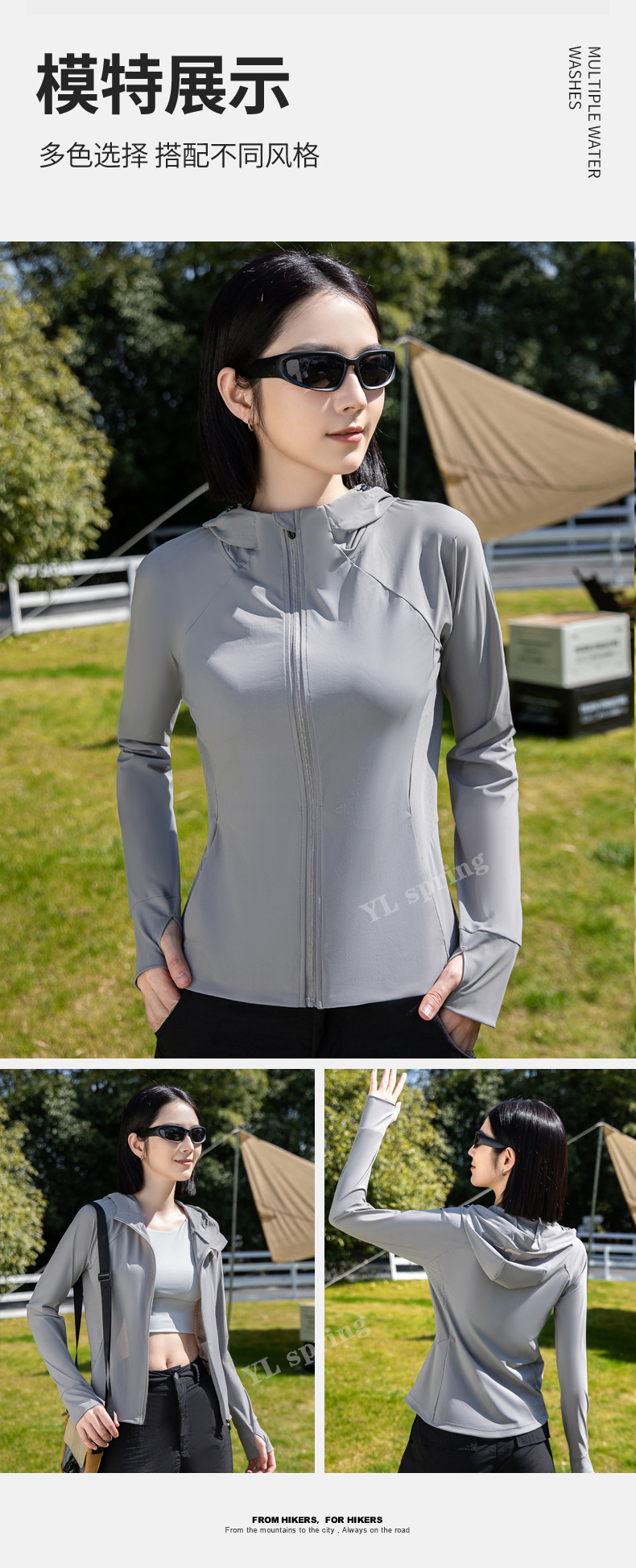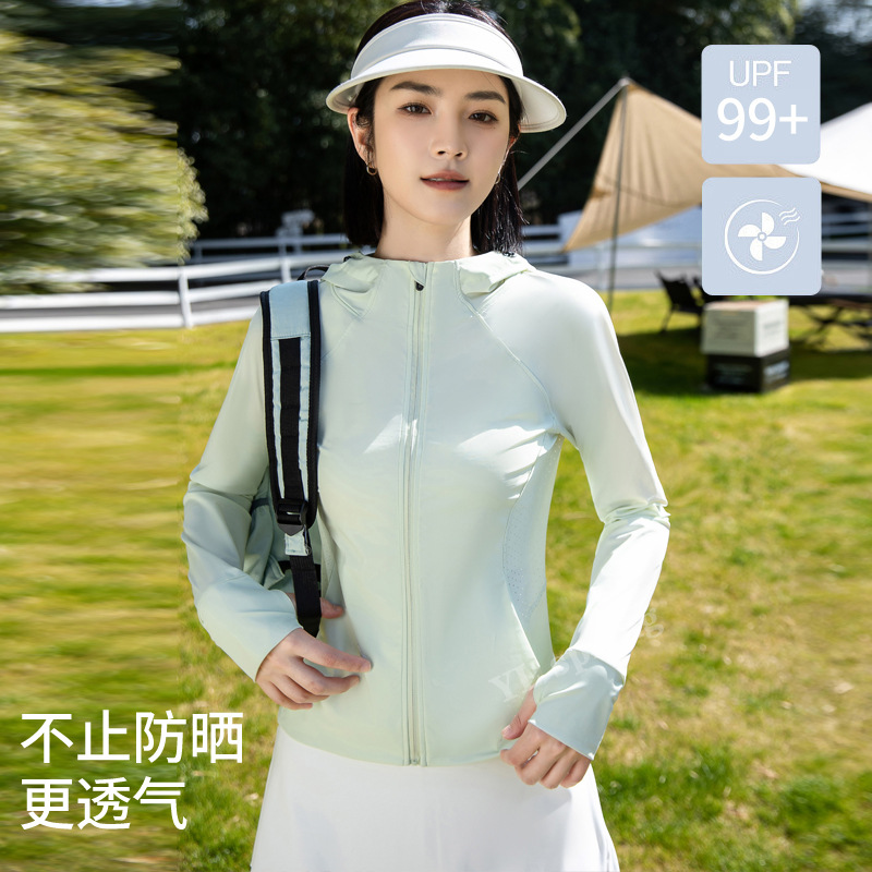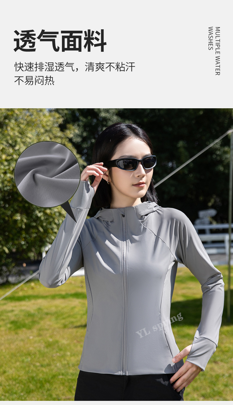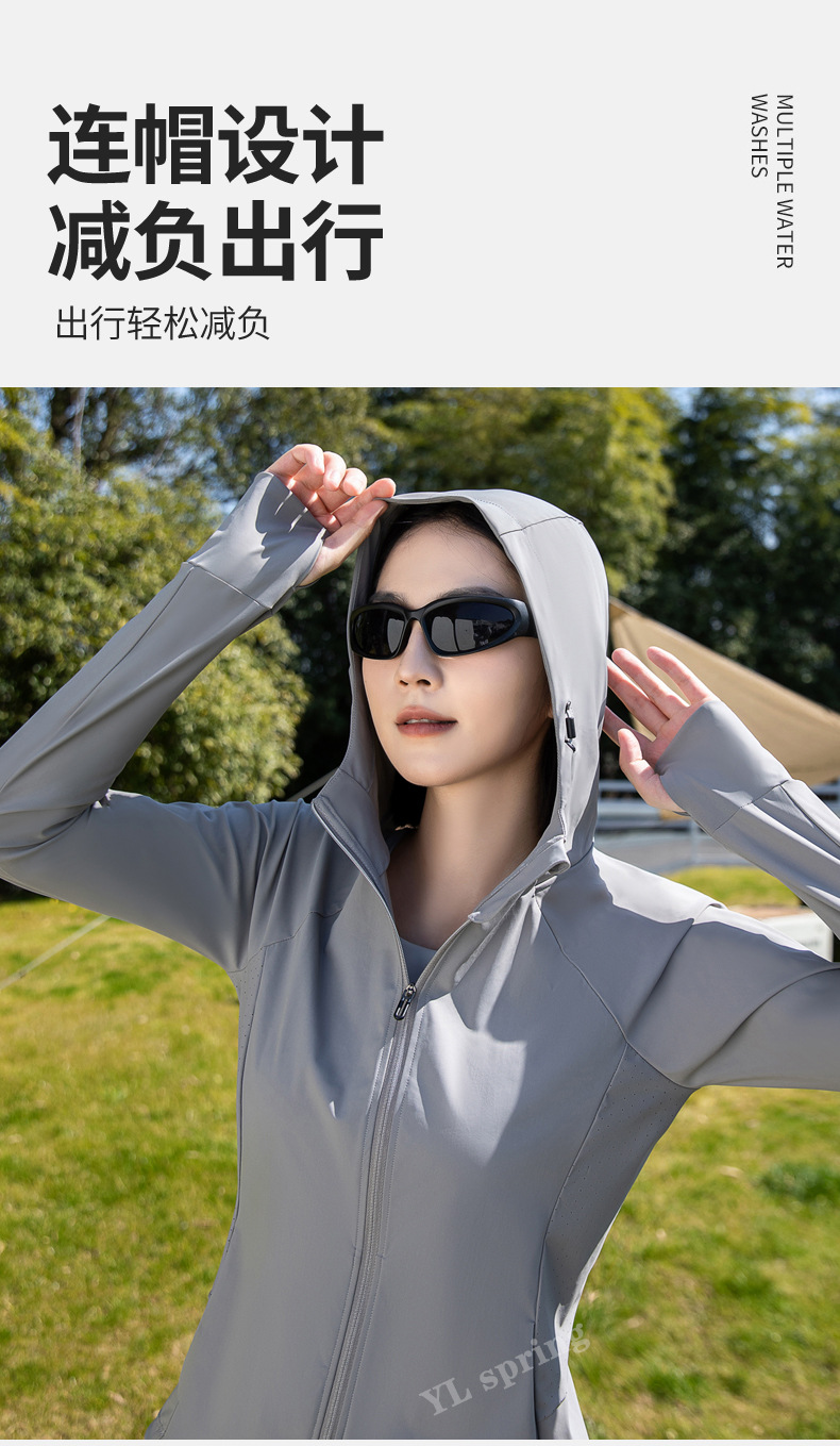 迪某特连帽锦纶防晒衣户外女UPF50+防紫外线透气遮阳女修身型速干