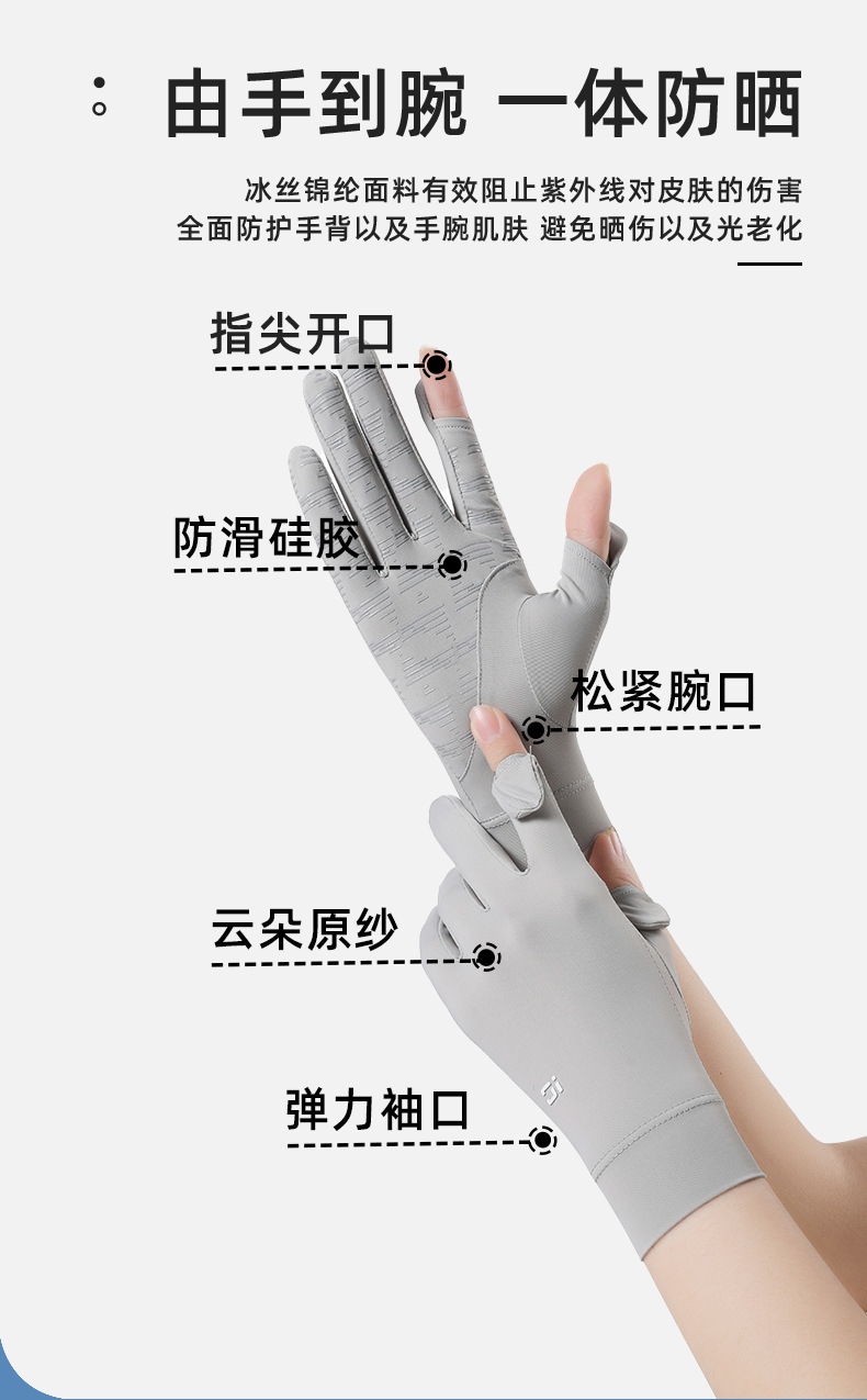 夏季防晒手套防紫外线6818新电动车防滑薄款可触屏骑行防晒手套女