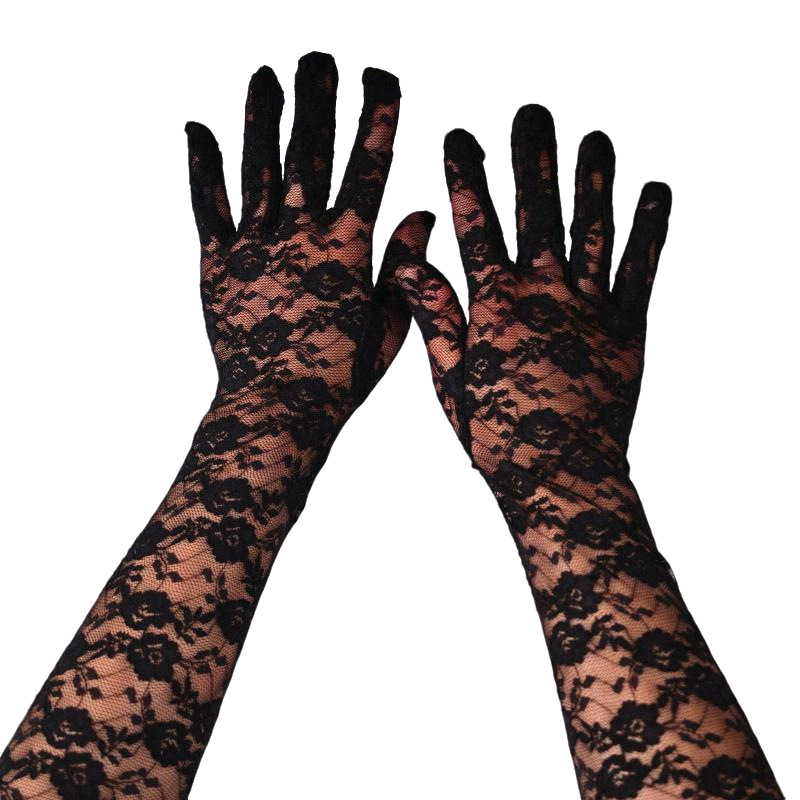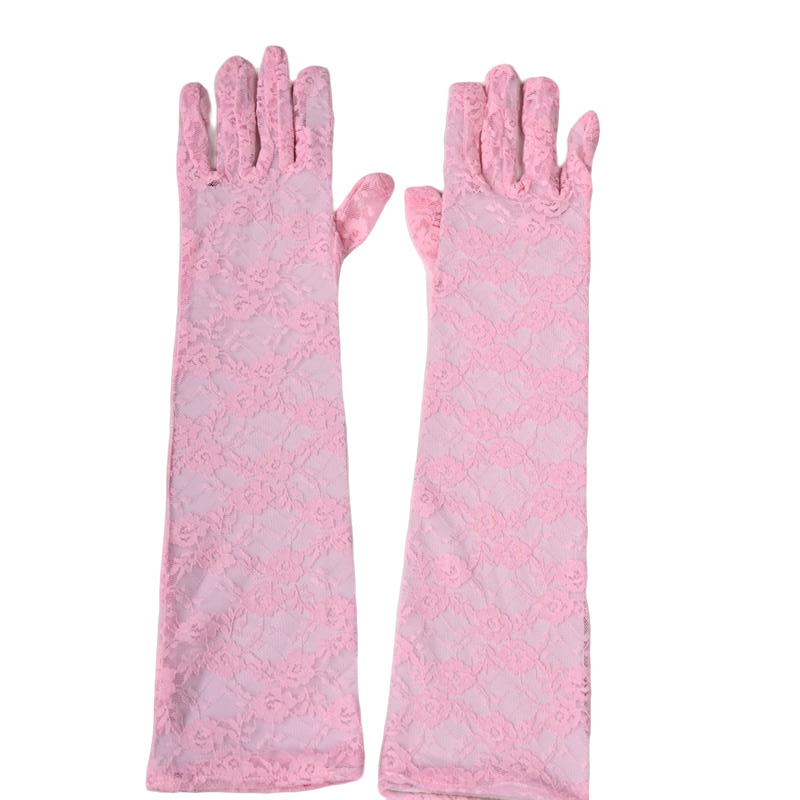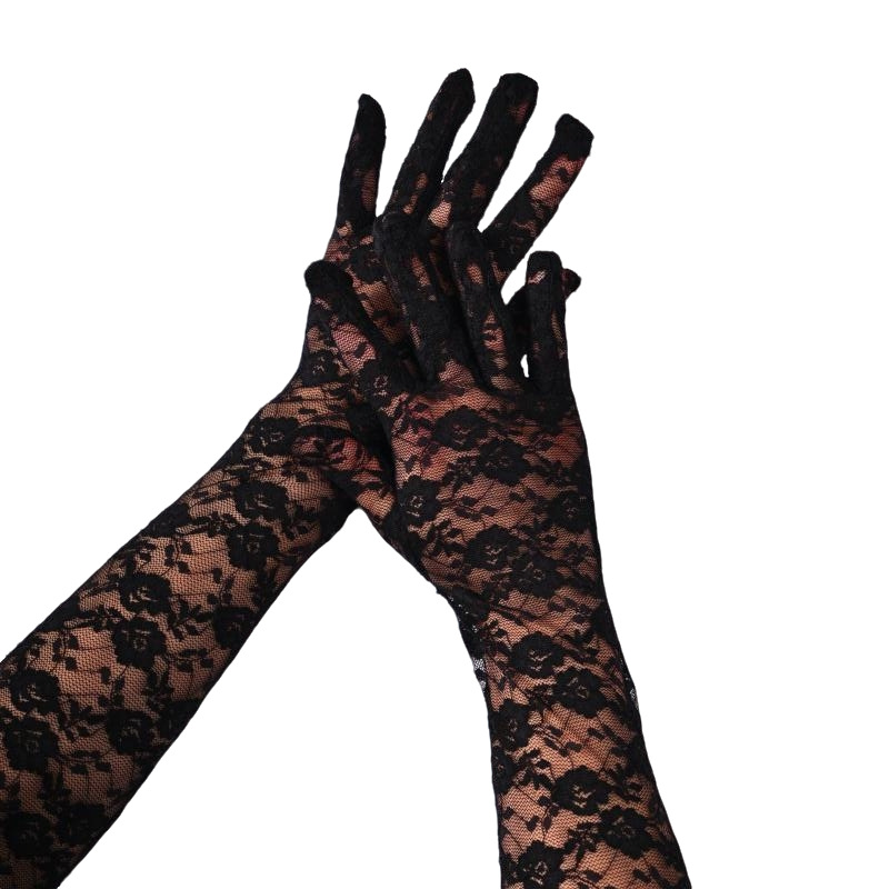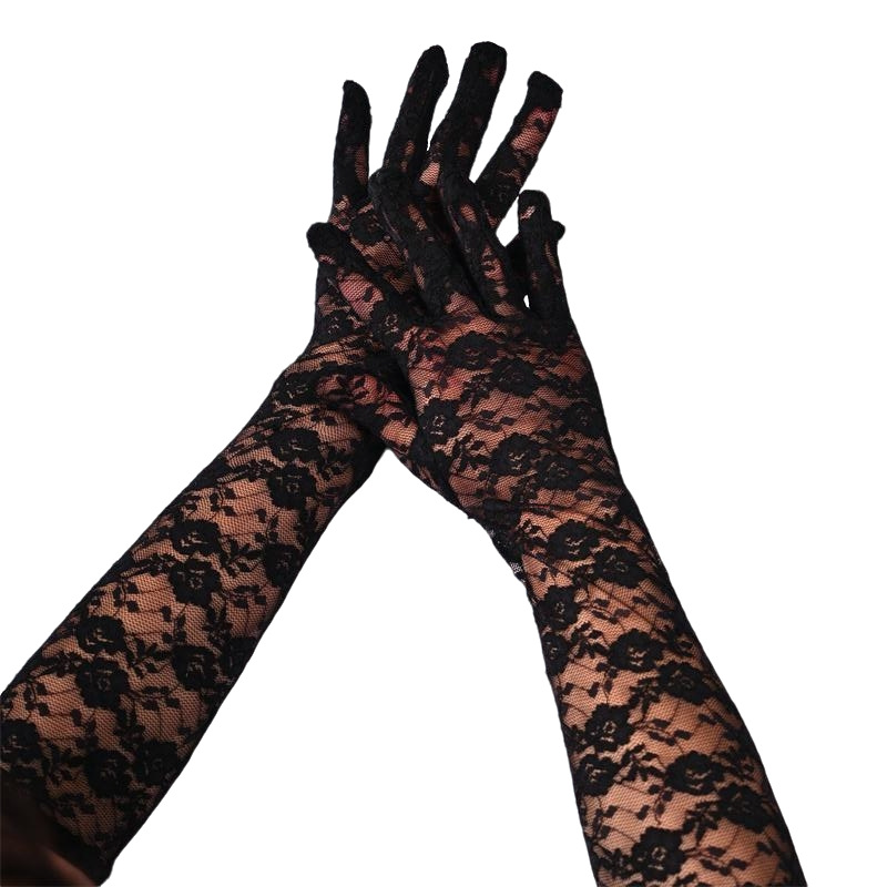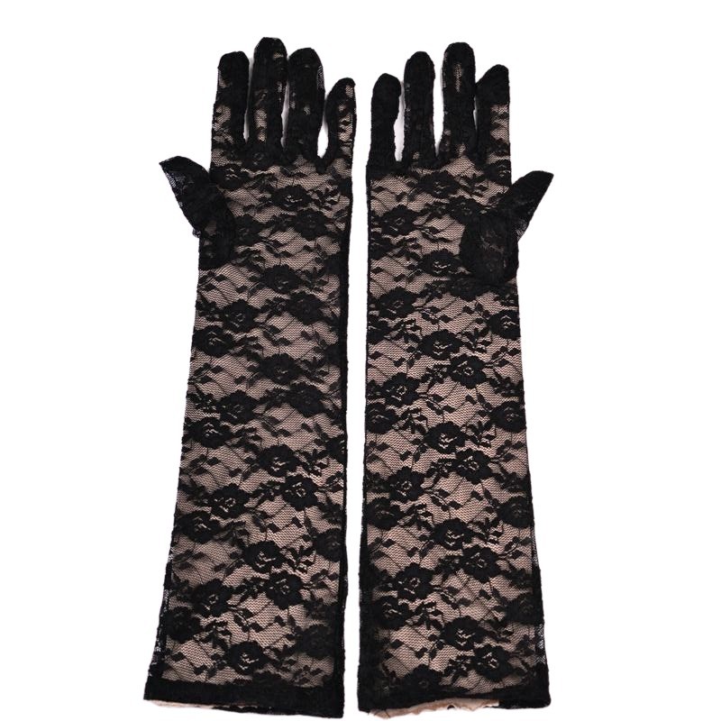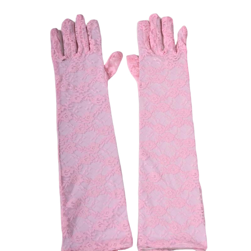 蕾丝小花朵中长款手套春夏薄款全指防晒开车骑行手套女