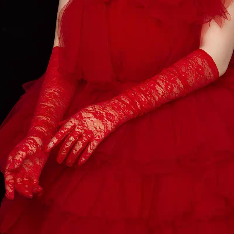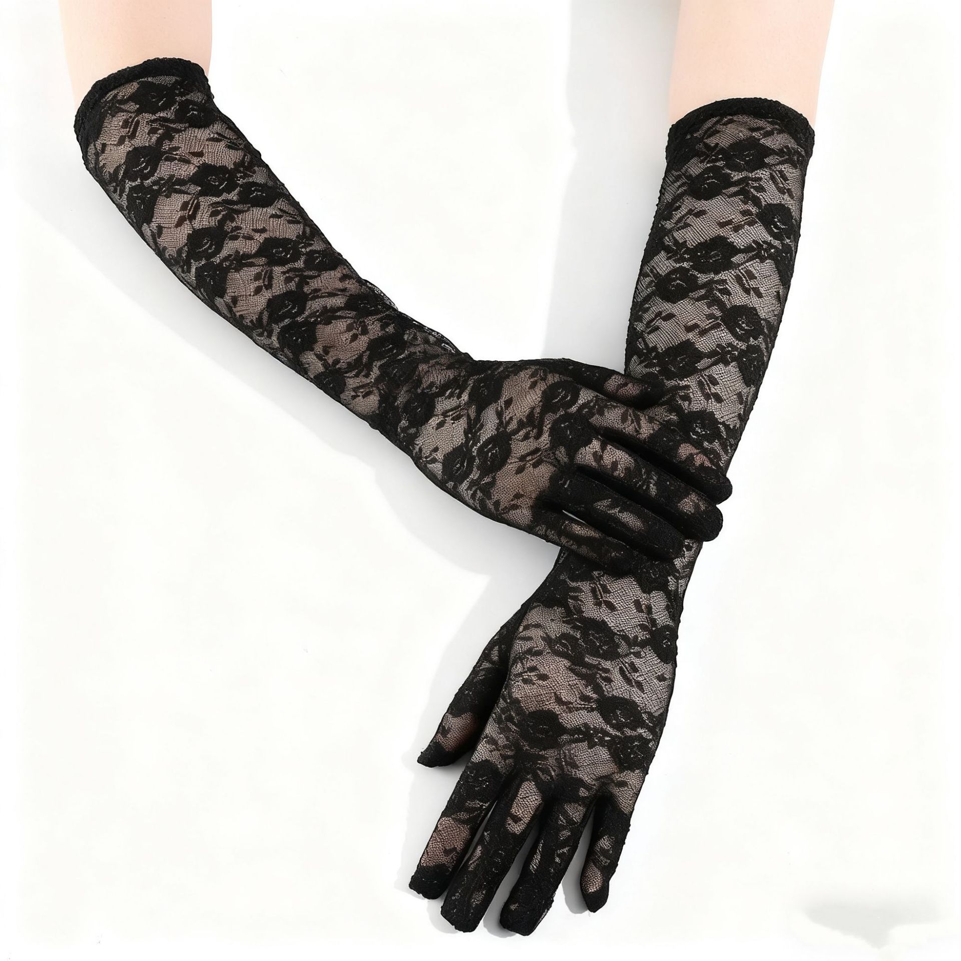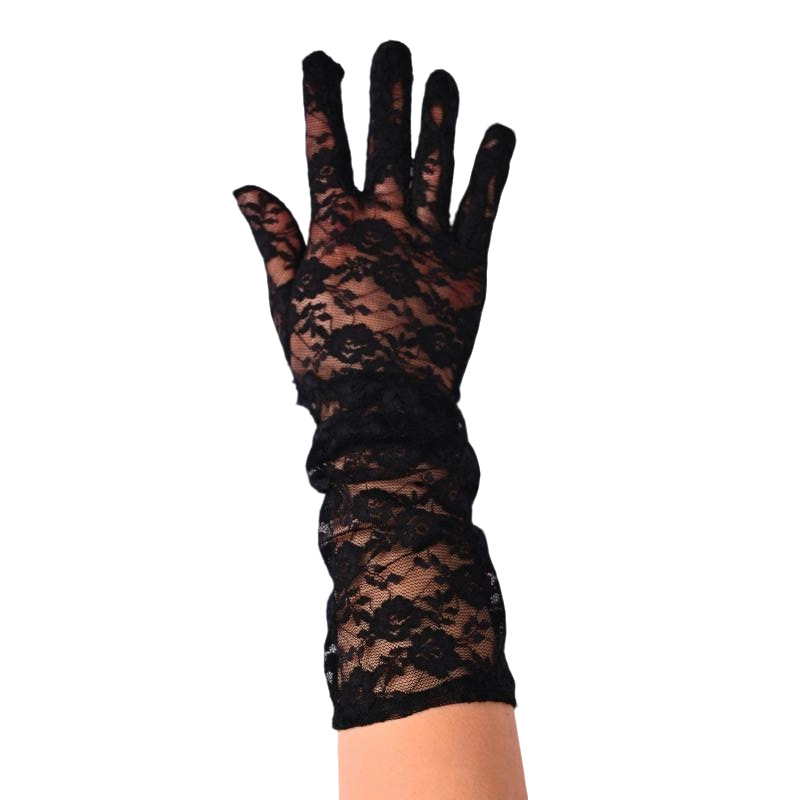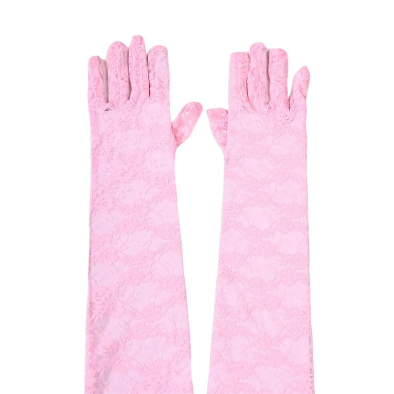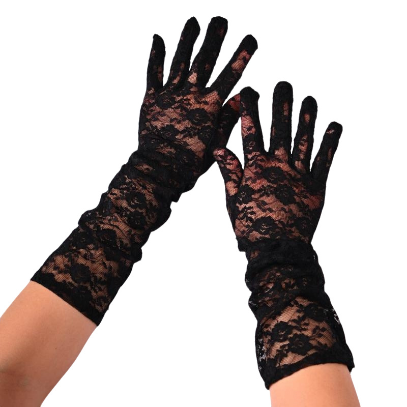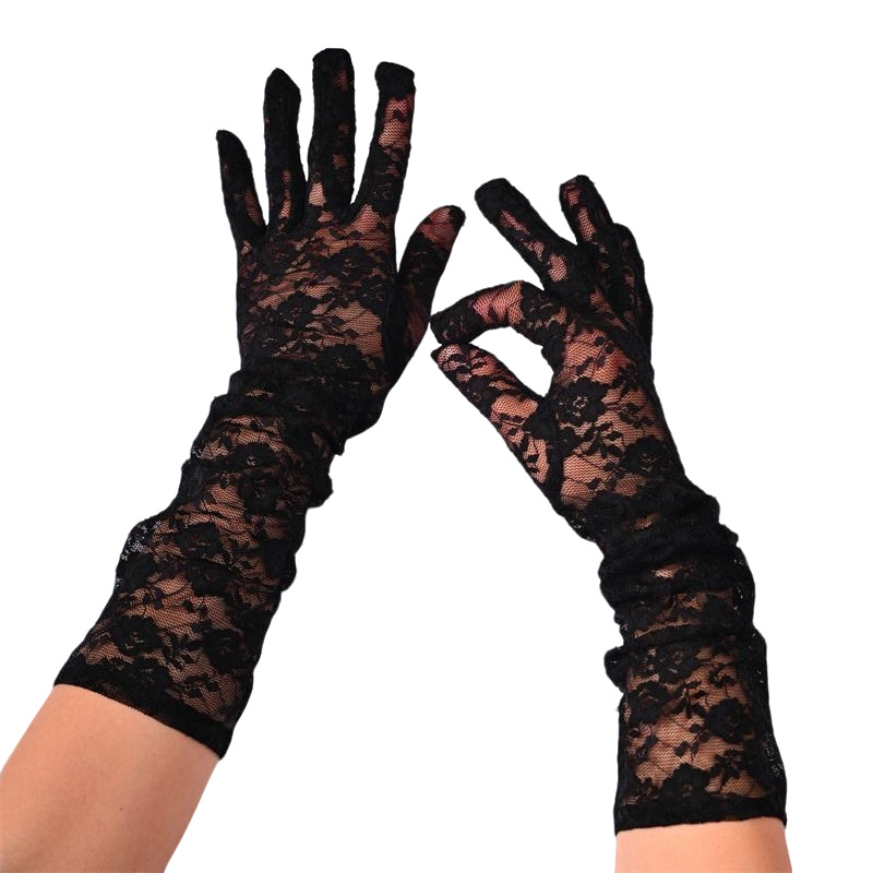 蕾丝小花朵中长款手套春夏薄款全指防晒开车骑行手套女